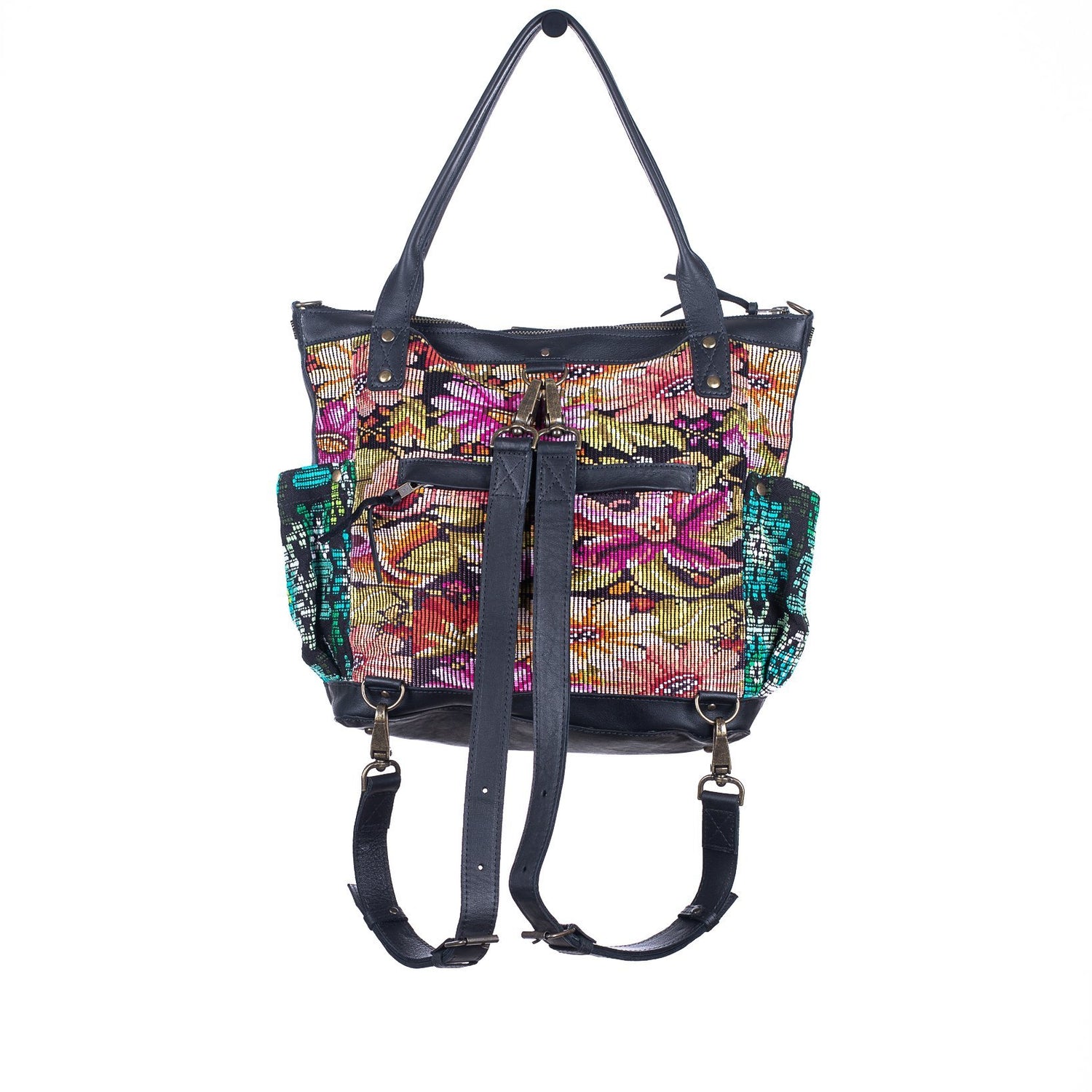 Many unique Maya symbols can be found in our One of a Kind Collection. The fabric we use for this collection is made from upcycled vintage huipiles (traditional attire worn by women in Guatemala) that were handwoven by Artisans up to 10 years ago, and they have lived a full life before being incorporated into your leather bag!