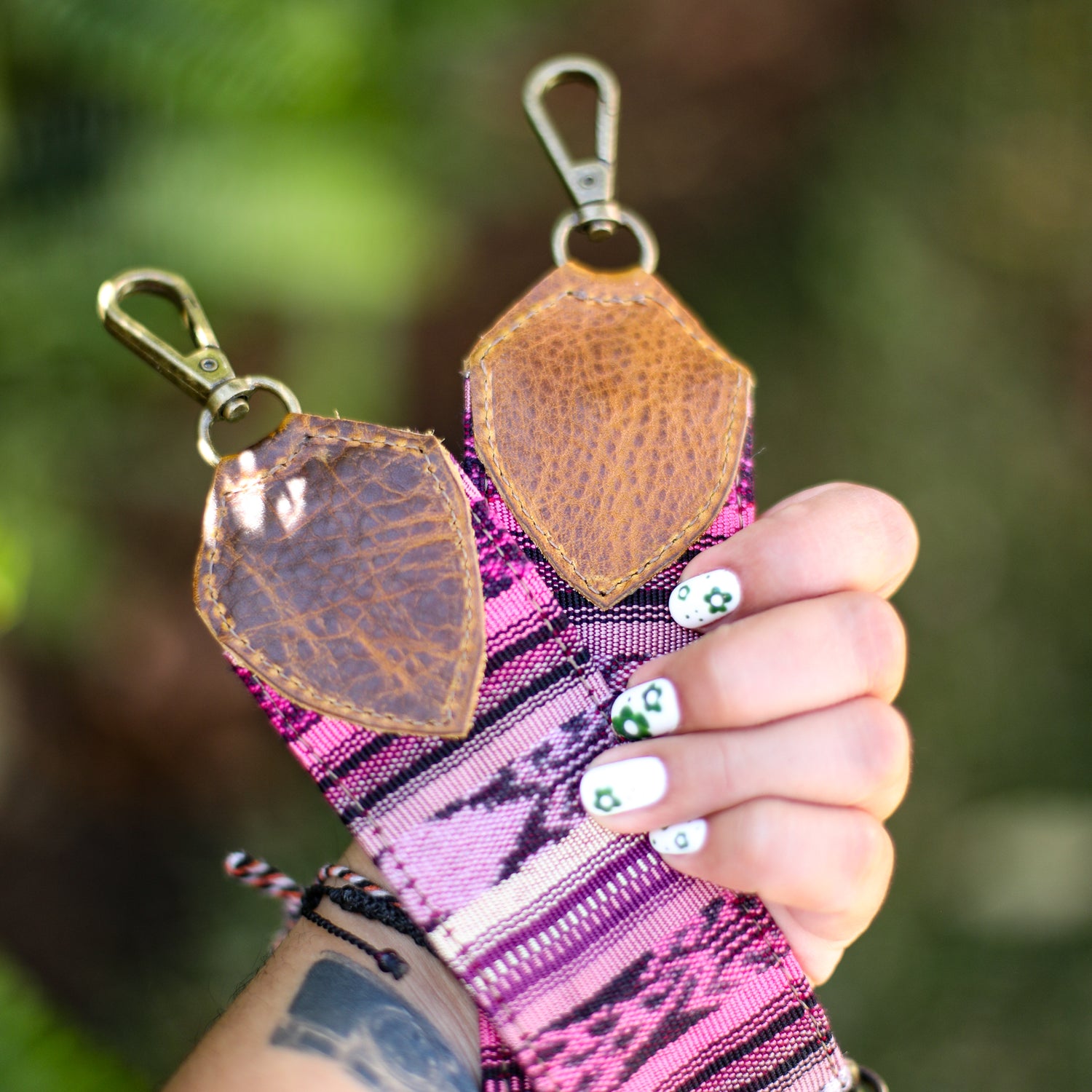 We make every effort to provide our customers with the best-handcrafted and high-quality bags. Please note that all our processes to make the bags are done by hand, from curing, cutting, and treating the leather to using up-cycled huipils. Our bags have natural characteristics and qualities that should not be considered as flaws or as damage because they do not interfere with the functionality of the bag. We up-cycle vintage Maya clothing to make beautiful one-of-a-kind products. Many times you will find snags in the pattern. This is normal. Should your patterned huipil snag you can snip the loose threads with scissors. Do not pull them.