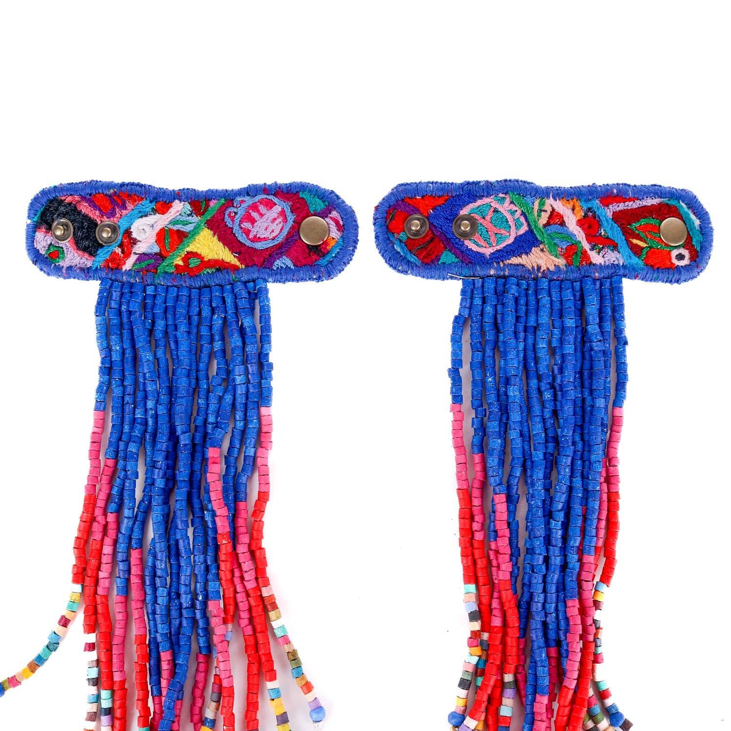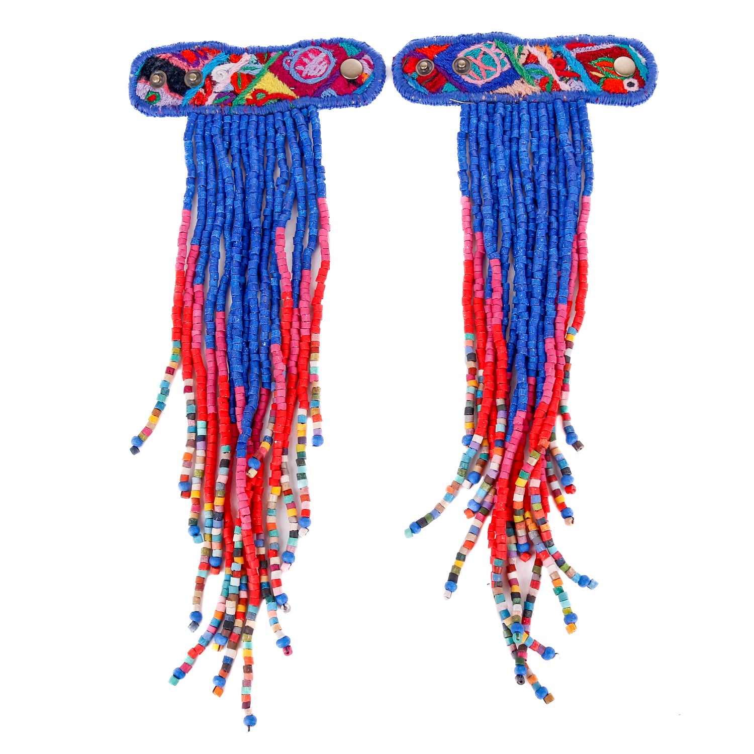 Add personality and flair to your favorite handbag with Beaded Tassels! Crafted with traditionally crafted ceramic beads and vintage OOAK huipil. Each set is unique and will give a splash of color and style to your bag!