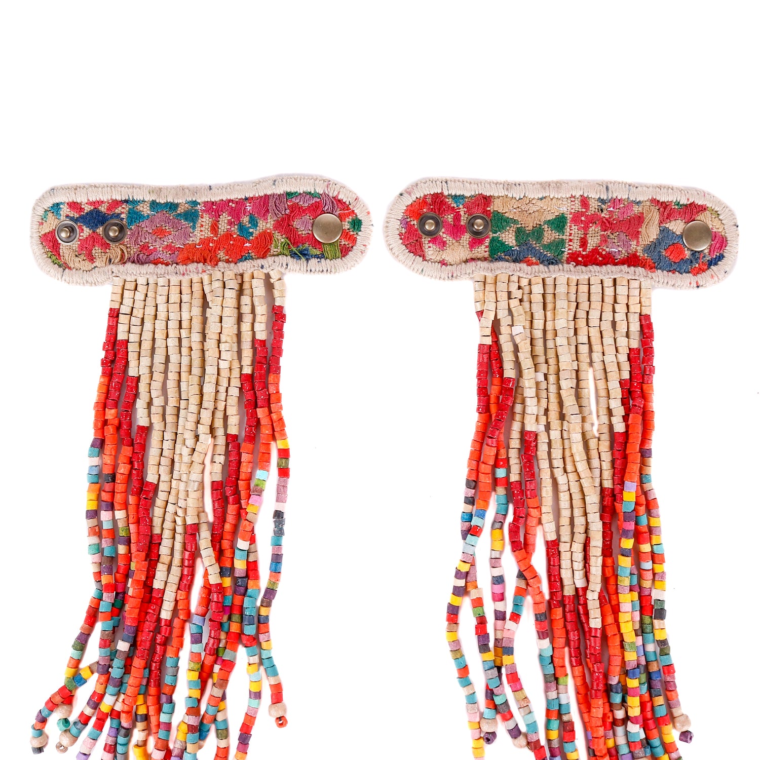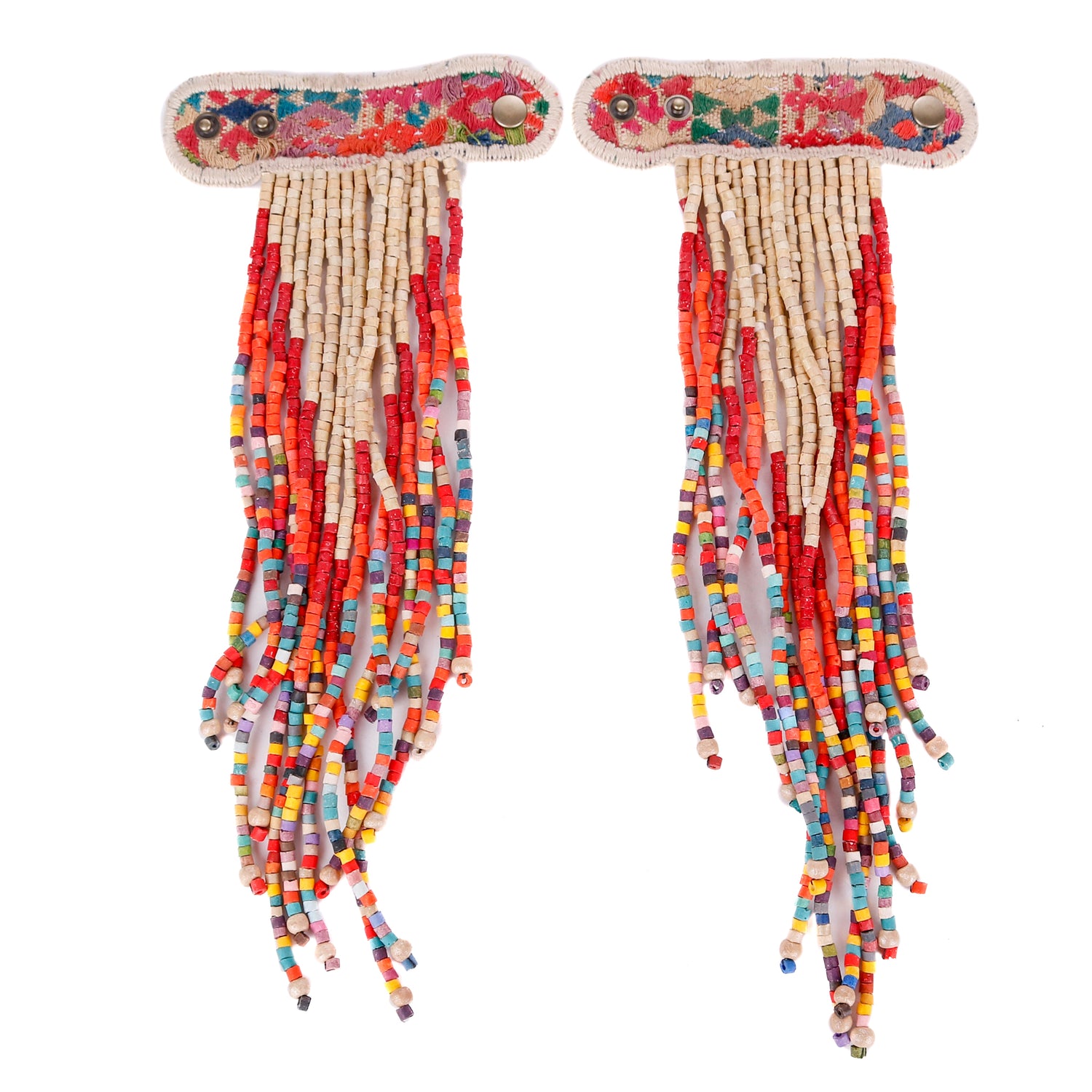 Add personality and flair to your favorite handbag with Beaded Tassels! Crafted with traditionally crafted ceramic beads and vintage OOAK huipil. Each set is unique and will give a splash of color and style to your bag!