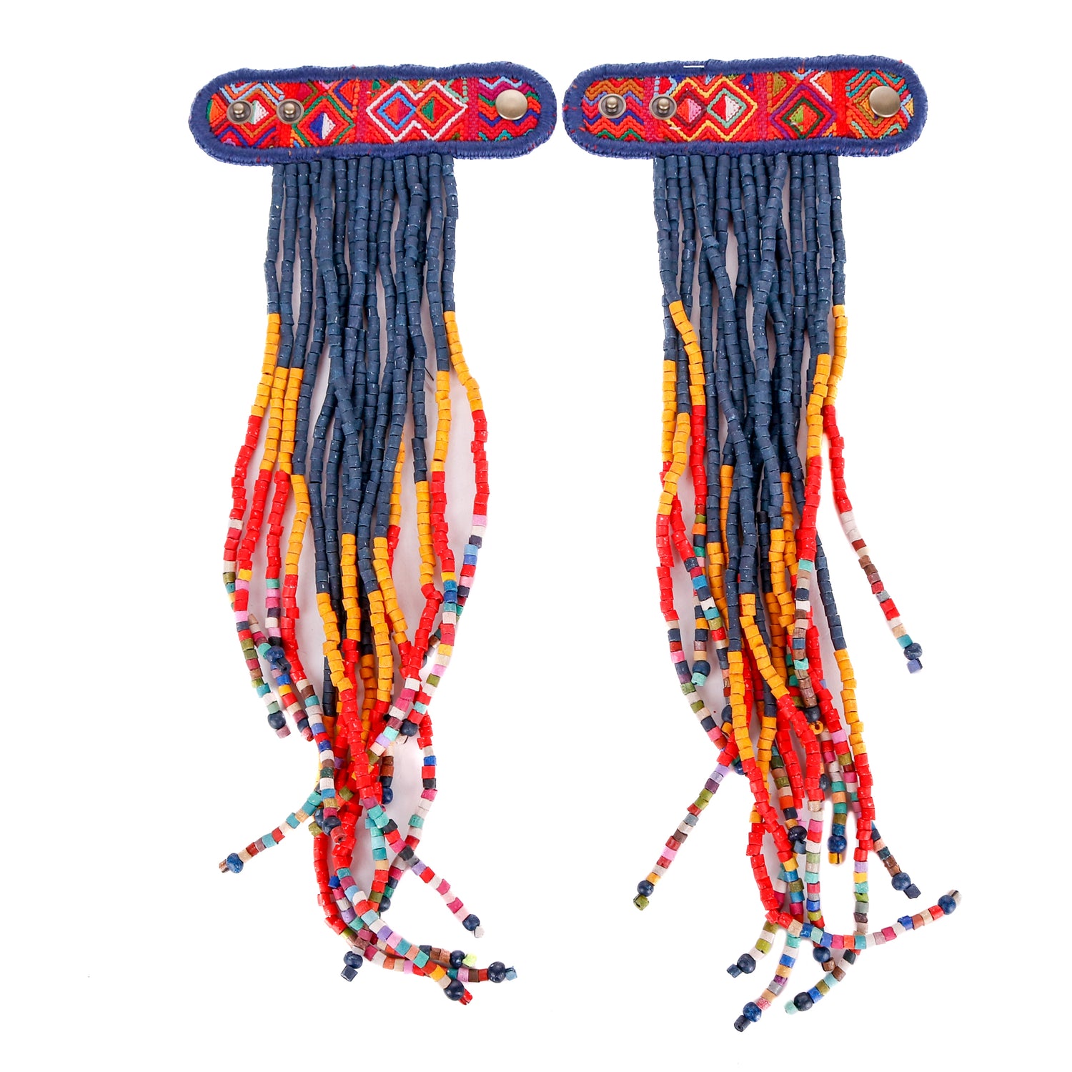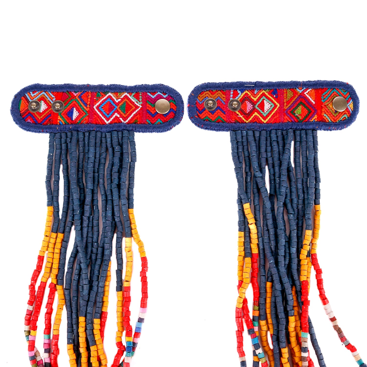 Add personality and flair to your favorite handbag with Beaded Tassels! Crafted with traditionally crafted ceramic beads and vintage OOAK huipil. Each set is unique and will give a splash of color and style to your bag!