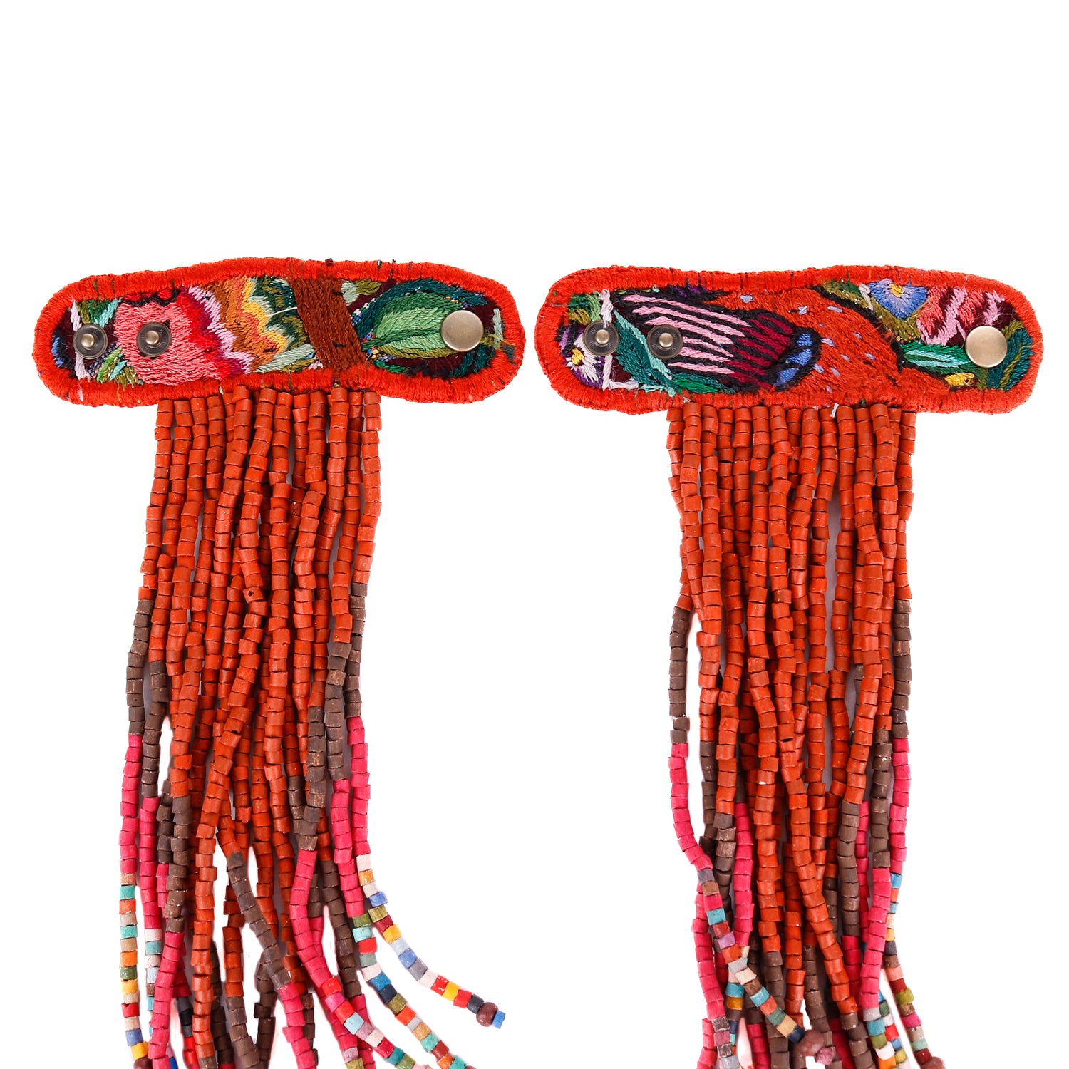 Add personality and flair to your favorite handbag with Beaded Tassels! Crafted with traditionally crafted ceramic beads and vintage OOAK huipil. Each set is unique and will give a splash of color and style to your bag!