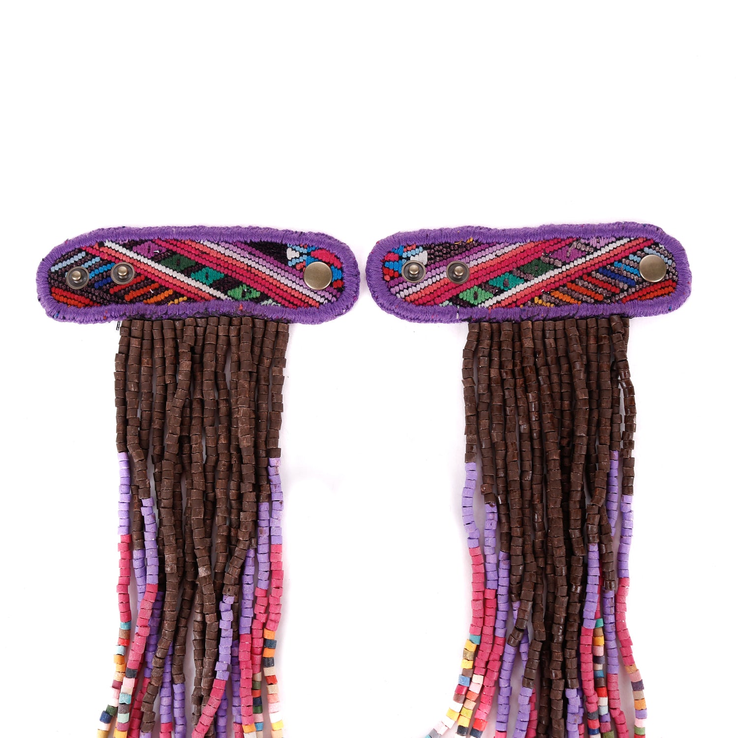 Add personality and flair to your favorite handbag with Beaded Tassels! Crafted with traditionally crafted ceramic beads and vintage OOAK huipil. Each set is unique and will give a splash of color and style to your bag!