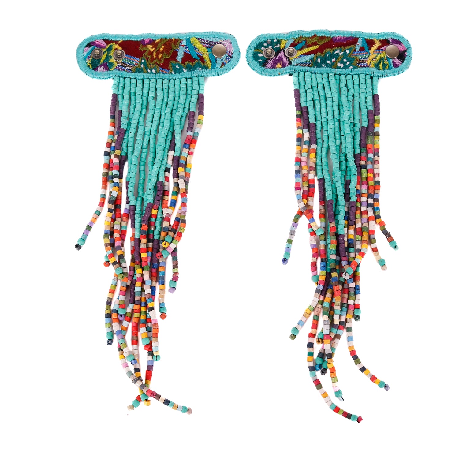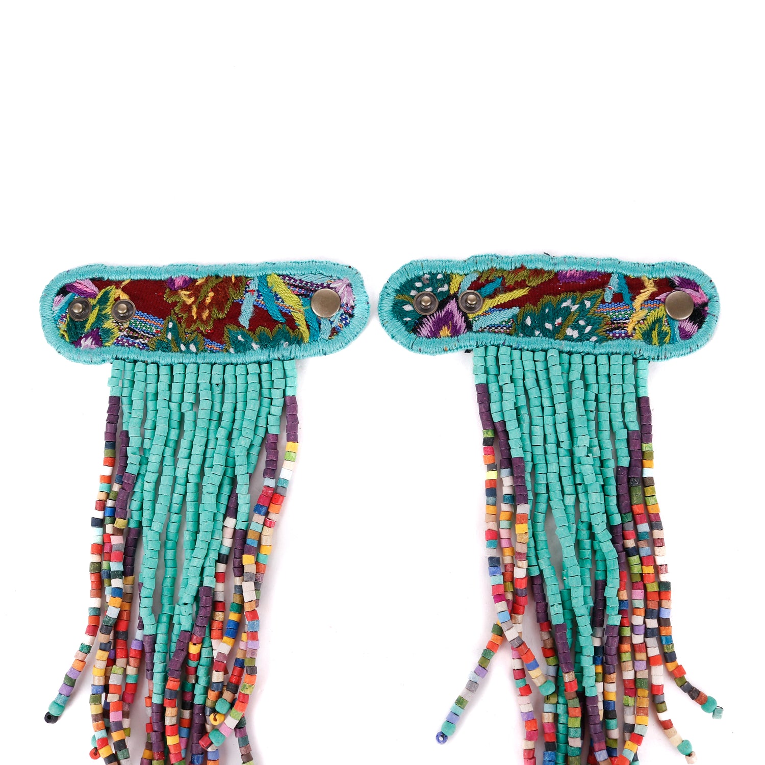 Add personality and flair to your favorite handbag with Beaded Tassels! Crafted with traditionally crafted ceramic beads and vintage OOAK huipil. Each set is unique and will give a splash of color and style to your bag!