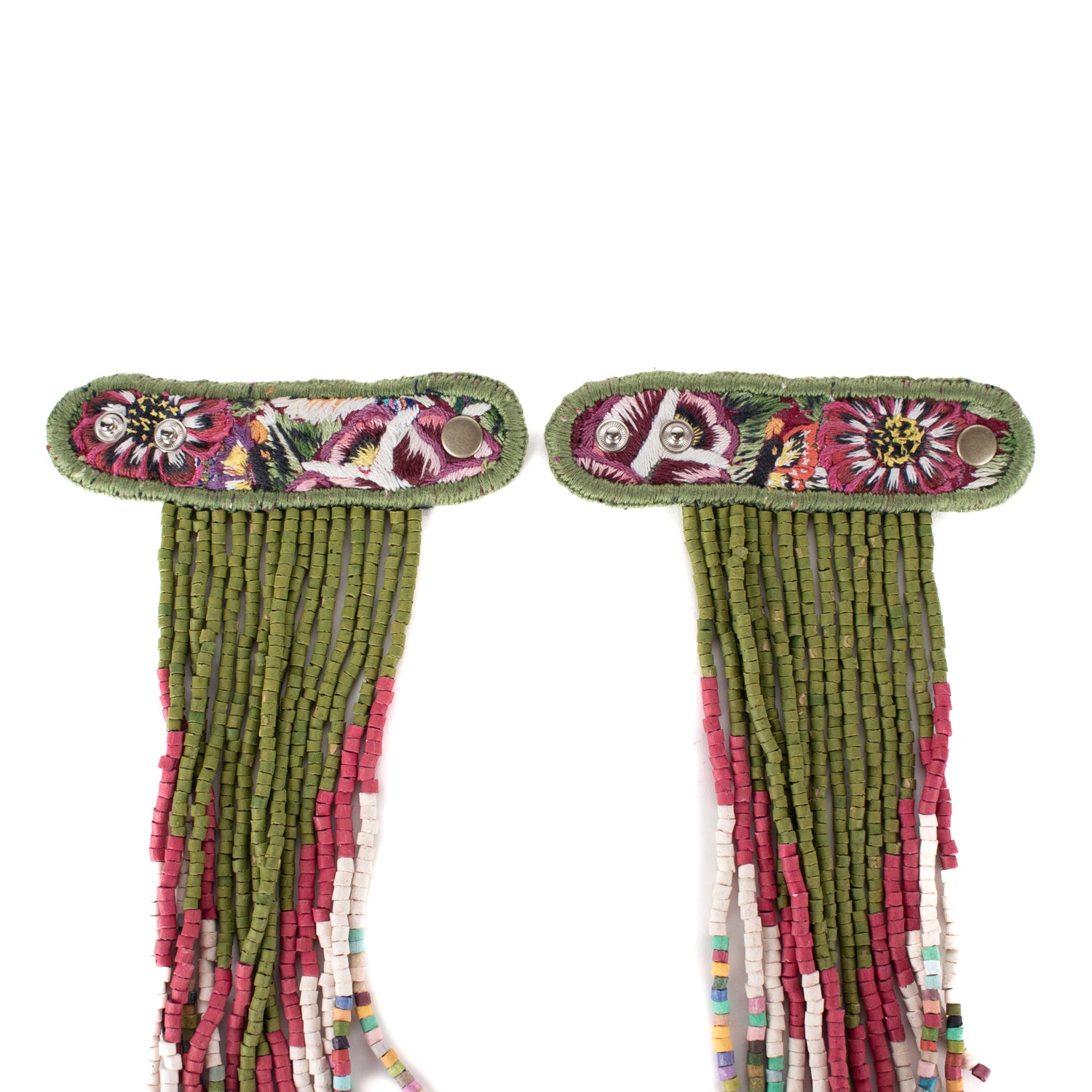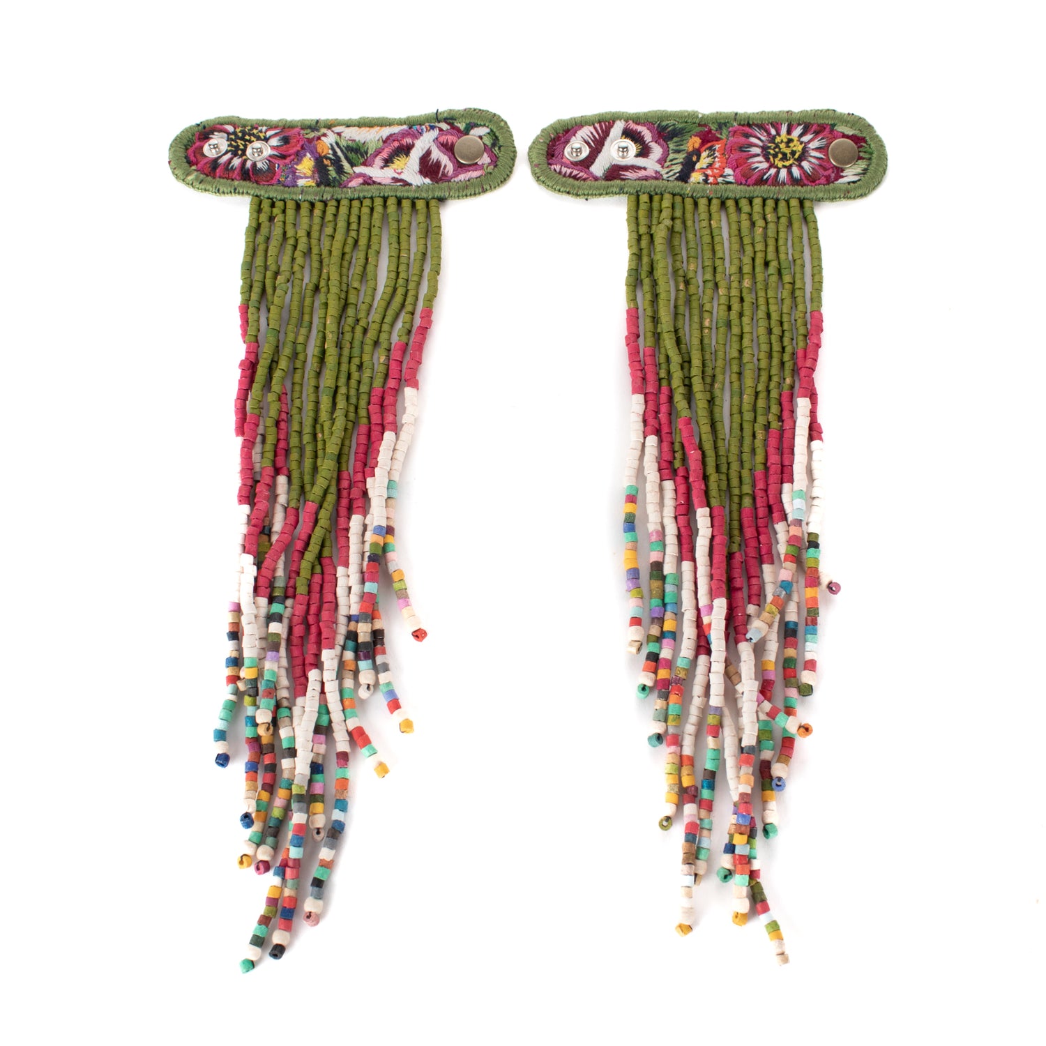 Add personality and flair to your favorite handbag with Beaded Tassels! Crafted with traditionally crafted ceramic beads and vintage OOAK huipil. Each set is unique and will give a splash of color and style to your bag!