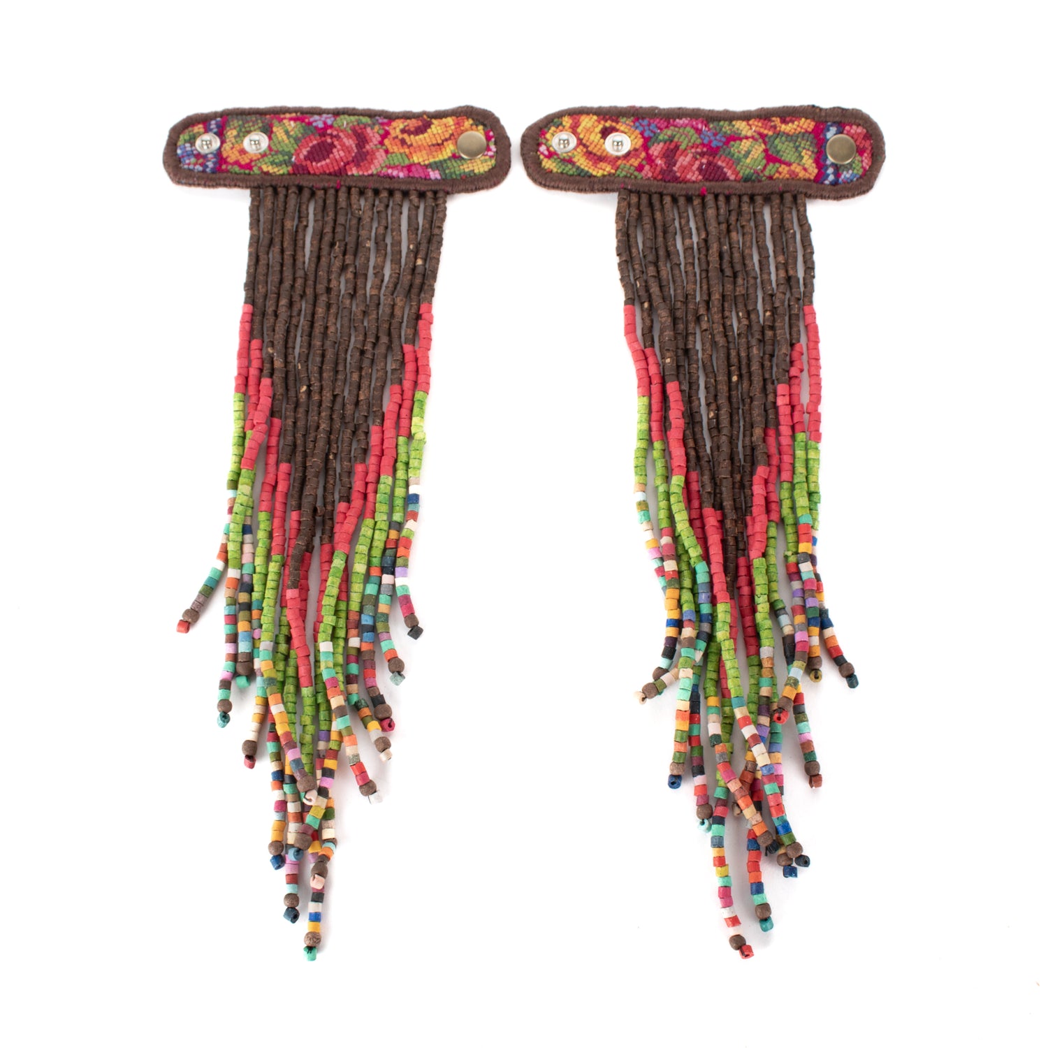 Add personality and flair to your favorite handbag with Beaded Tassels! Crafted with traditionally crafted ceramic beads and vintage OOAK huipil. Each set is unique and will give a splash of color and style to your bag!