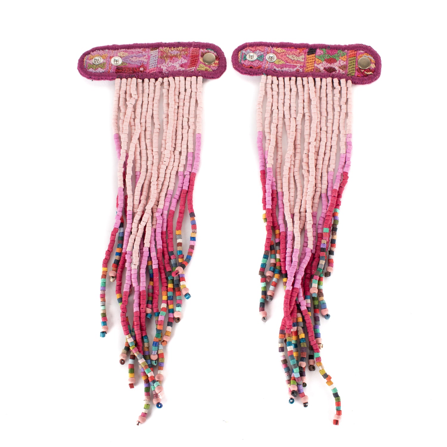 Add personality and flair to your favorite handbag with Beaded Tassels! Crafted with traditionally crafted ceramic beads and vintage OOAK huipil. Each set is unique and will give a splash of color and style to your bag!