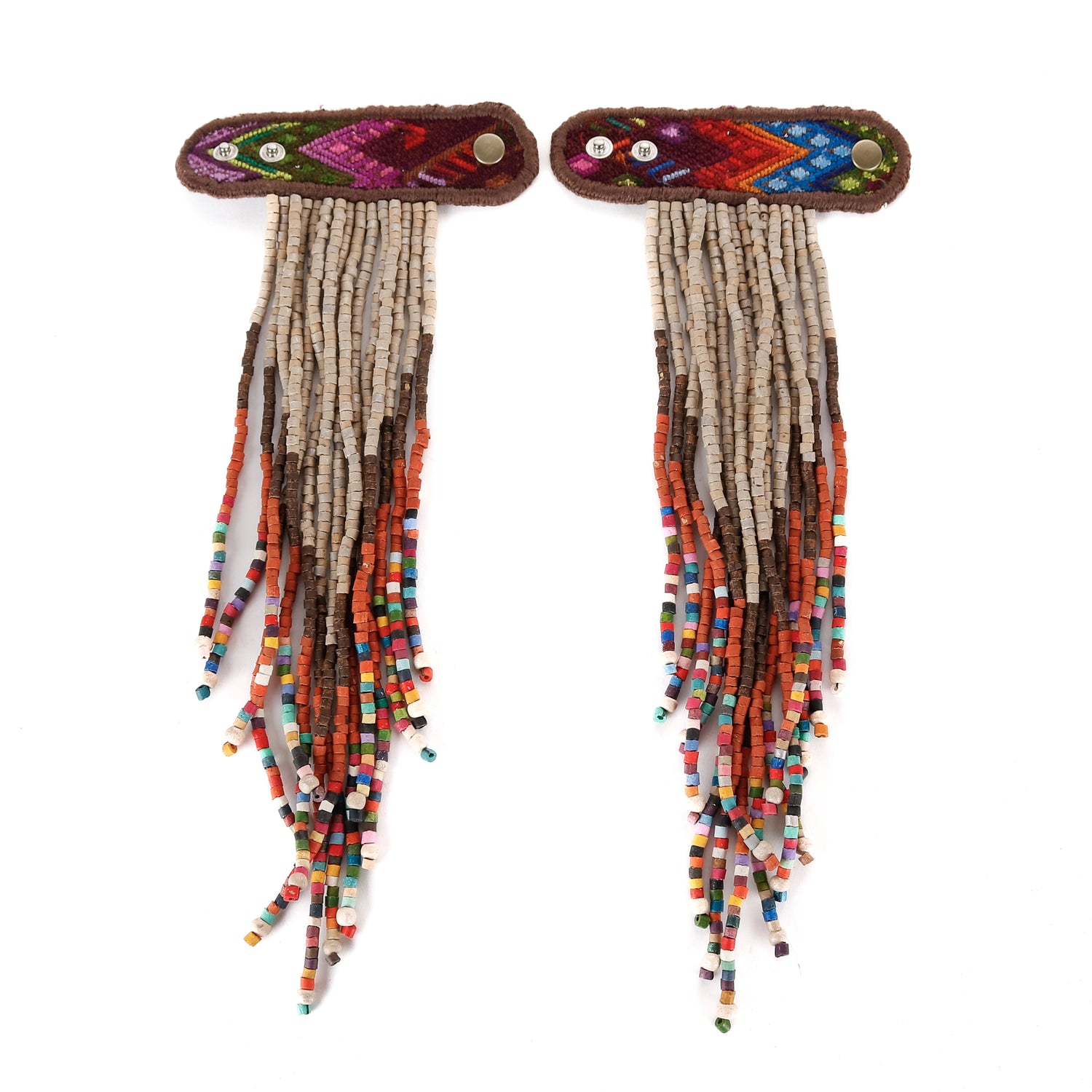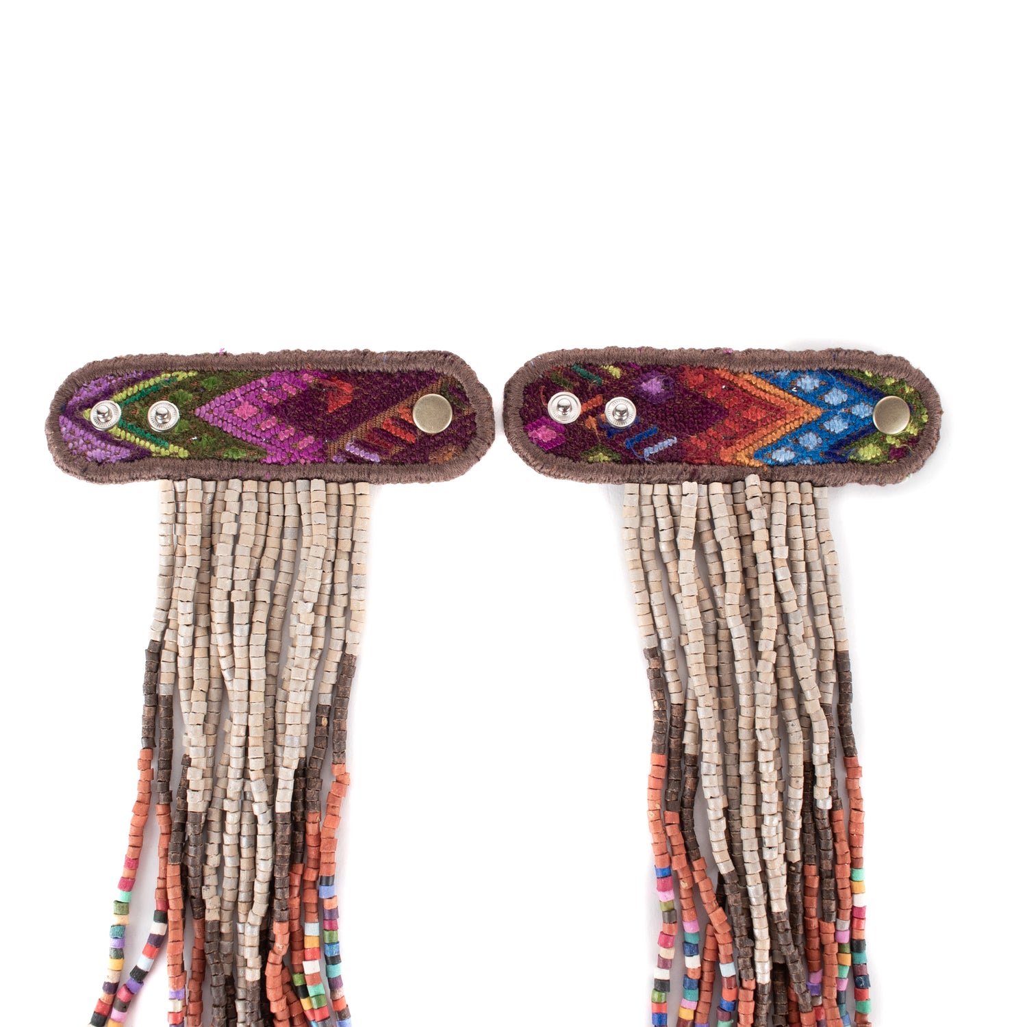 Add personality and flair to your favorite handbag with Beaded Tassels! Crafted with traditionally crafted ceramic beads and vintage OOAK huipil. Each set is unique and will give a splash of color and style to your bag!