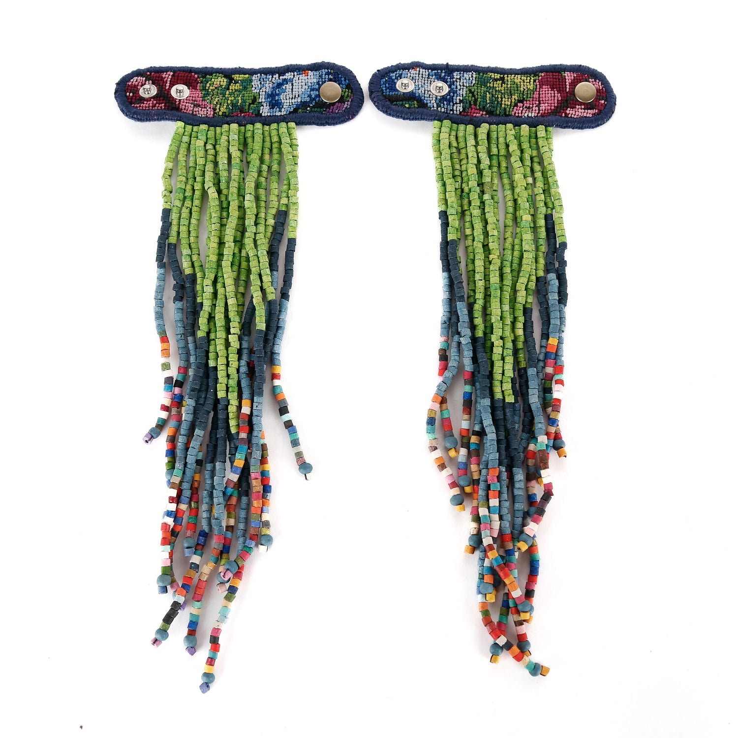 Add personality and flair to your favorite handbag with Beaded Tassels! Crafted with traditionally crafted ceramic beads and vintage OOAK huipil. Each set is unique and will give a splash of color and style to your bag!