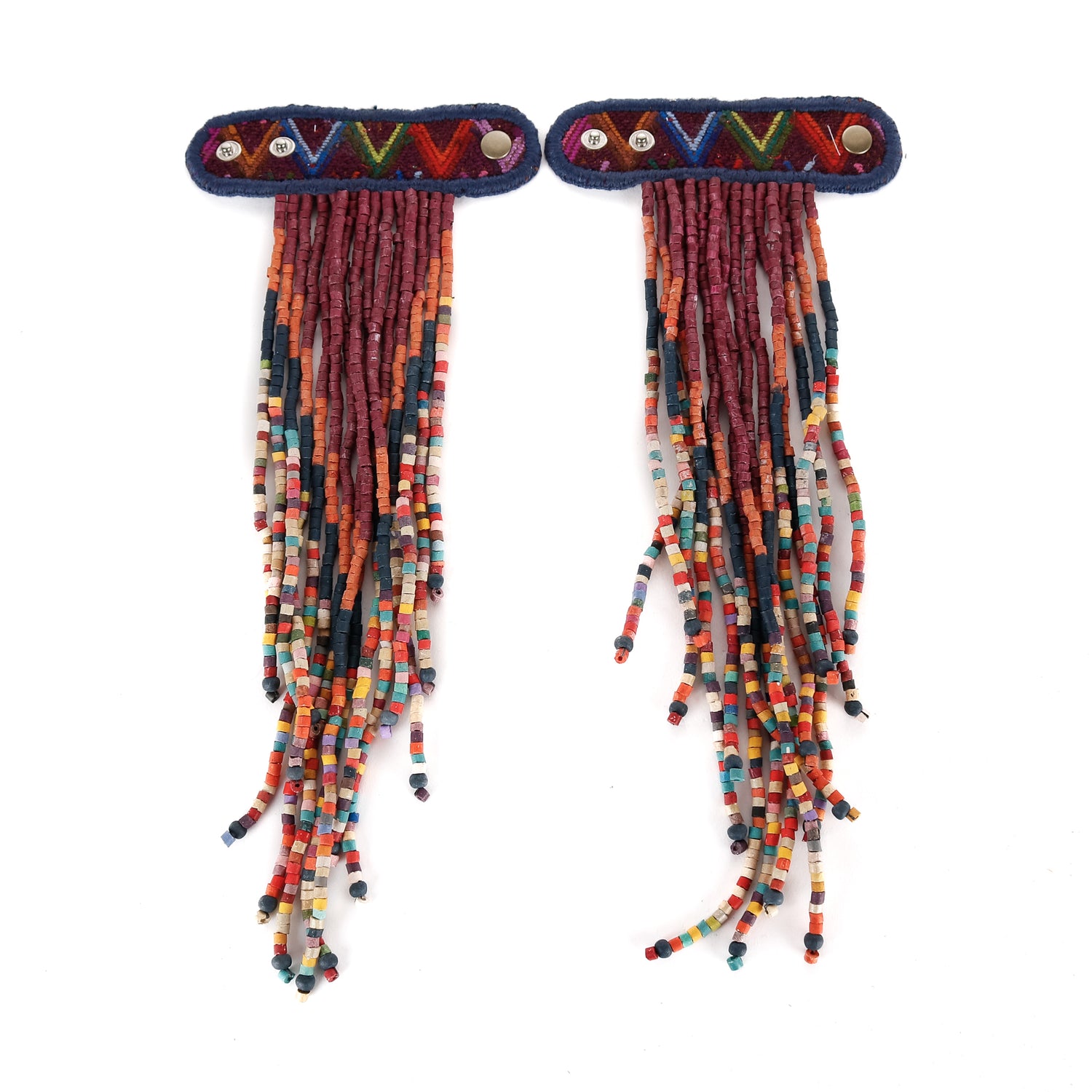 Add personality and flair to your favorite handbag with Beaded Tassels! Crafted with traditionally crafted ceramic beads and vintage OOAK huipil. Each set is unique and will give a splash of color and style to your bag!
