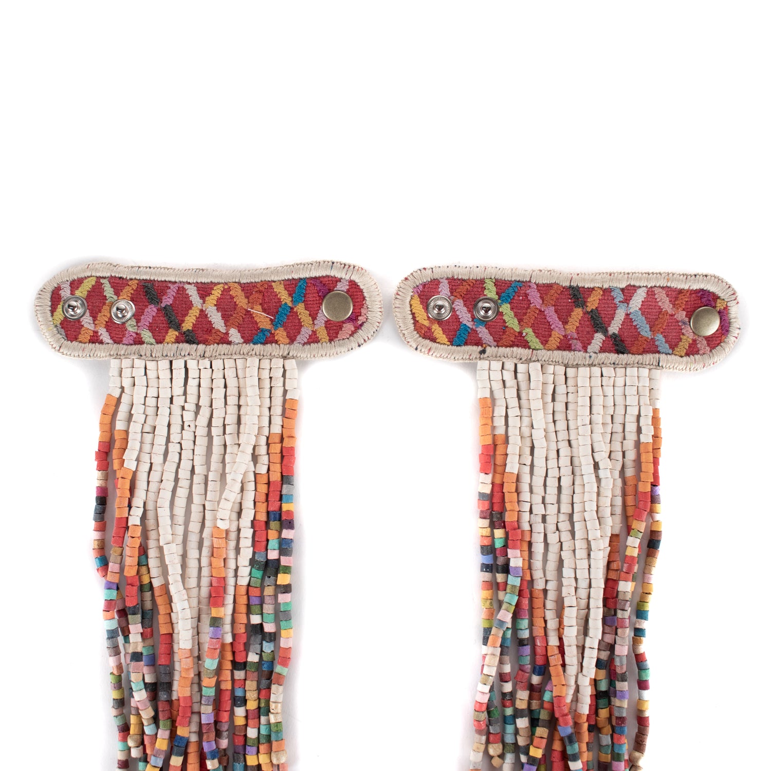 Add personality and flair to your favorite handbag with Beaded Tassels! Crafted with traditionally crafted ceramic beads and vintage OOAK huipil. Each set is unique and will give a splash of color and style to your bag!