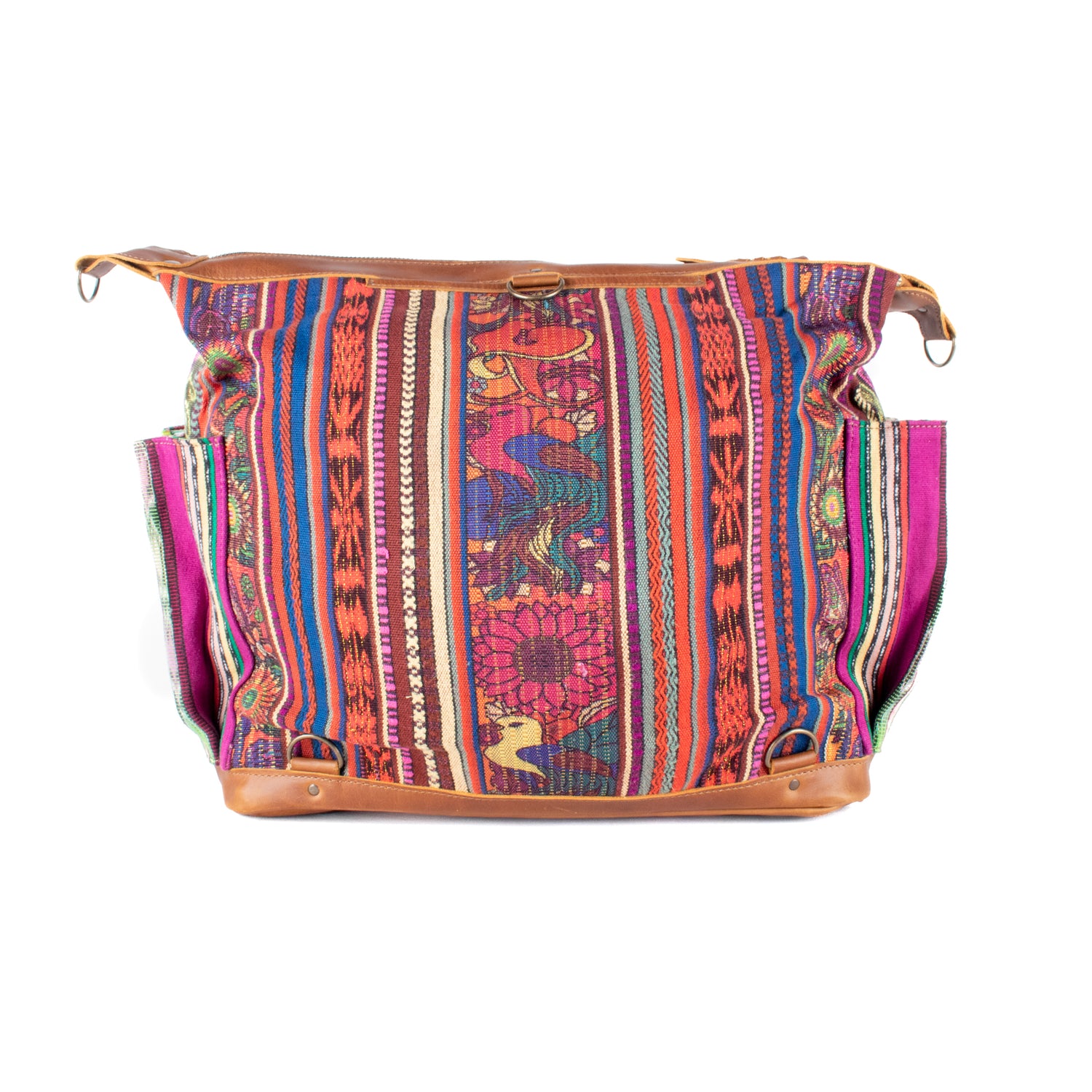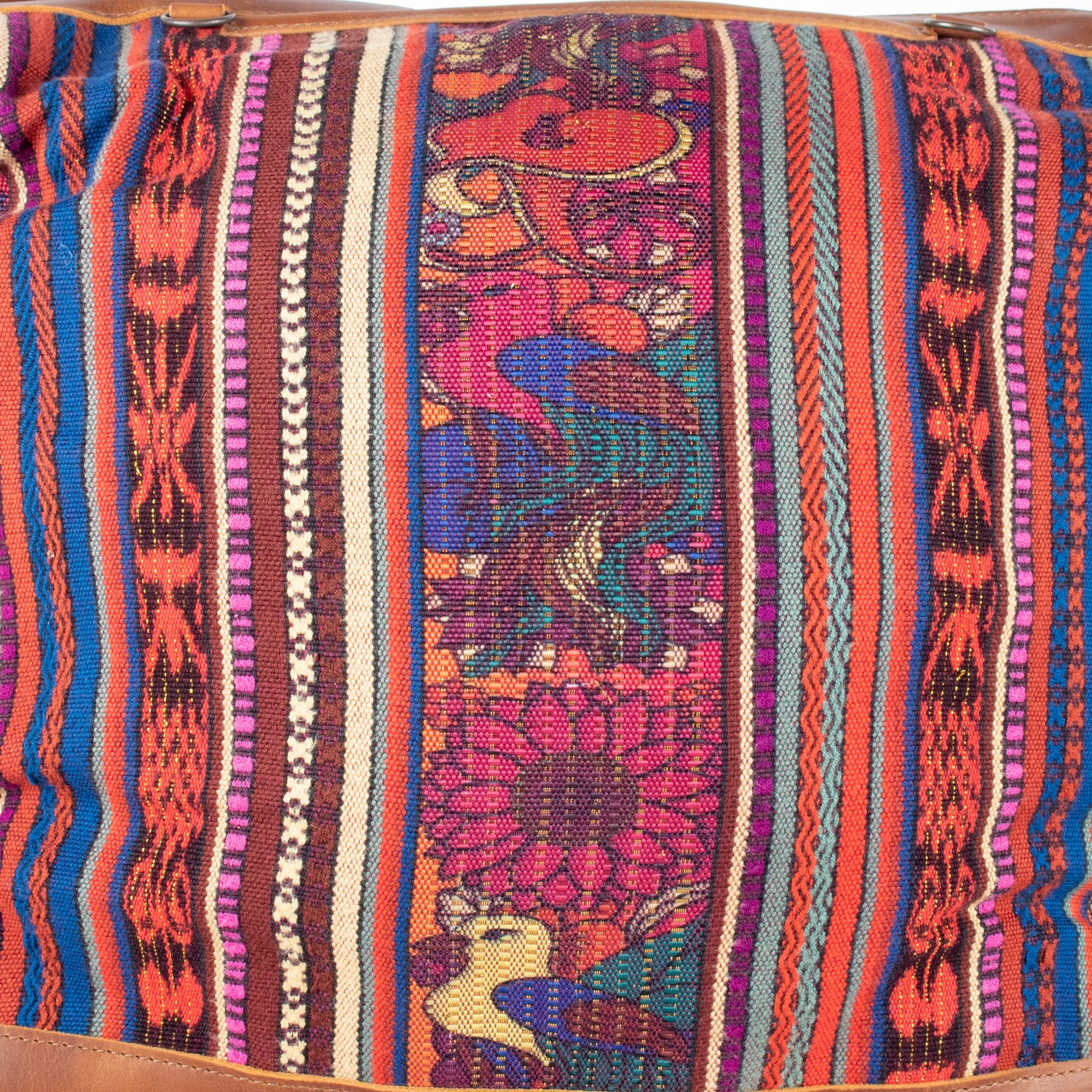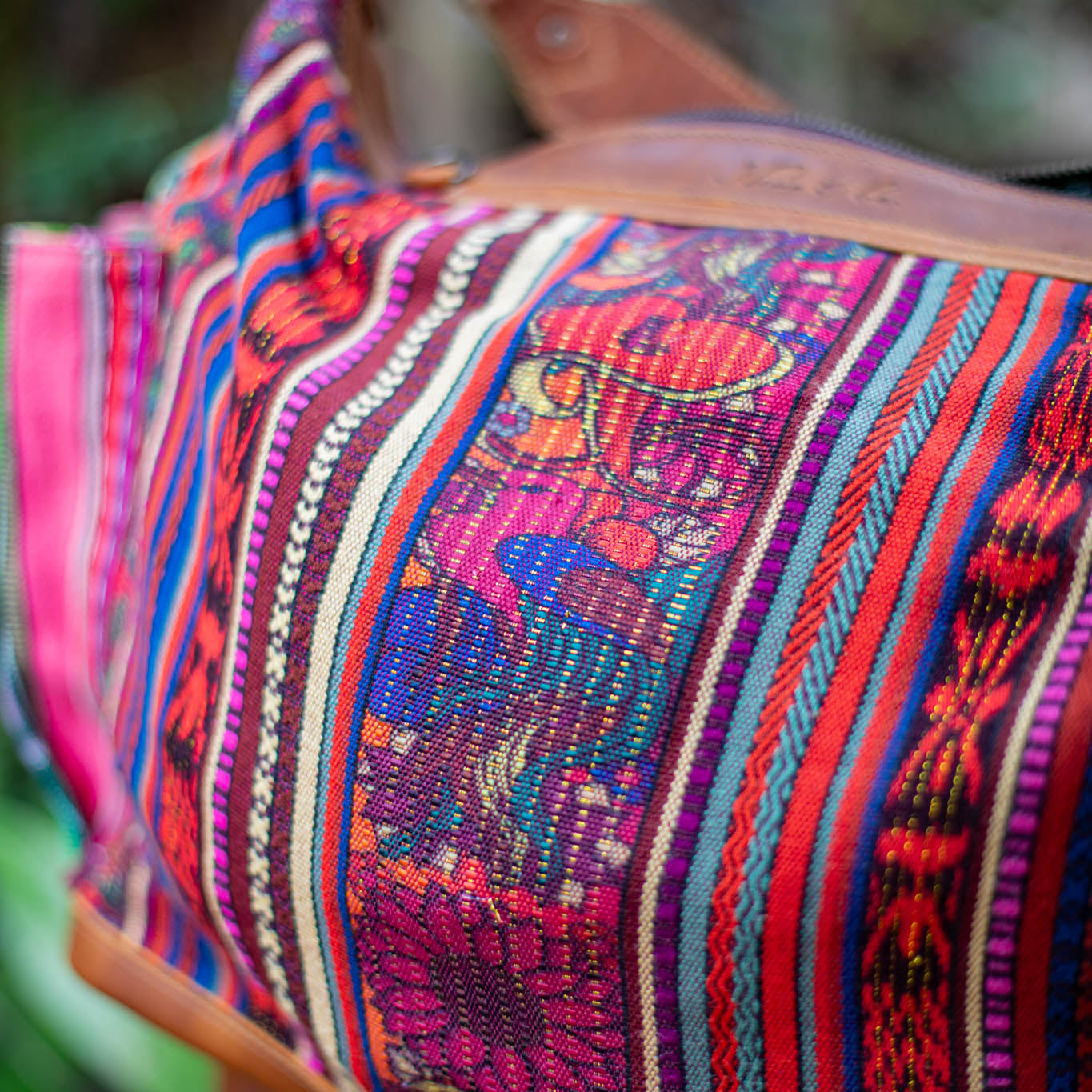 Many unique Maya symbols can be found in our One of a Kind Collection. The fabric we use for this collection is made from upcycled vintage huipiles (traditional attire worn by women in Guatemala) that were handwoven by Artisans up to 10 years ago, and they have lived a full life before being incorporated into your leather bag!