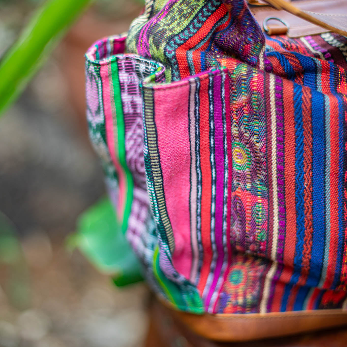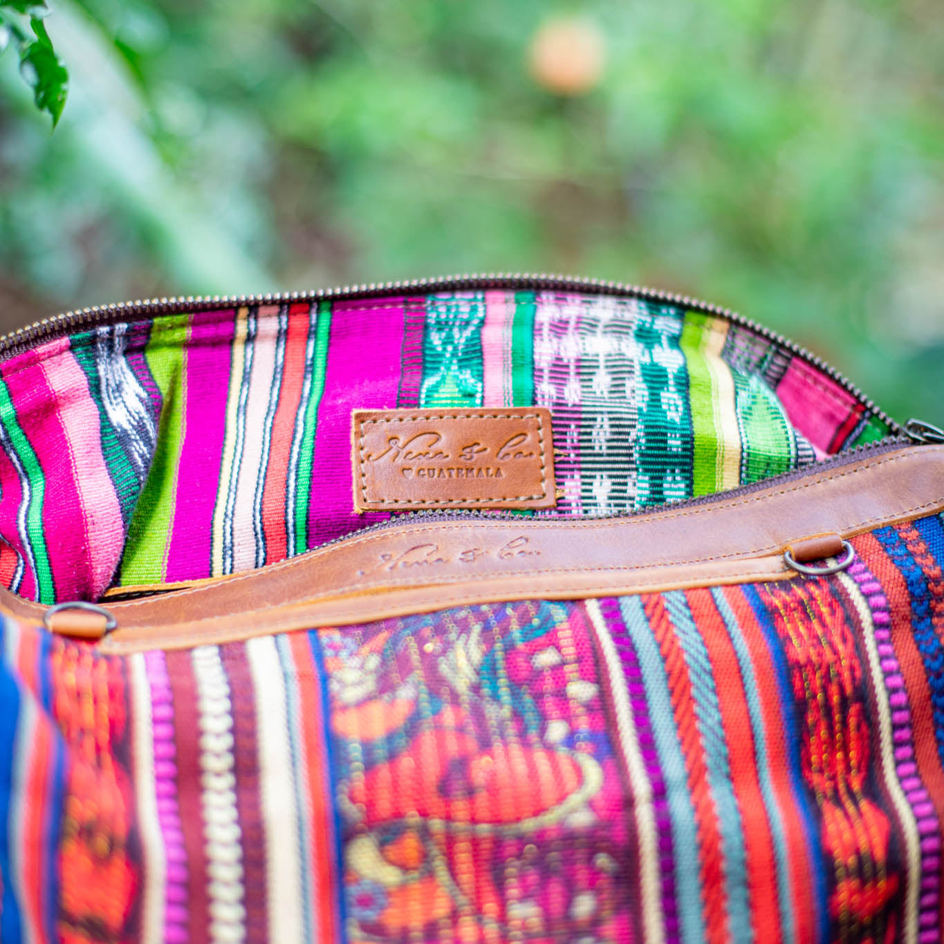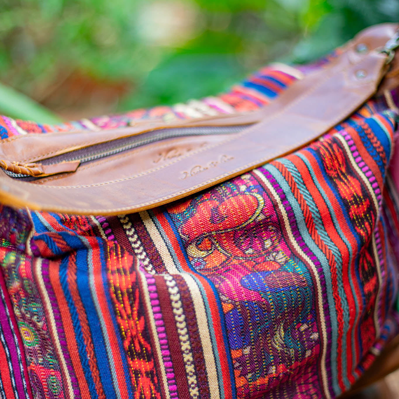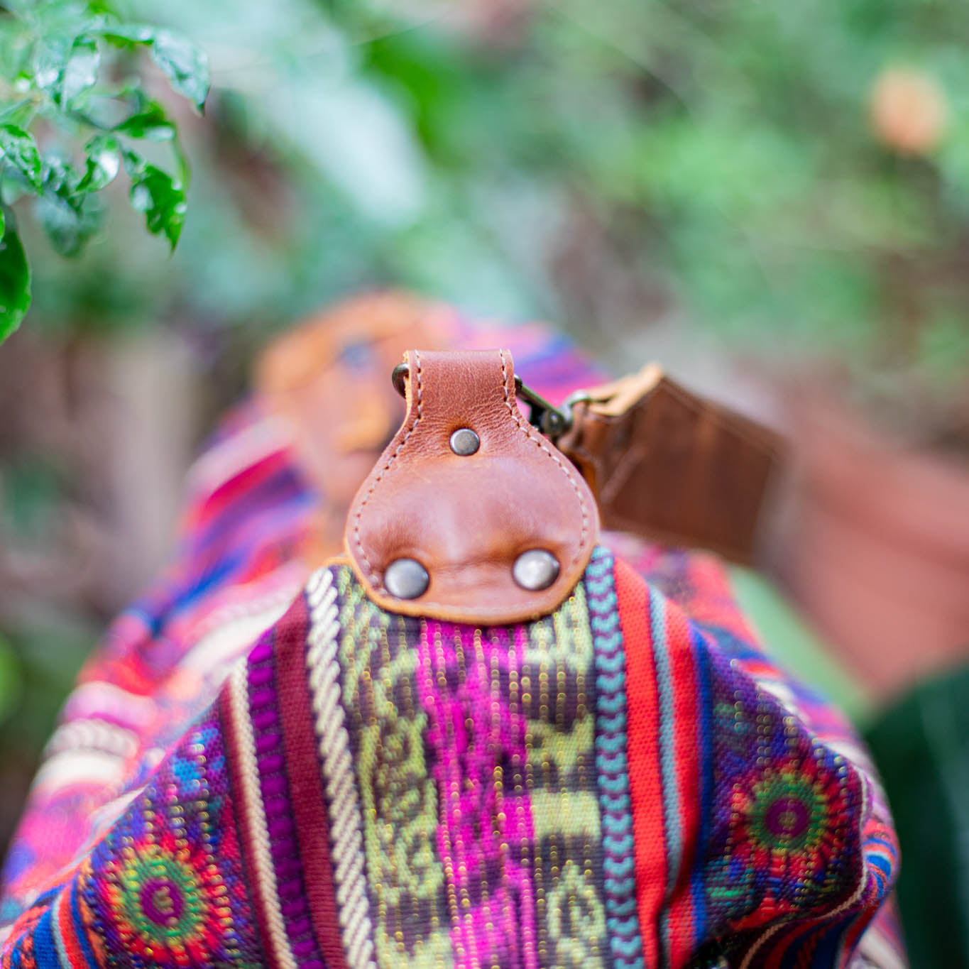 We make every effort to provide our customers with the best-handcrafted and high-quality bags. Please note that all our processes to make the bags are done by hand, from curing, cutting, and treating the leather to using up-cycled huipils. Our bags have natural characteristics and qualities that should not be considered as flaws or as damage because they do not interfere with the functionality of the bag. We up-cycle vintage Maya clothing to make beautiful one-of-a-kind products. Many times you will find snags in the pattern. This is normal. Should your patterned huipil snag you can snip the loose threads with scissors. Do not pull them.