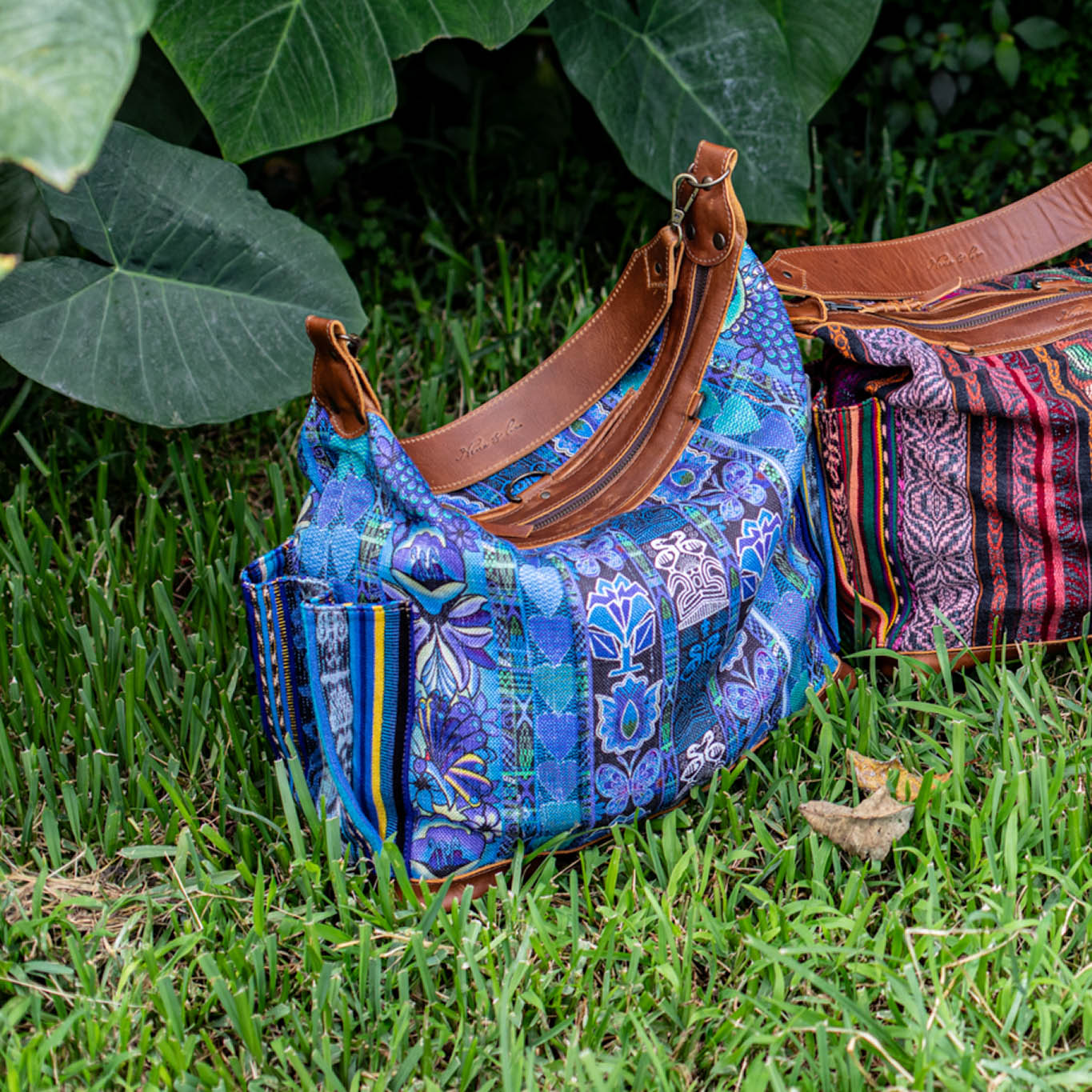 We make every effort to provide our customers with the best-handcrafted and high-quality bags. Please note that all our processes to make the bags are done by hand, from curing, cutting, and treating the leather to using up-cycled huipils. Our bags have natural characteristics and qualities that should not be considered as flaws or as damage because they do not interfere with the functionality of the bag. We up-cycle vintage Maya clothing to make beautiful one-of-a-kind products. Many times you will find snags in the pattern. This is normal. Should your patterned huipil snag you can snip the loose threads with scissors. Do not pull them.