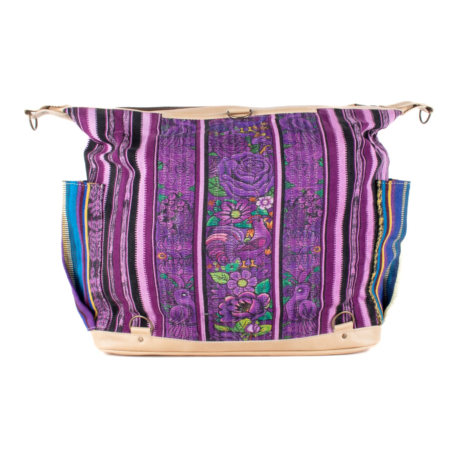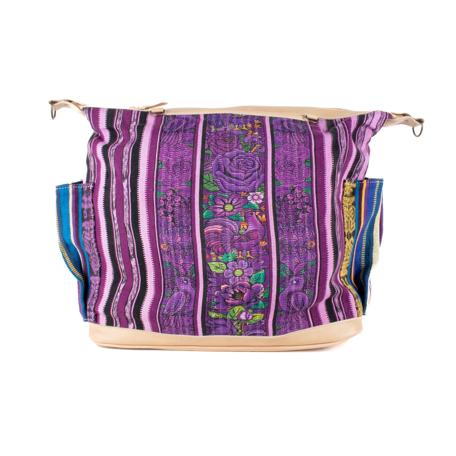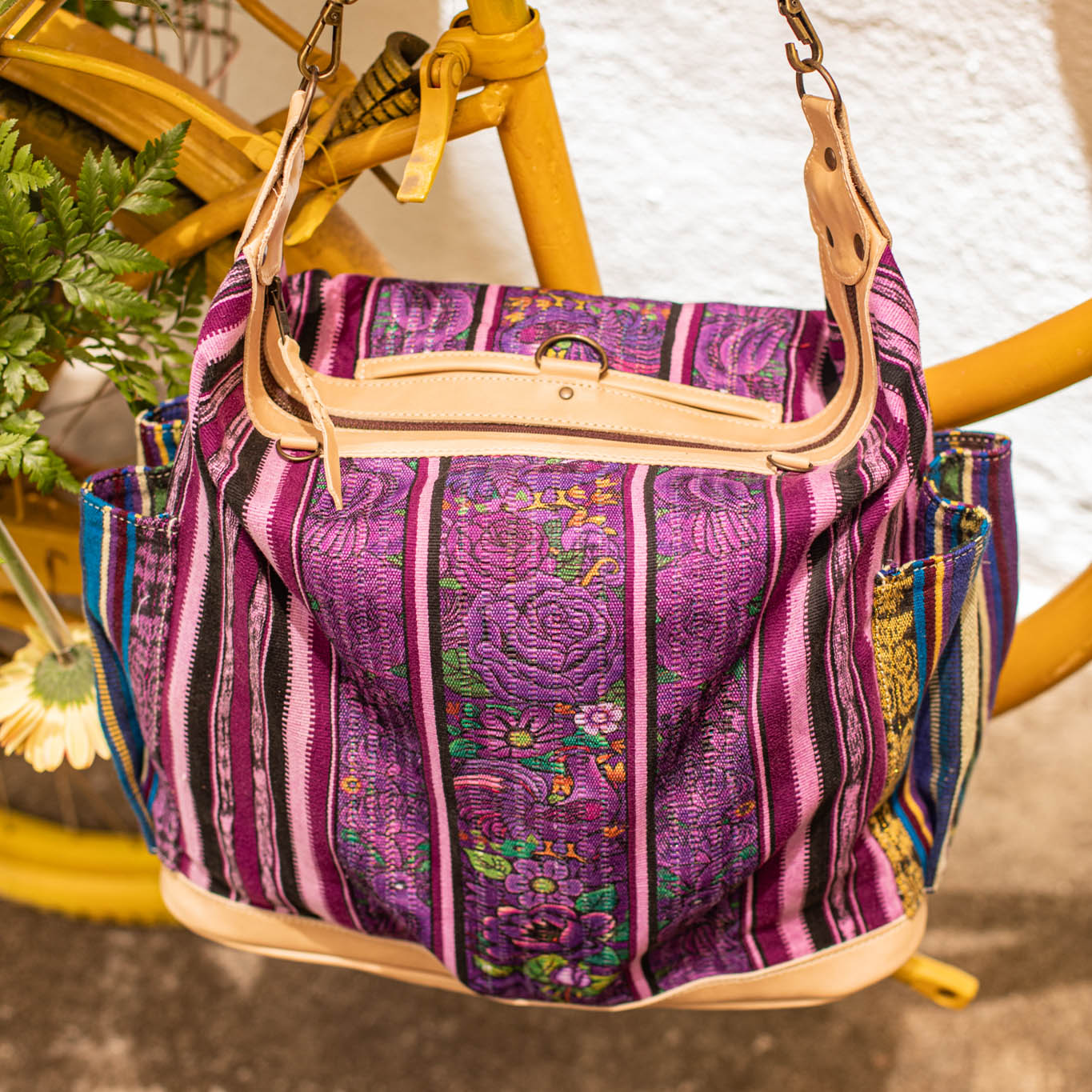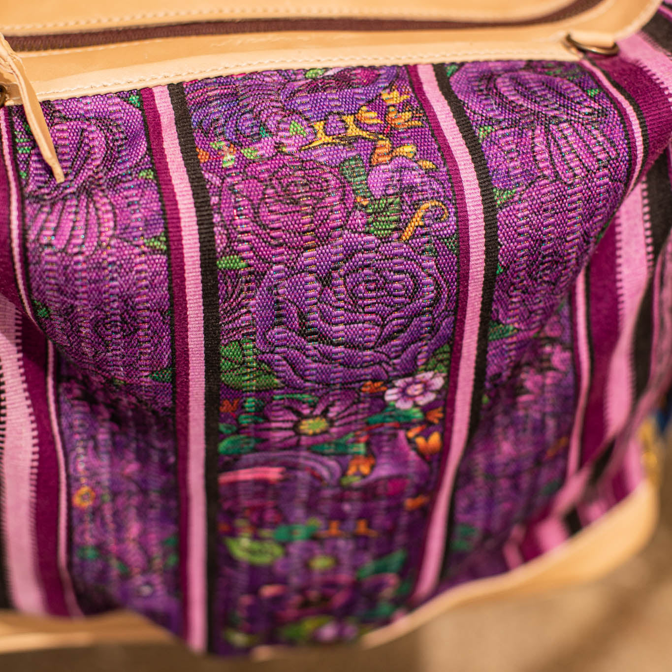 Many unique Maya symbols can be found in our One of a Kind Collection. The fabric we use for this collection is made from upcycled vintage huipiles (traditional attire worn by women in Guatemala) that were handwoven by Artisans up to 10 years ago, and they have lived a full life before being incorporated into your leather bag!