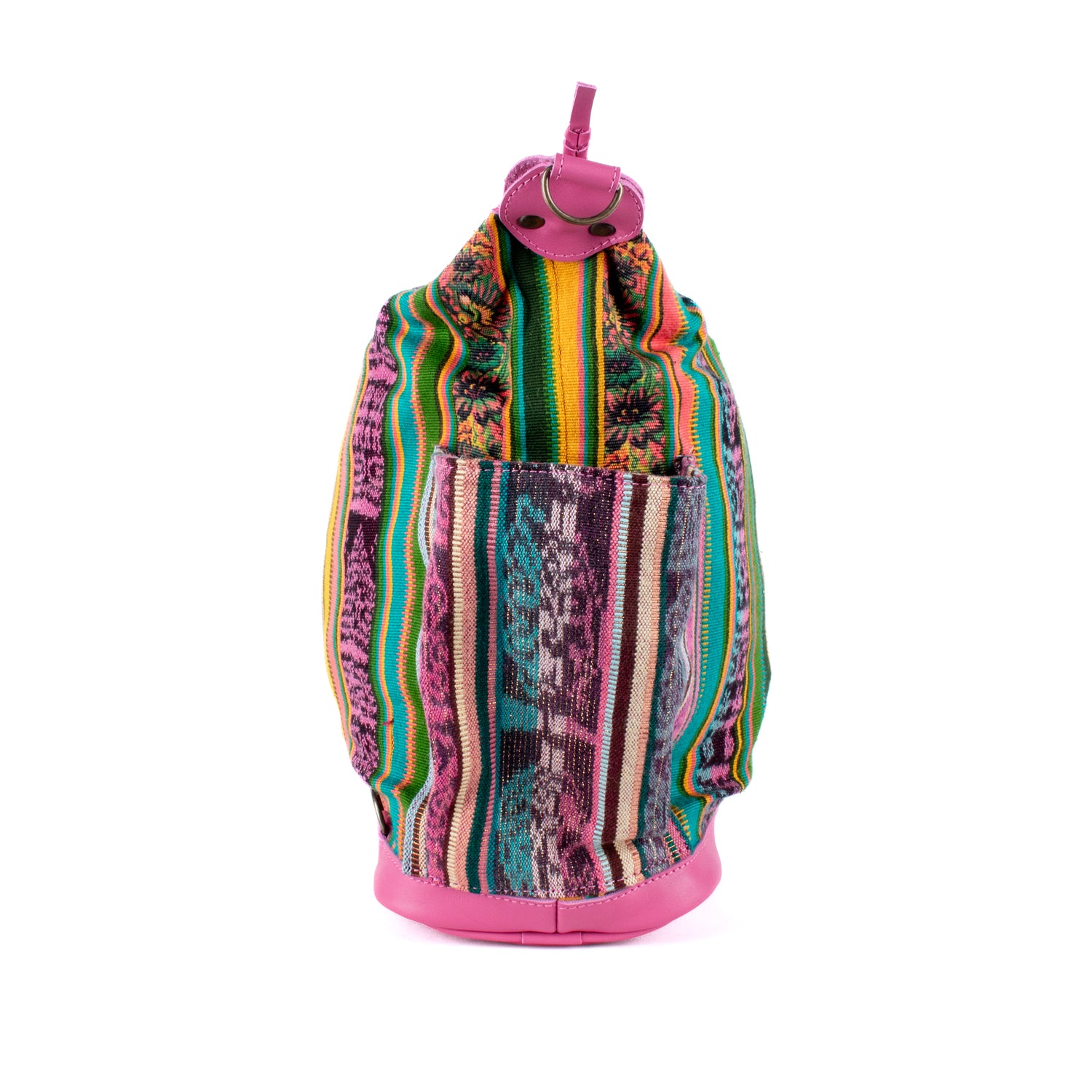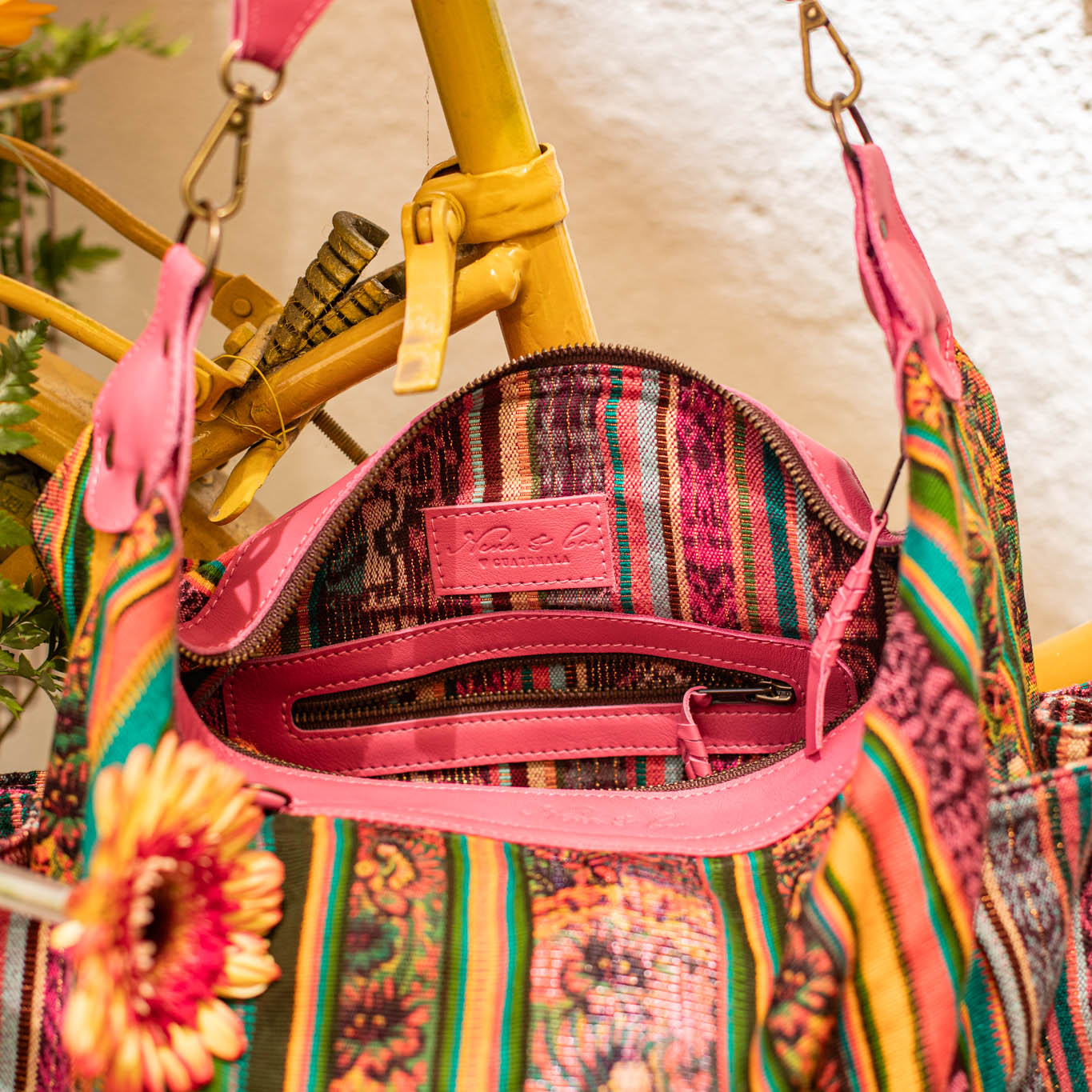 We make every effort to provide our customers with the best-handcrafted and high-quality bags. Please note that all our processes to make the bags are done by hand, from curing, cutting, and treating the leather to using up-cycled huipils. Our bags have natural characteristics and qualities that should not be considered as flaws or as damage because they do not interfere with the functionality of the bag. We up-cycle vintage Maya clothing to make beautiful one-of-a-kind products. Many times you will find snags in the pattern. This is normal. Should your patterned huipil snag you can snip the loose threads with scissors. Do not pull them.