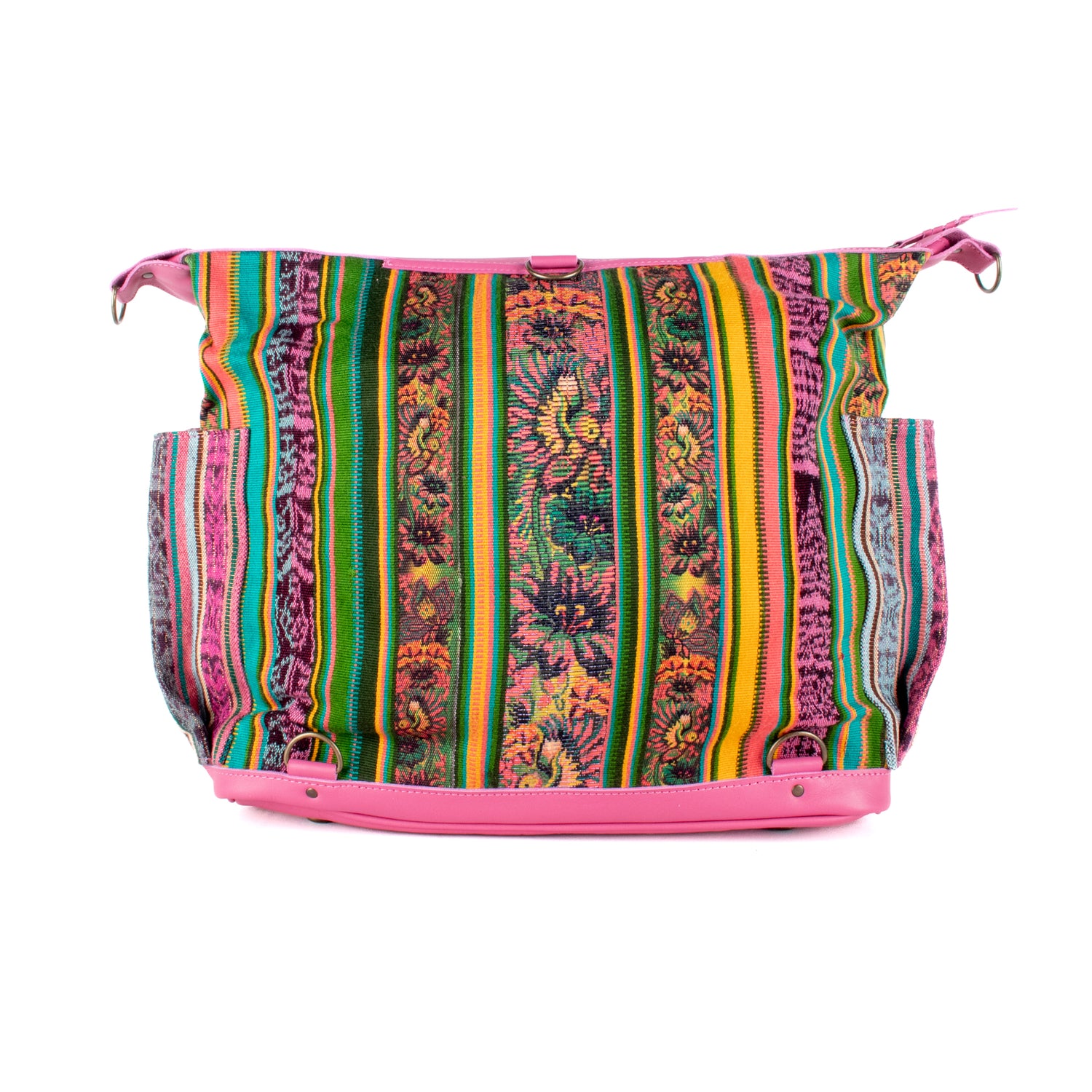 Many unique Maya symbols can be found in our One of a Kind Collection. The fabric we use for this collection is made from upcycled vintage huipiles (traditional attire worn by women in Guatemala) that were handwoven by Artisans up to 10 years ago, and they have lived a full life before being incorporated into your leather bag!