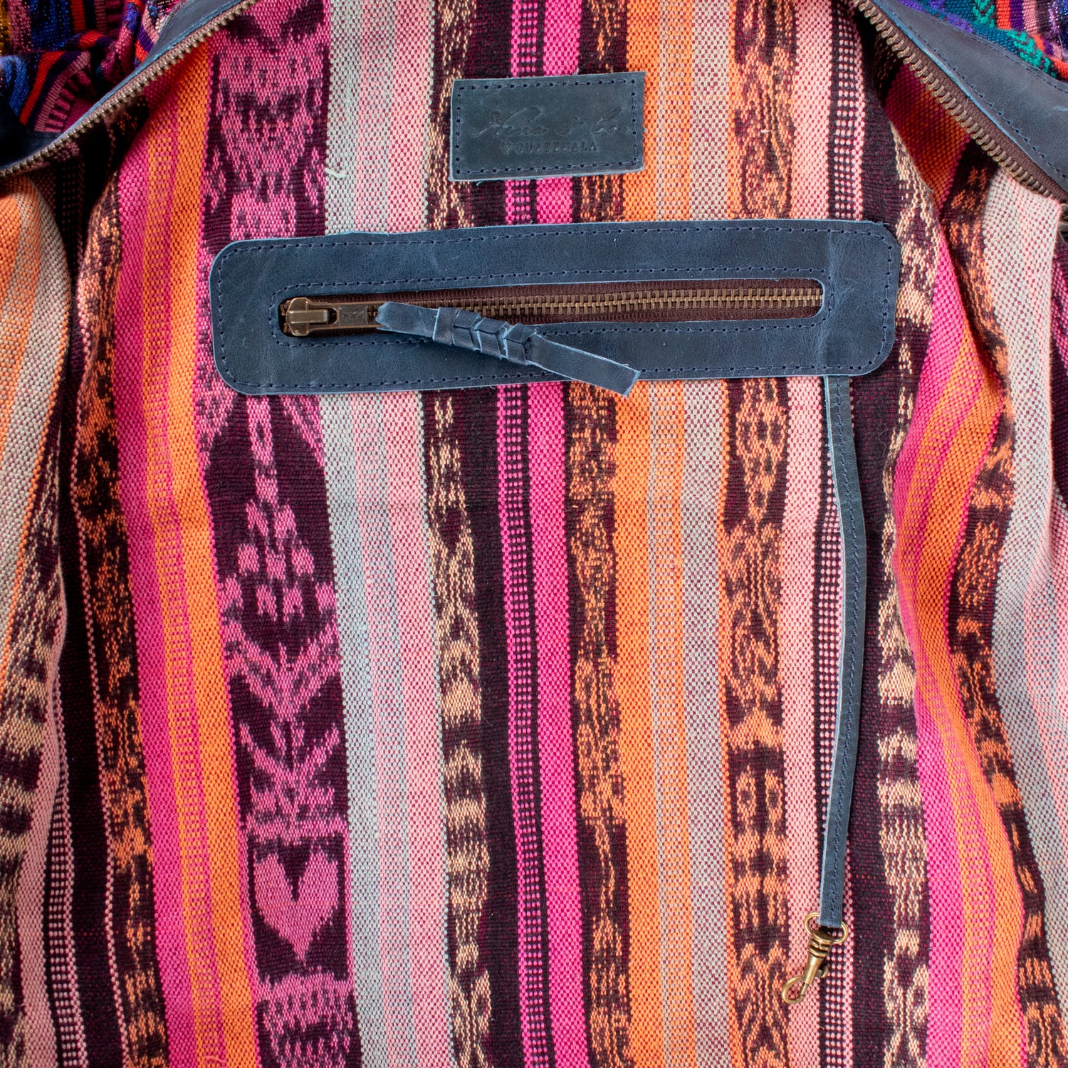 We make every effort to provide our customers with the best-handcrafted and high-quality bags. Please note that all our processes to make the bags are done by hand, from curing, cutting, and treating the leather to using up-cycled huipils. Our bags have natural characteristics and qualities that should not be considered as flaws or as damage because they do not interfere with the functionality of the bag. We up-cycle vintage Maya clothing to make beautiful one-of-a-kind products. Many times you will find snags in the pattern. This is normal. Should your patterned huipil snag you can snip the loose threads with scissors. Do not pull them.