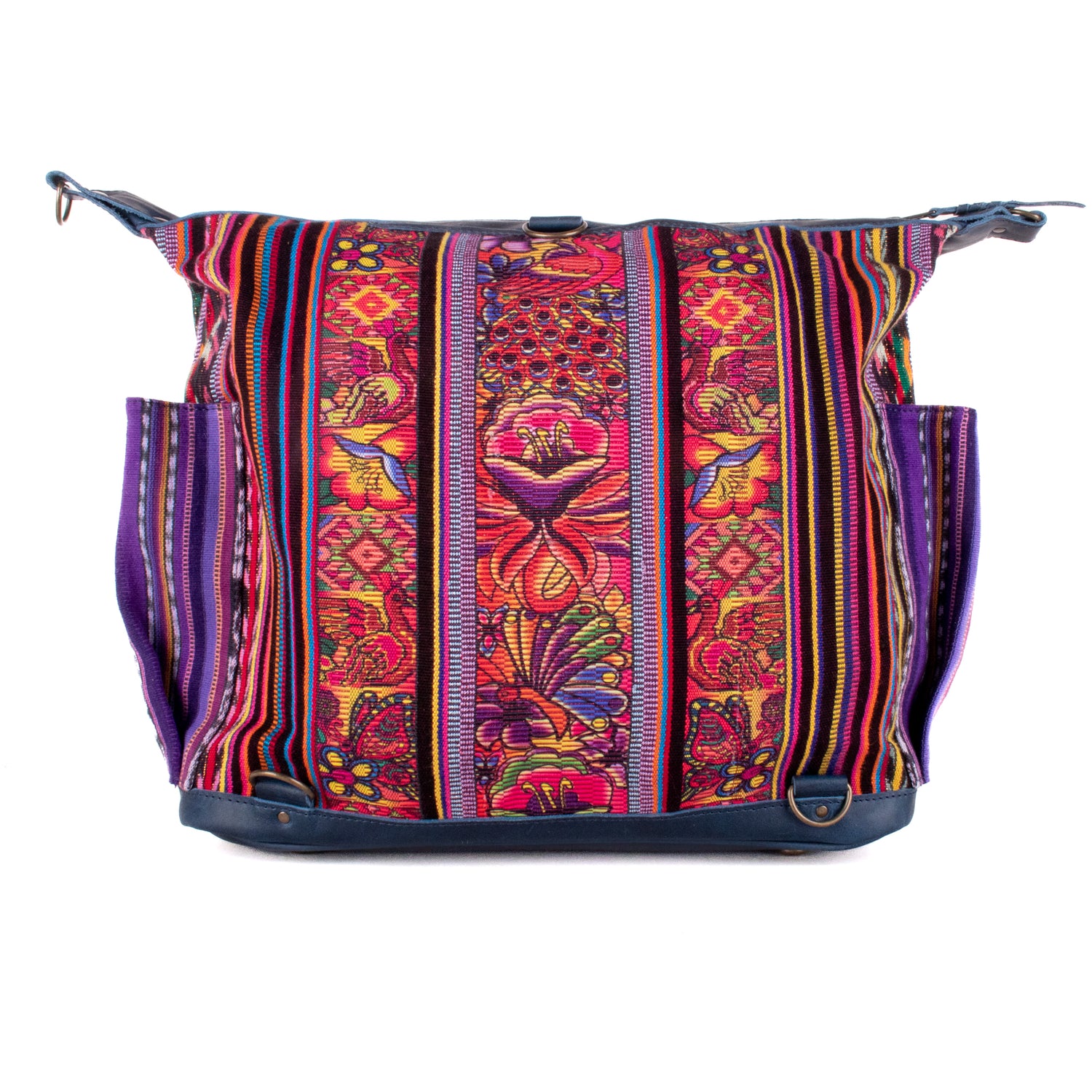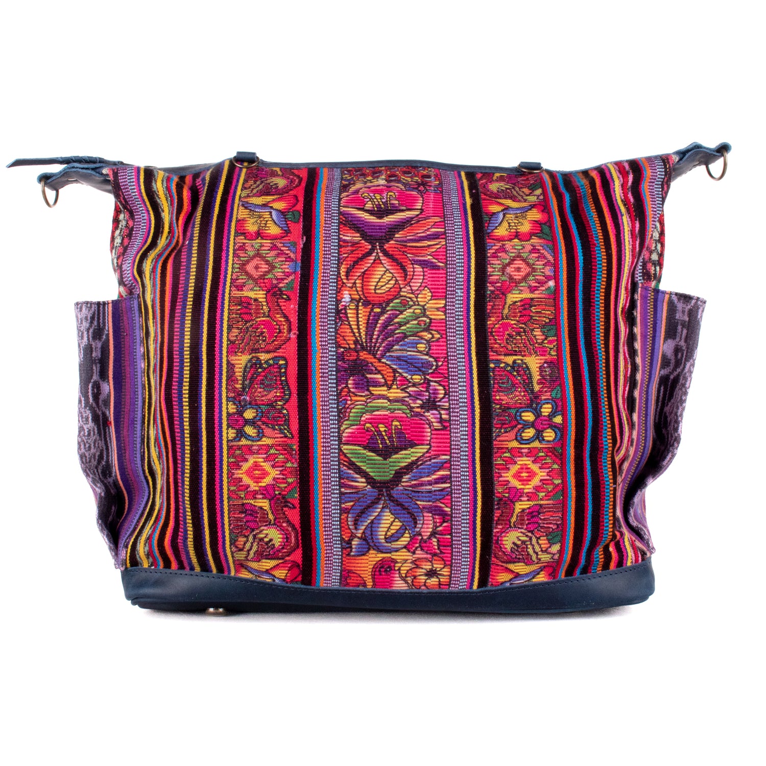 Many unique Maya symbols can be found in our One of a Kind Collection. The fabric we use for this collection is made from upcycled vintage huipiles (traditional attire worn by women in Guatemala) that were handwoven by Artisans up to 10 years ago, and they have lived a full life before being incorporated into your leather bag!