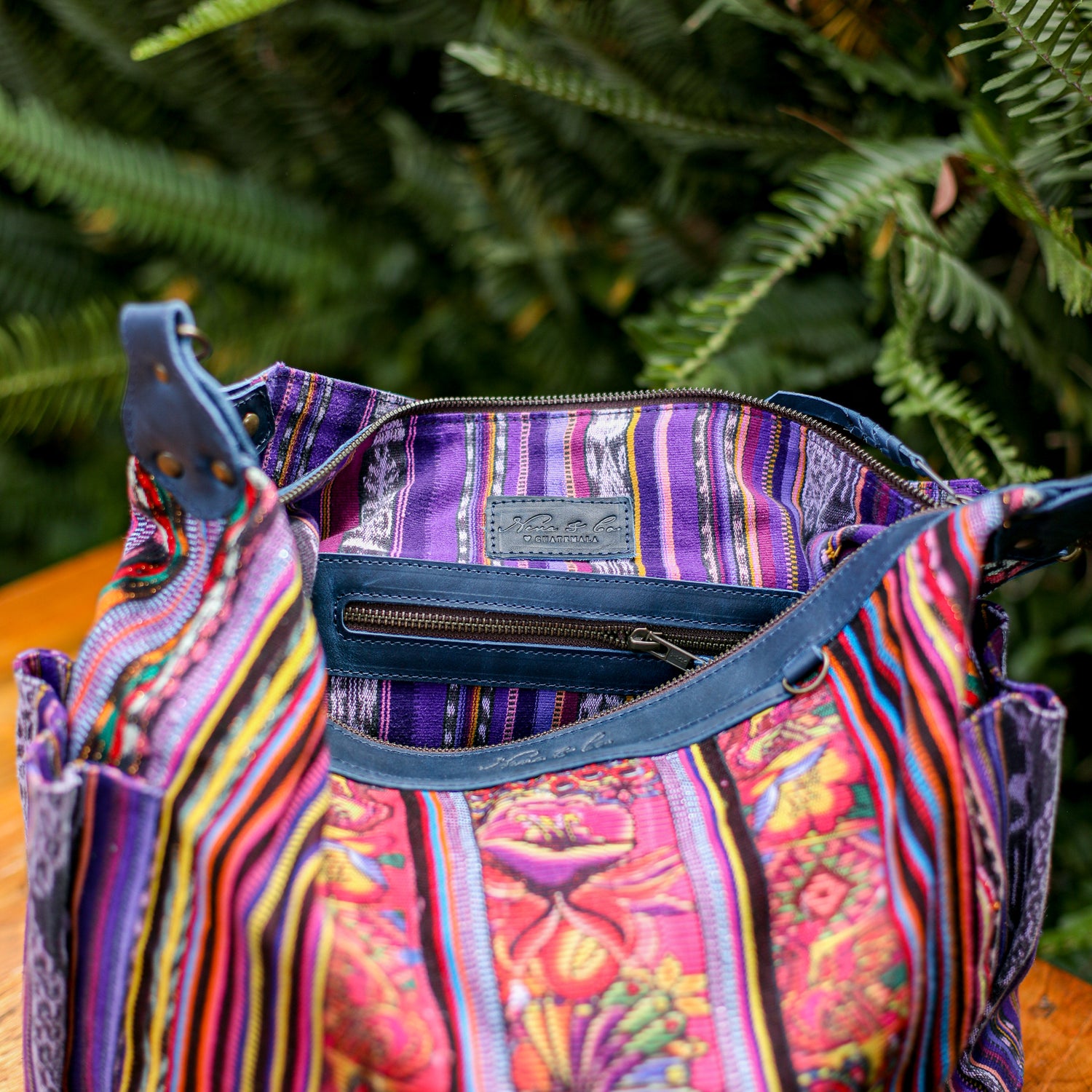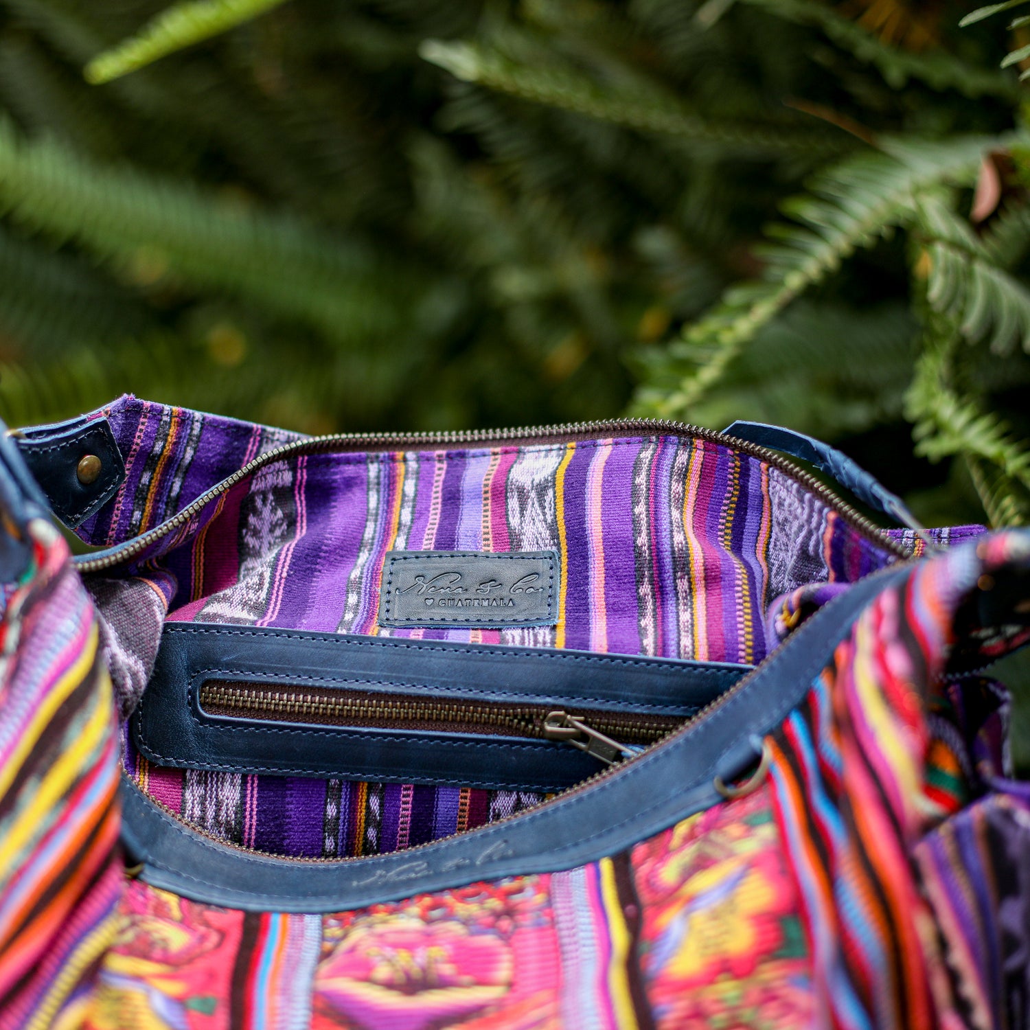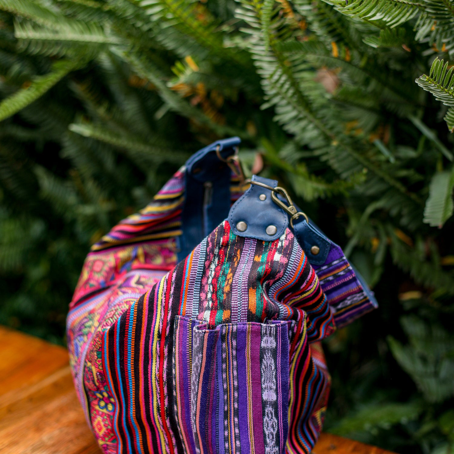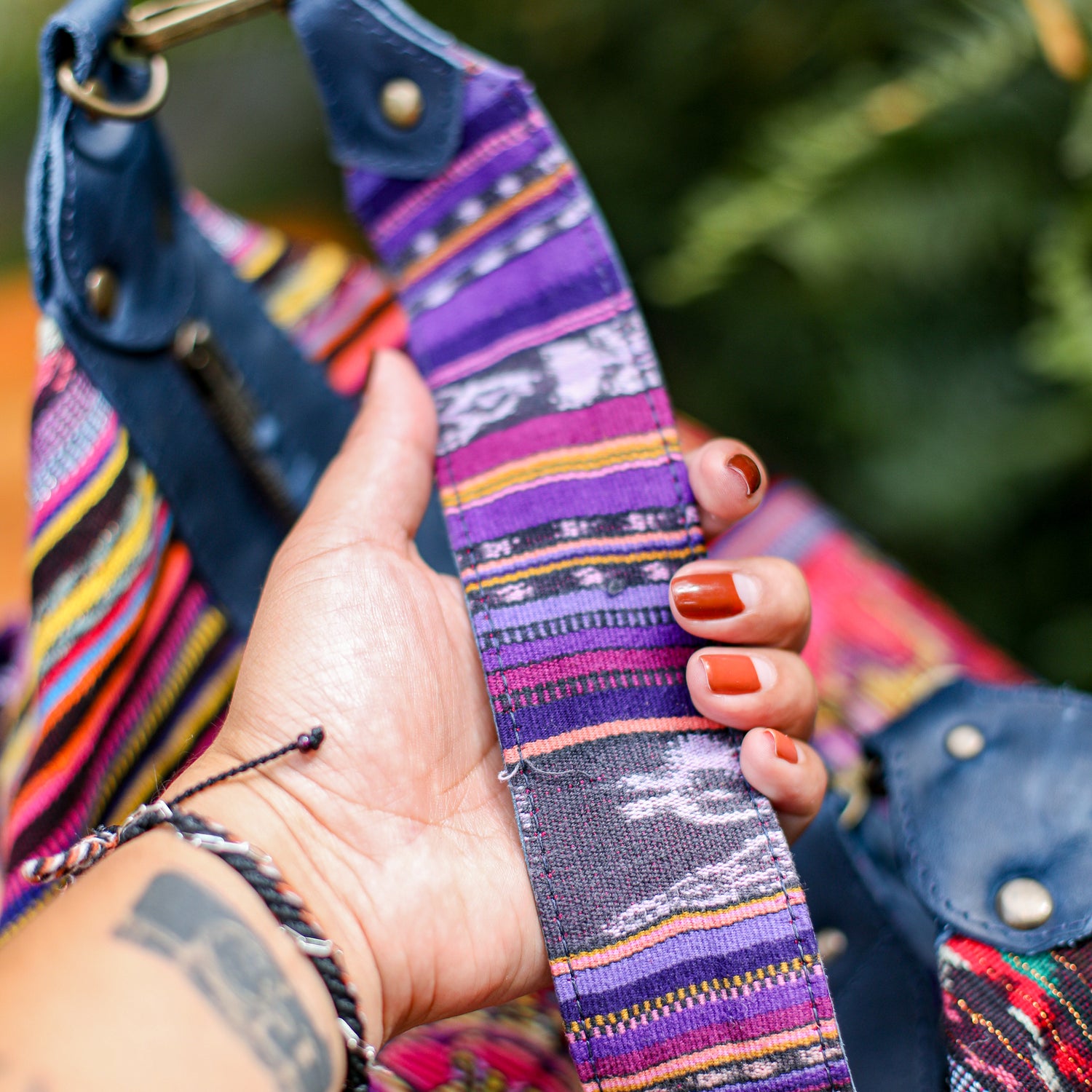 We make every effort to provide our customers with the best-handcrafted and high-quality bags. Please note that all our processes to make the bags are done by hand, from curing, cutting, and treating the leather to using up-cycled huipils. Our bags have natural characteristics and qualities that should not be considered as flaws or as damage because they do not interfere with the functionality of the bag. We up-cycle vintage Maya clothing to make beautiful one-of-a-kind products. Many times you will find snags in the pattern. This is normal. Should your patterned huipil snag you can snip the loose threads with scissors. Do not pull them.