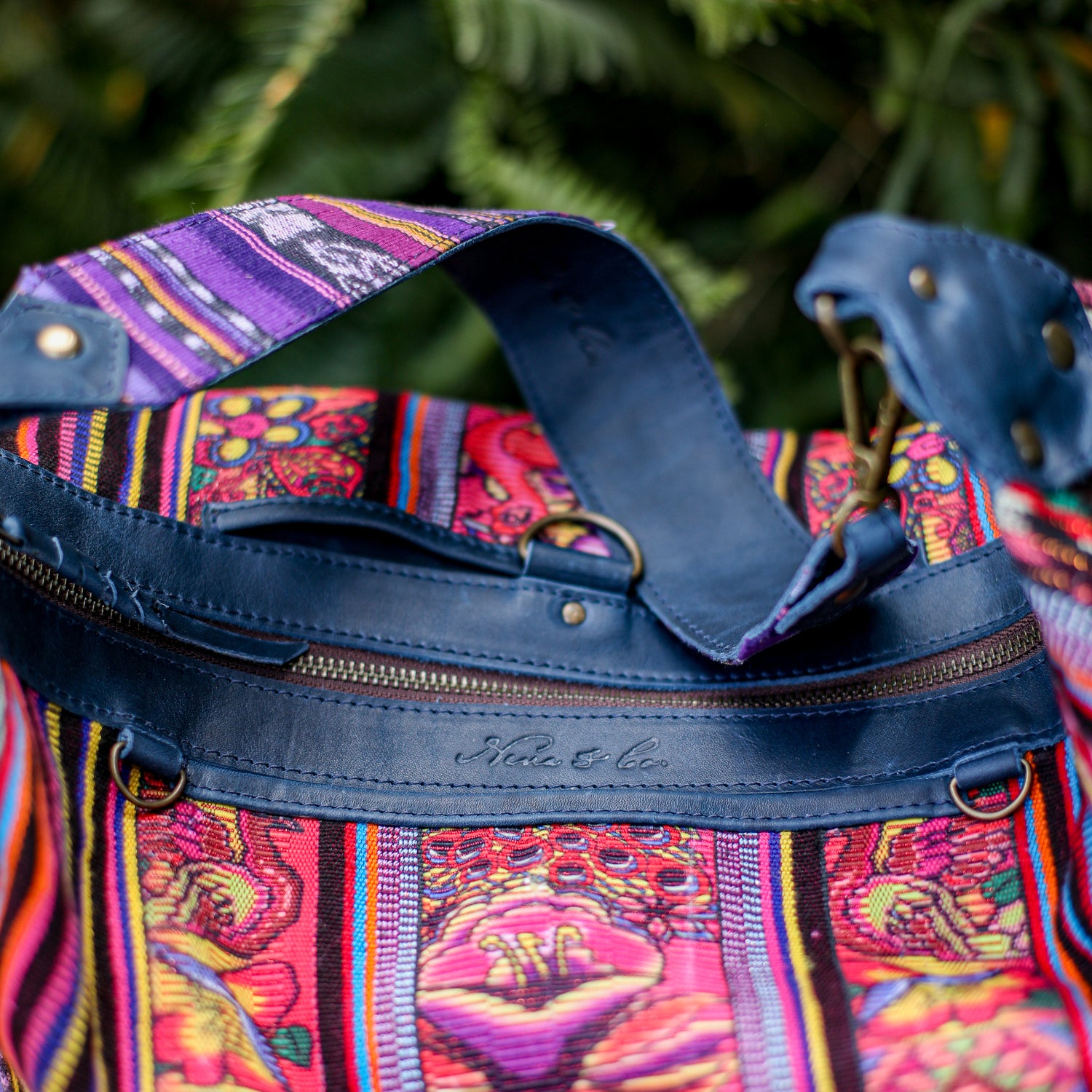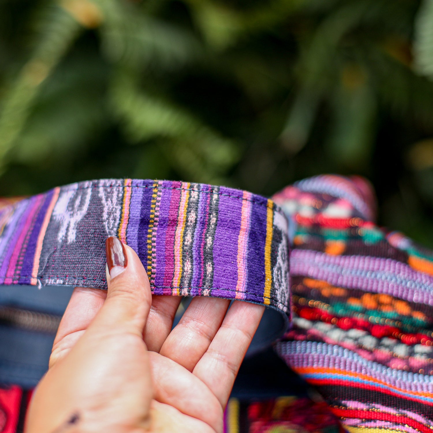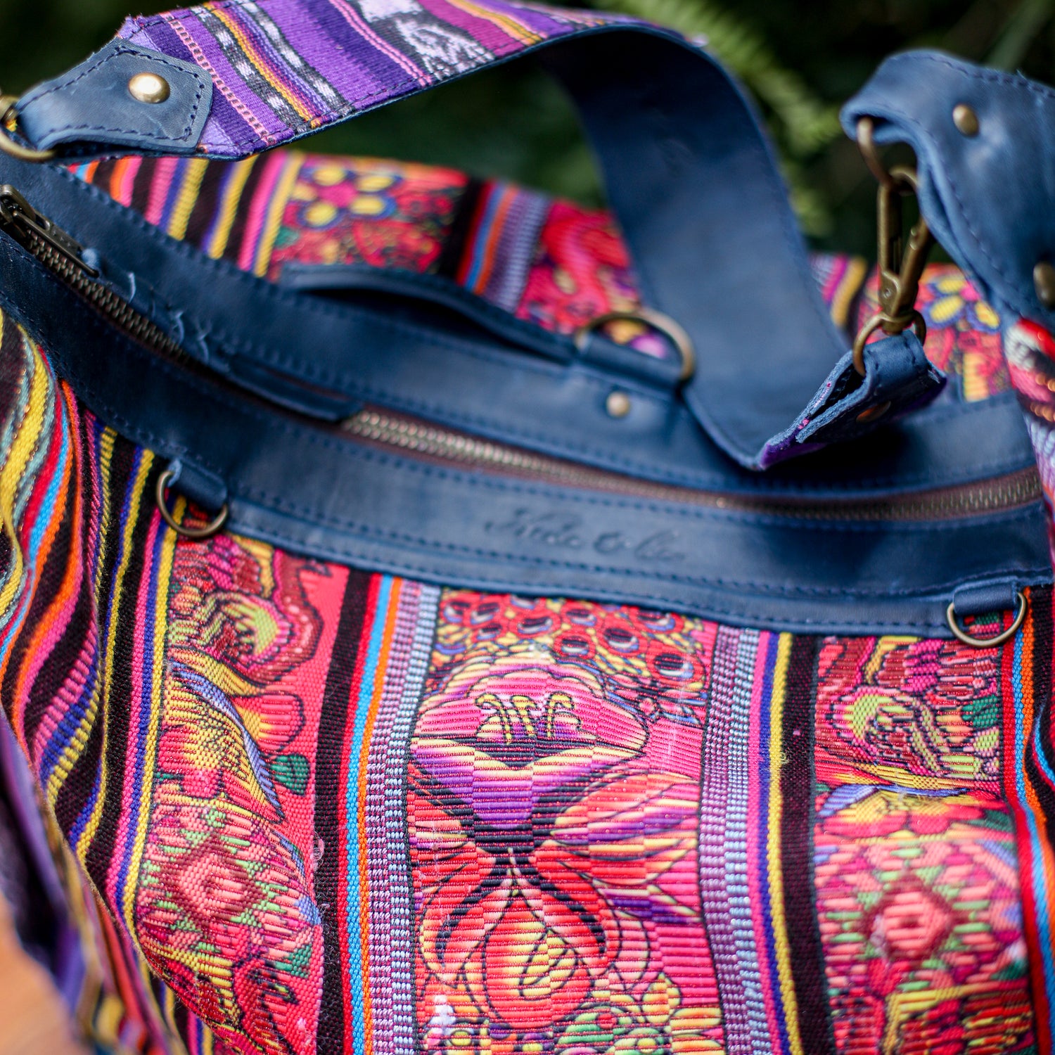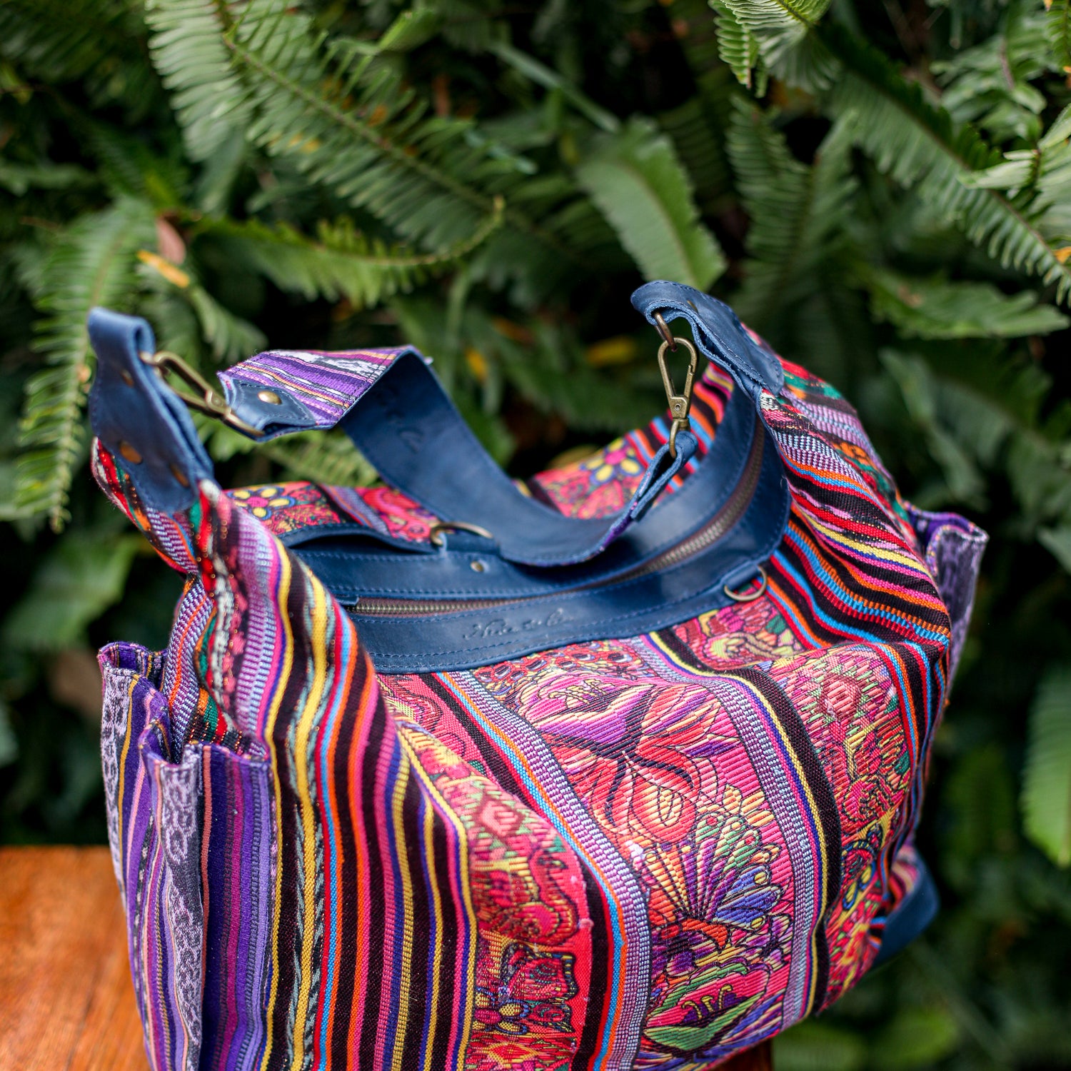 We make every effort to provide our customers with the best-handcrafted and high-quality bags. Please note that all our processes to make the bags are done by hand, from curing, cutting, and treating the leather to using up-cycled huipils. Our bags have natural characteristics and qualities that should not be considered as flaws or as damage because they do not interfere with the functionality of the bag. We up-cycle vintage Maya clothing to make beautiful one-of-a-kind products. Many times you will find snags in the pattern. This is normal. Should your patterned huipil snag you can snip the loose threads with scissors. Do not pull them.