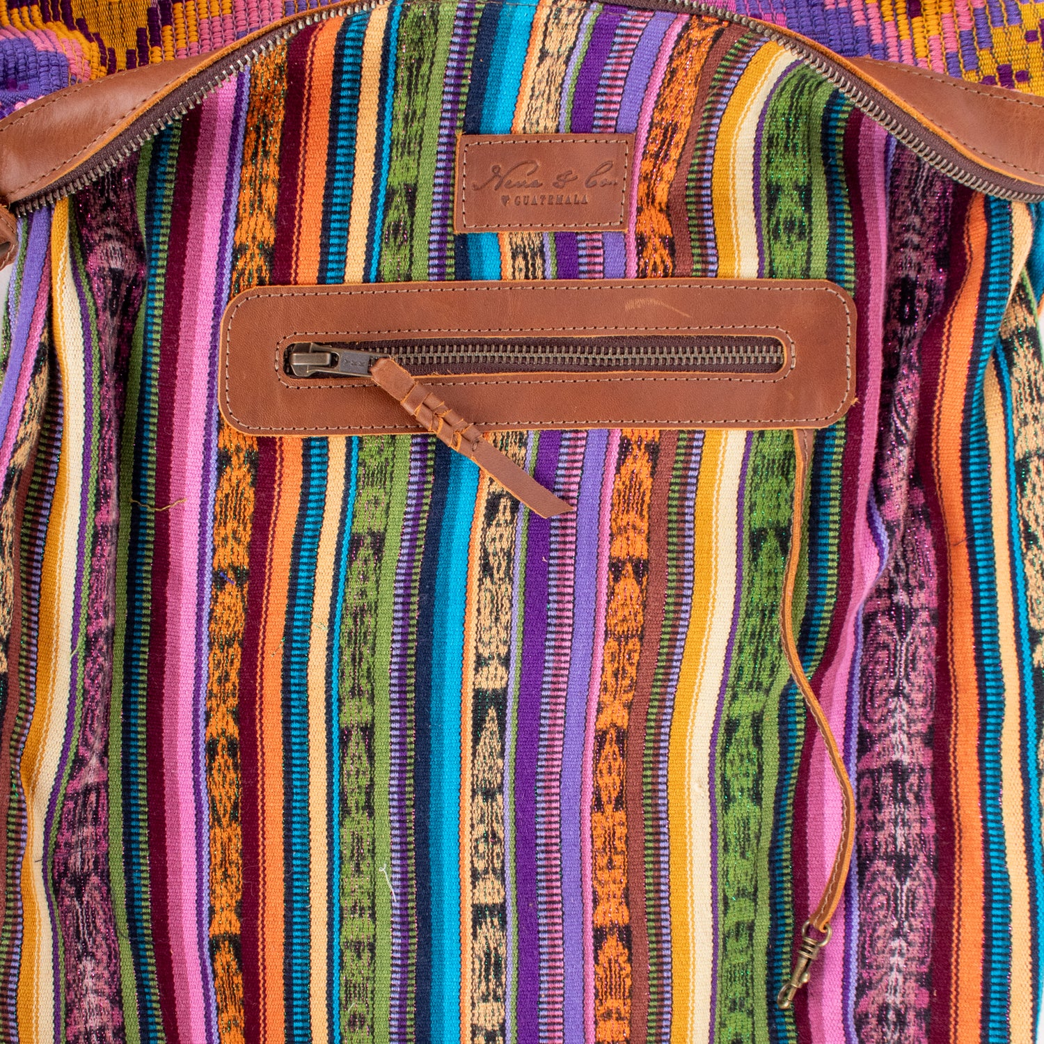 We make every effort to provide our customers with the best-handcrafted and high-quality bags. Please note that all our processes to make the bags are done by hand, from curing, cutting, and treating the leather to using up-cycled huipils. Our bags have natural characteristics and qualities that should not be considered as flaws or as damage because they do not interfere with the functionality of the bag. We up-cycle vintage Maya clothing to make beautiful one-of-a-kind products. Many times you will find snags in the pattern. This is normal. Should your patterned huipil snag you can snip the loose threads with scissors. Do not pull them.