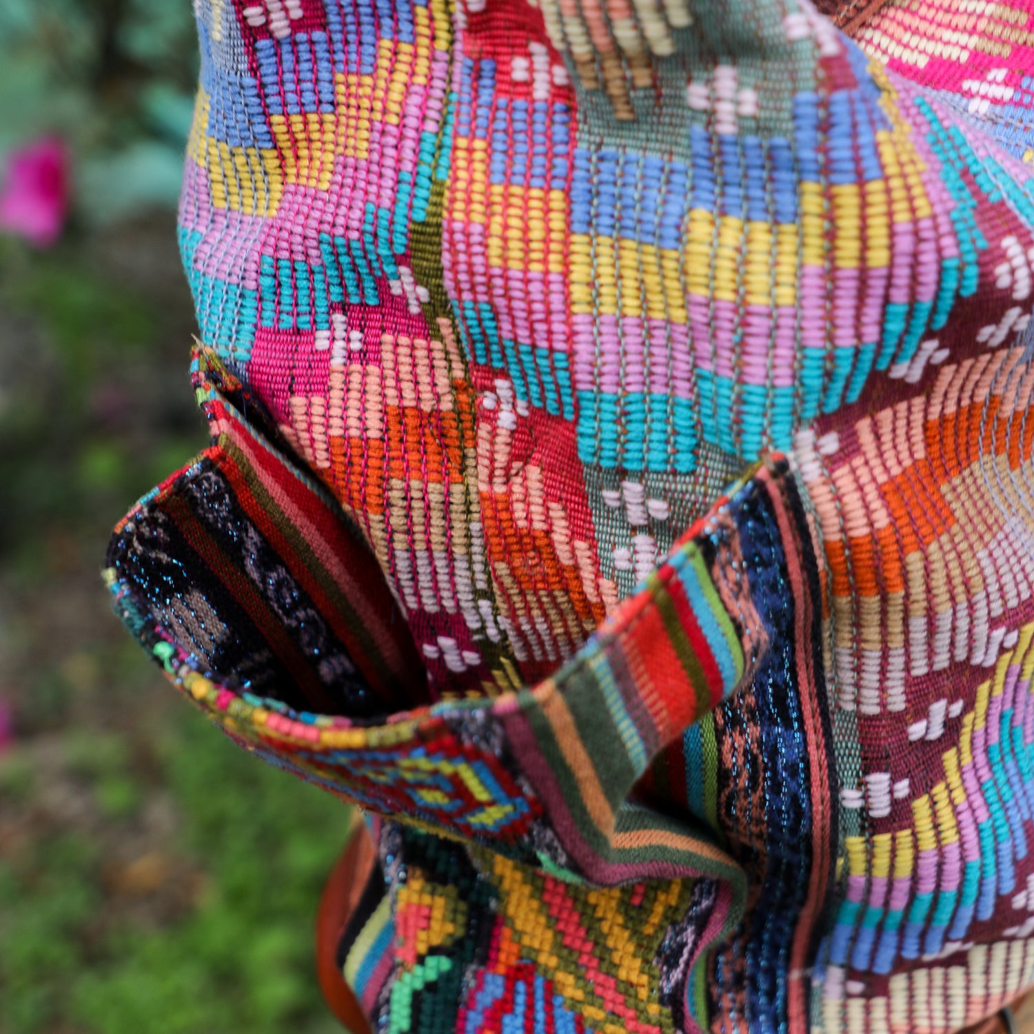We make every effort to provide our customers with the best-handcrafted and high-quality bags. Please note that all our processes to make the bags are done by hand, from curing, cutting, and treating the leather to using up-cycled huipils. Our bags have natural characteristics and qualities that should not be considered as flaws or as damage because they do not interfere with the functionality of the bag. We up-cycle vintage Maya clothing to make beautiful one-of-a-kind products. Many times you will find snags in the pattern. This is normal. Should your patterned huipil snag you can snip the loose threads with scissors. Do not pull them.