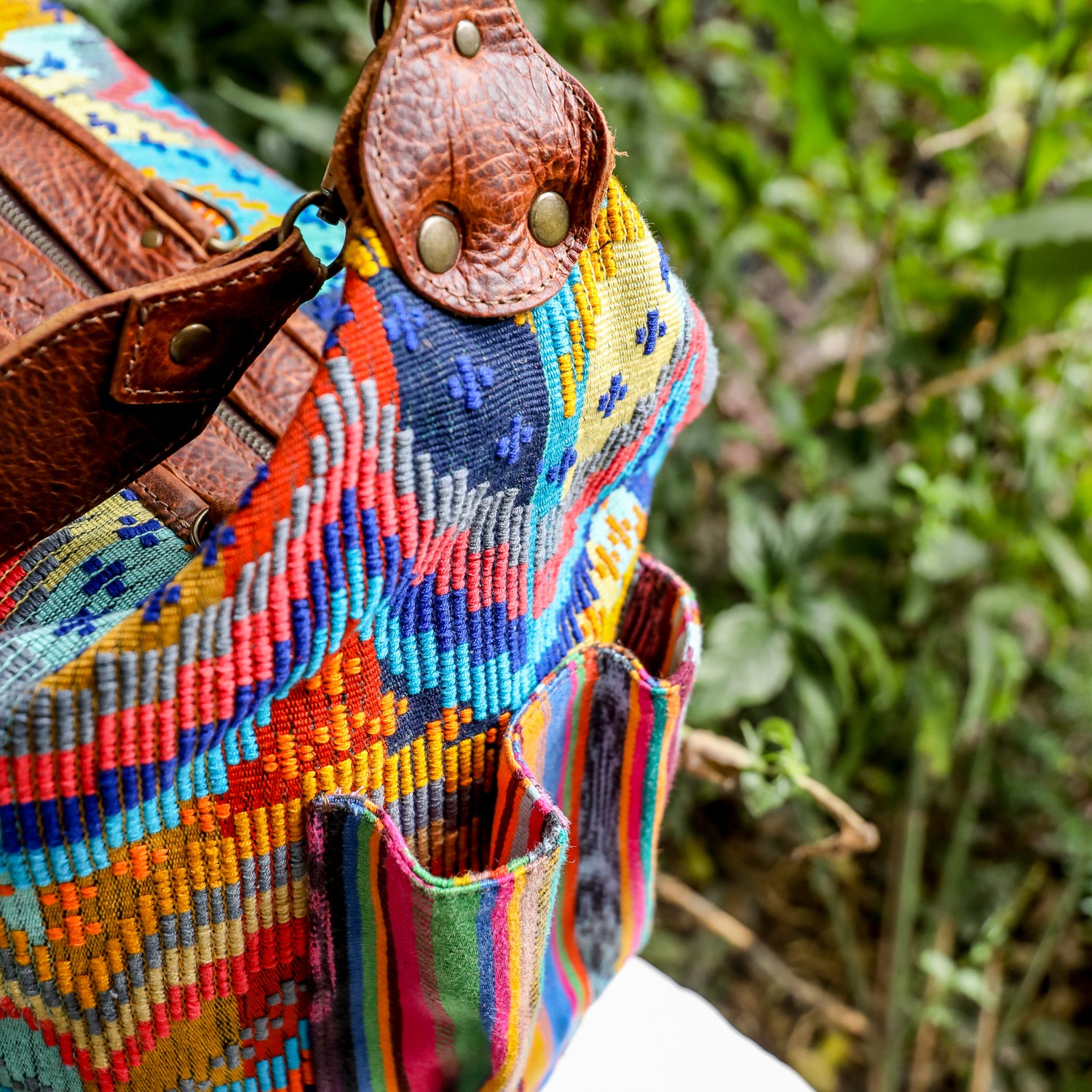 We make every effort to provide our customers with the best-handcrafted and high-quality bags. Please note that all our processes to make the bags are done by hand, from curing, cutting, and treating the leather to using up-cycled huipils. Our bags have natural characteristics and qualities that should not be considered as flaws or as damage because they do not interfere with the functionality of the bag. We up-cycle vintage Maya clothing to make beautiful one-of-a-kind products. Many times you will find snags in the pattern. This is normal. Should your patterned huipil snag you can snip the loose threads with scissors. Do not pull them.