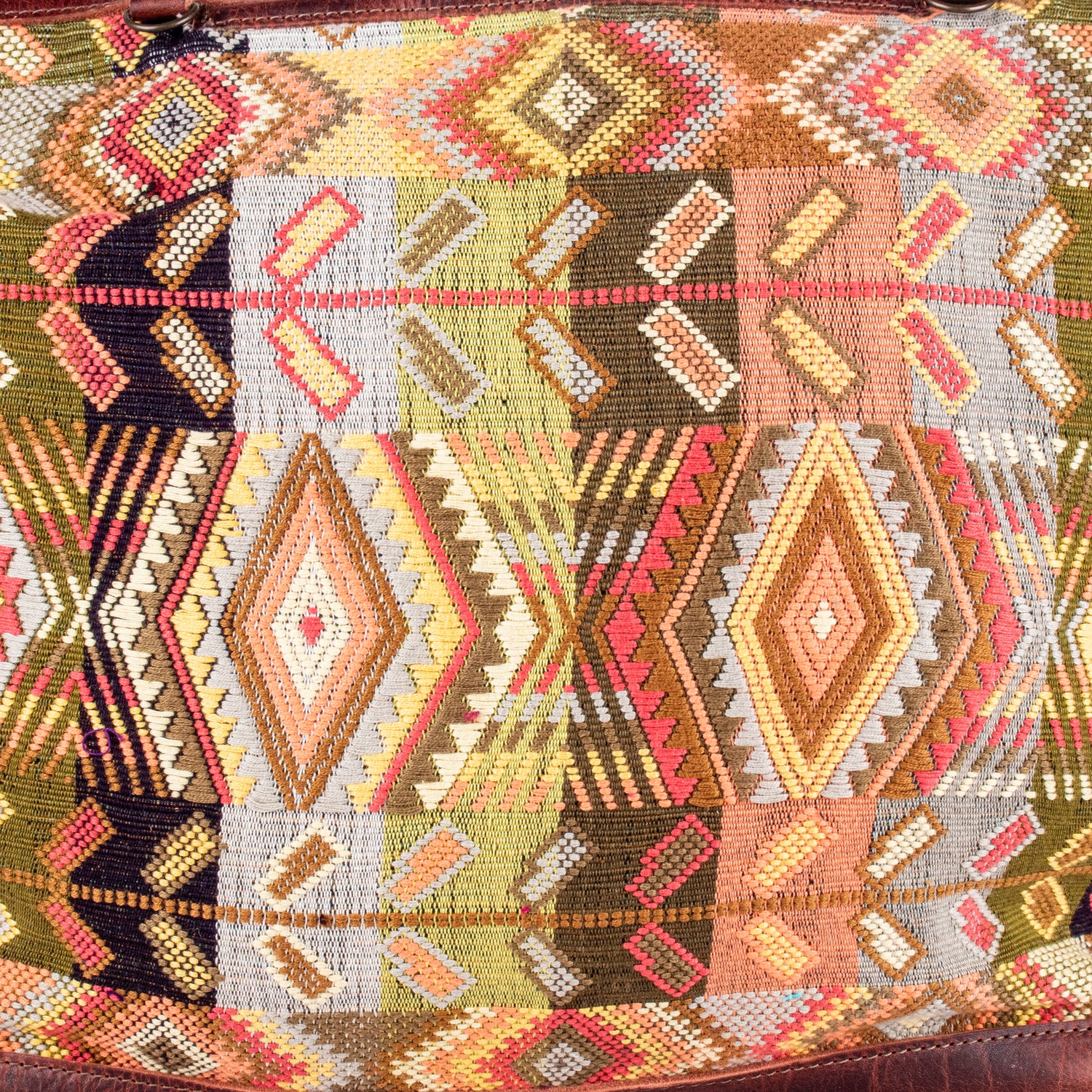 Many unique Maya symbols can be found in our One of a Kind Collection. The fabric we use for this collection is made from upcycled vintage huipiles (traditional attire worn by women in Guatemala) that were handwoven by Artisans up to 10 years ago, and they have lived a full life before being incorporated into your leather bag!