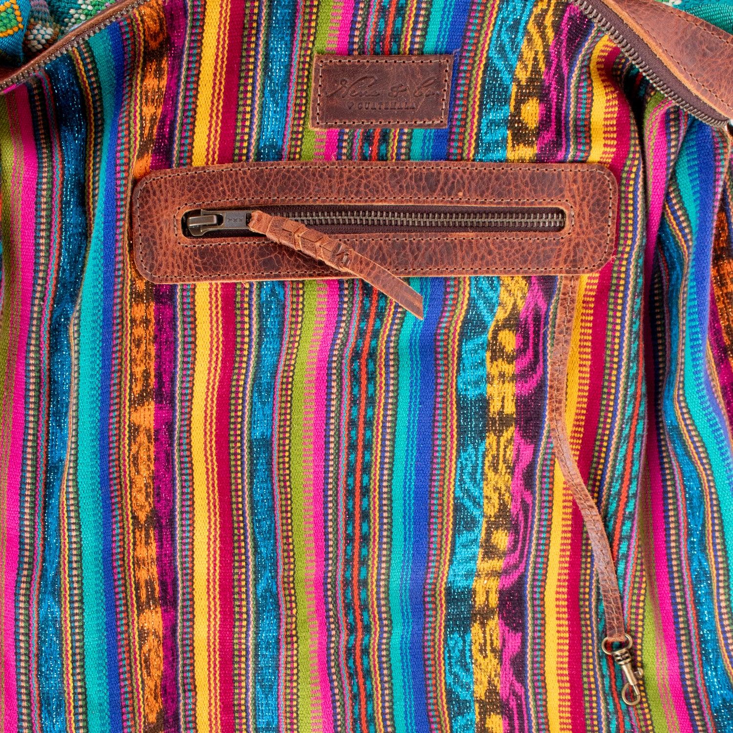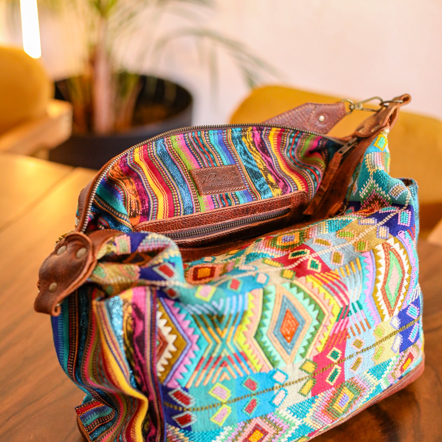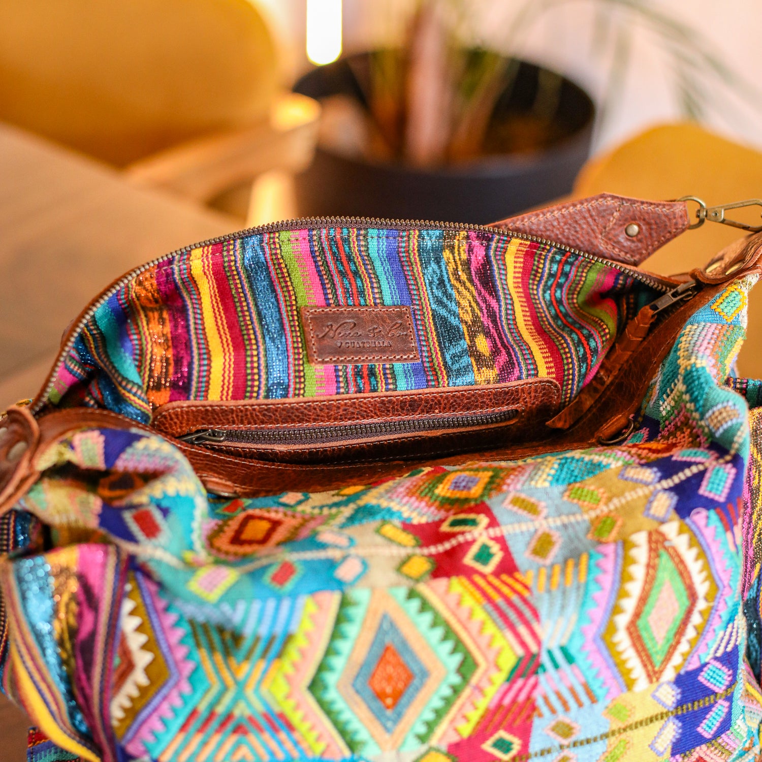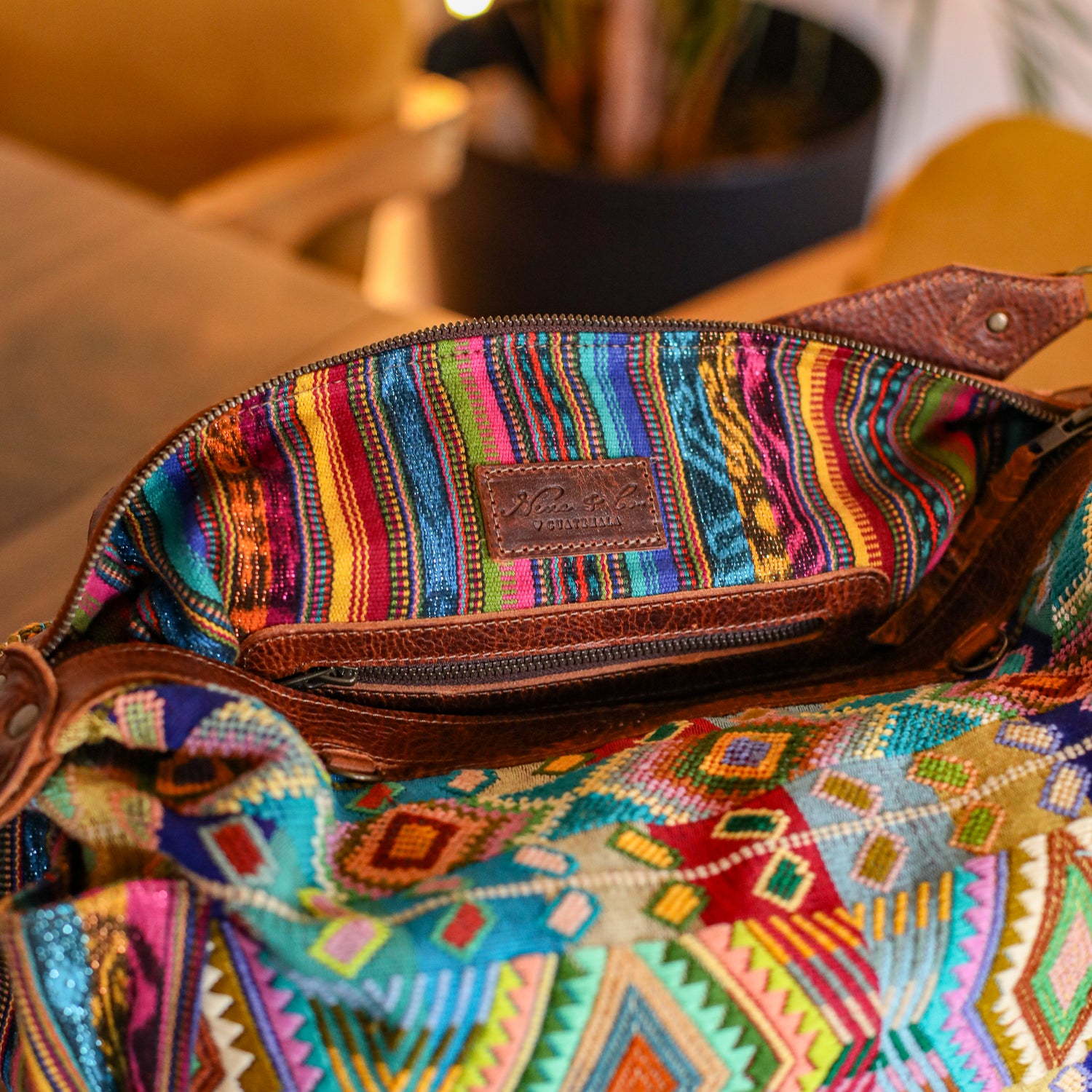 We make every effort to provide our customers with the best-handcrafted and high-quality bags. Please note that all our processes to make the bags are done by hand, from curing, cutting, and treating the leather to using up-cycled huipils. Our bags have natural characteristics and qualities that should not be considered as flaws or as damage because they do not interfere with the functionality of the bag. We up-cycle vintage Maya clothing to make beautiful one-of-a-kind products. Many times you will find snags in the pattern. This is normal. Should your patterned huipil snag you can snip the loose threads with scissors. Do not pull them.