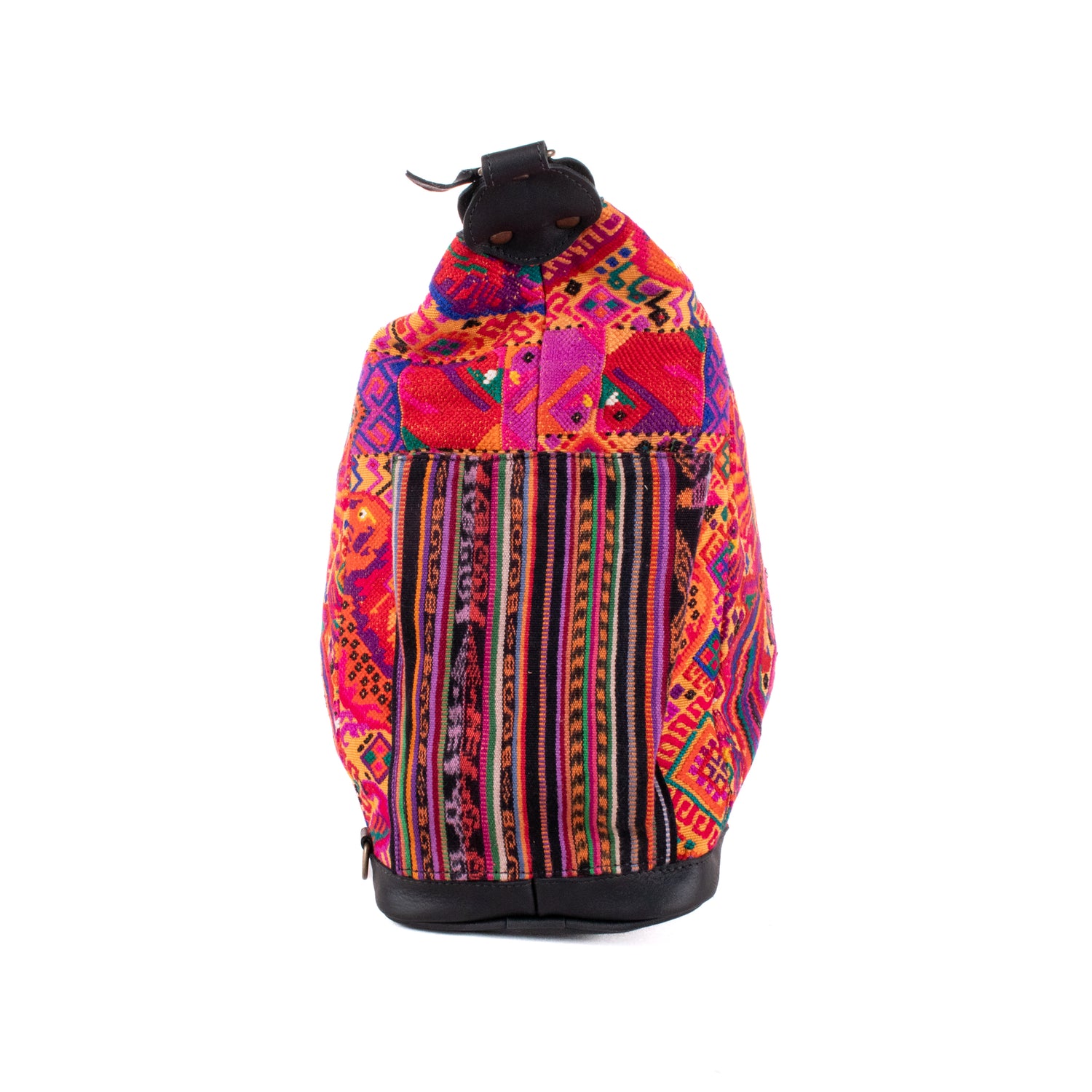 Many unique Maya symbols can be found in our One of a Kind Collection. The fabric we use for this collection is made from upcycled vintage huipiles (traditional attire worn by women in Guatemala) that were handwoven by Artisans up to 10 years ago, and they have lived a full life before being incorporated into your leather bag!