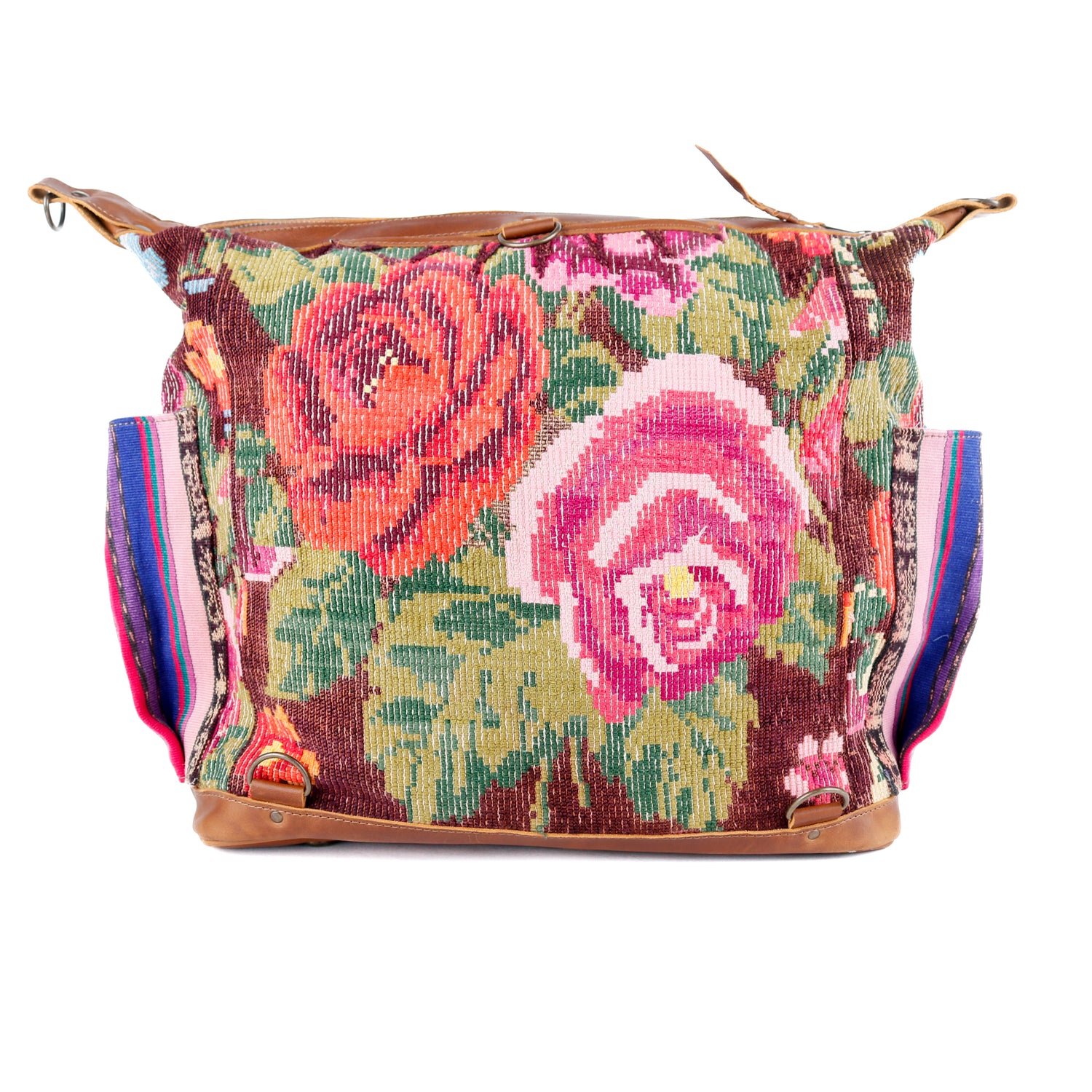 Many unique Maya symbols can be found in our One of a Kind Collection. The fabric we use for this collection is made from upcycled vintage huipiles (traditional attire worn by women in Guatemala) that were handwoven by Artisans up to 10 years ago, and they have lived a full life before being incorporated into your leather bag!