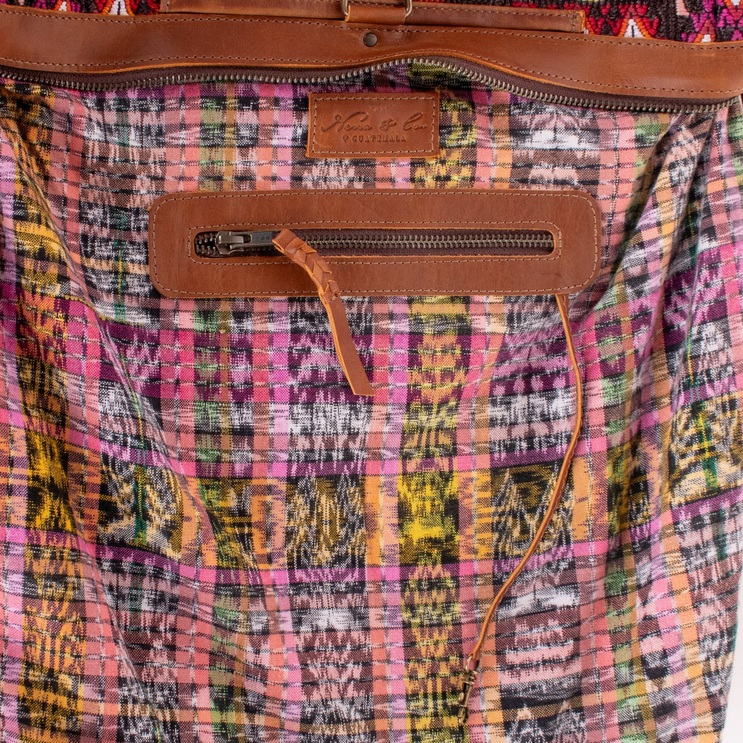 We make every effort to provide our customers with the best-handcrafted and high-quality bags. Please note that all our processes to make the bags are done by hand, from curing, cutting, and treating the leather to using up-cycled huipils. Our bags have natural characteristics and qualities that should not be considered as flaws or as damage because they do not interfere with the functionality of the bag. We up-cycle vintage Maya clothing to make beautiful one-of-a-kind products. Many times you will find snags in the pattern. This is normal. Should your patterned huipil snag you can snip the loose threads with scissors. Do not pull them.