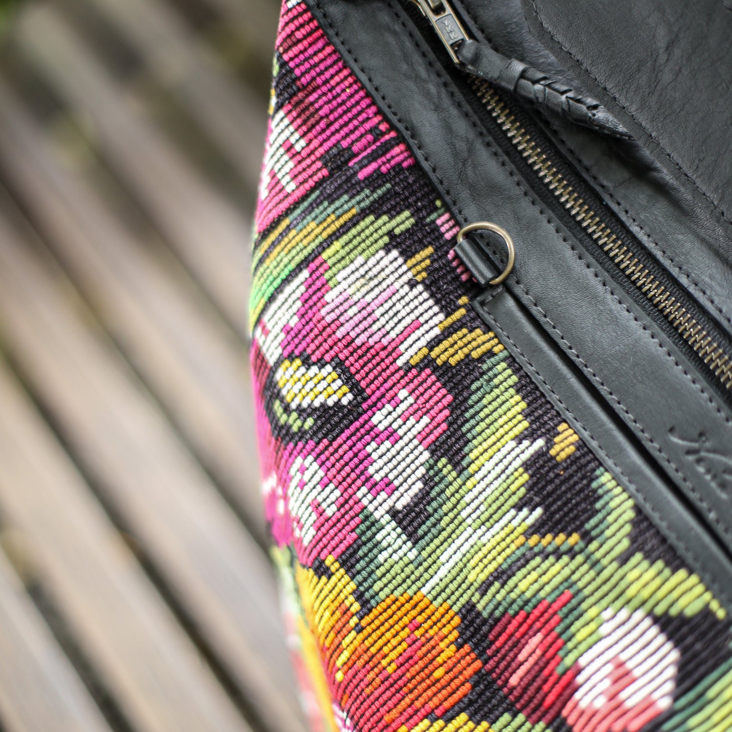 We make every effort to provide our customers with the best-handcrafted and high-quality bags. Please note that all our processes to make the bags are done by hand, from curing, cutting, and treating the leather to using up-cycled huipils. Our bags have natural characteristics and qualities that should not be considered as flaws or as damage because they do not interfere with the functionality of the bag. We up-cycle vintage Maya clothing to make beautiful one-of-a-kind products. Many times you will find snags in the pattern. This is normal. Should your patterned huipil snag you can snip the loose threads with scissors. Do not pull them.