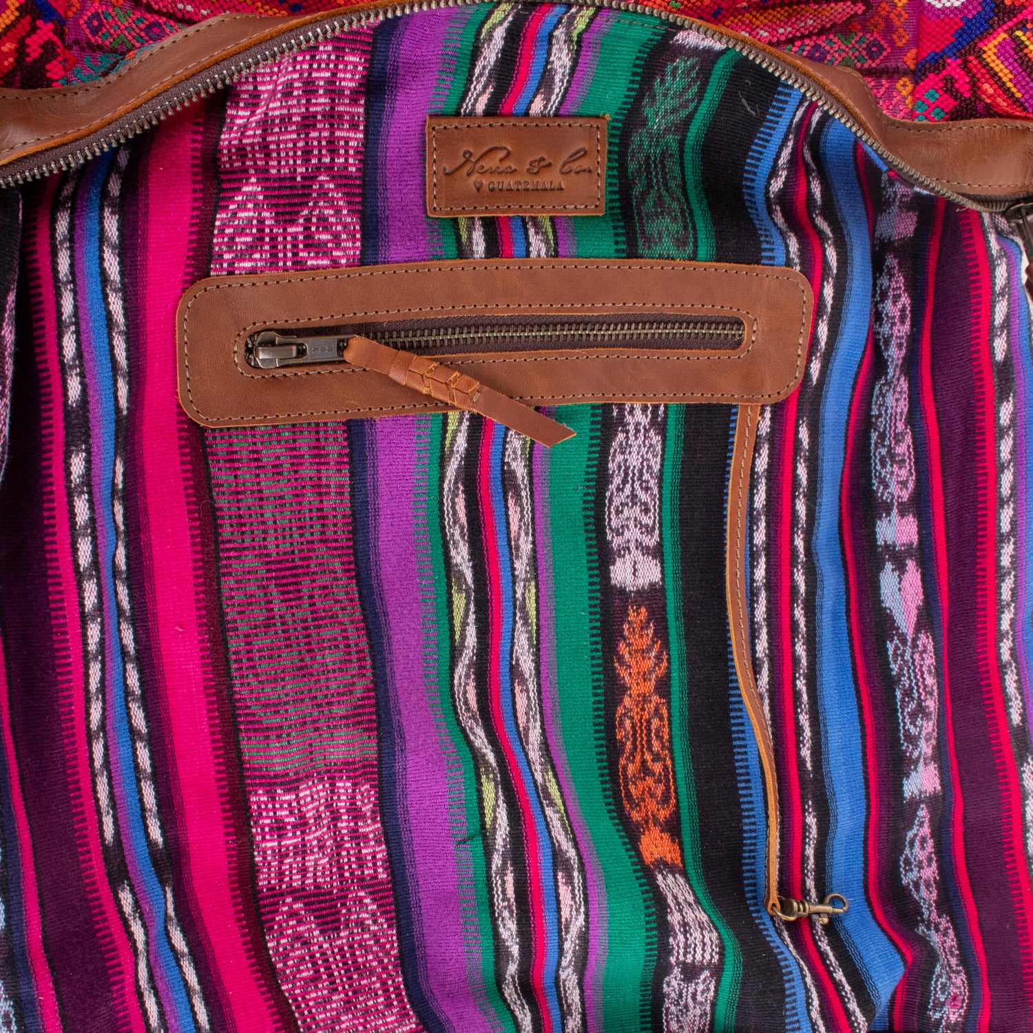We make every effort to provide our customers with the best-handcrafted and high-quality bags. Please note that all our processes to make the bags are done by hand, from curing, cutting, and treating the leather to using up-cycled huipils. Our bags have natural characteristics and qualities that should not be considered as flaws or as damage because they do not interfere with the functionality of the bag. We up-cycle vintage Maya clothing to make beautiful one-of-a-kind products. Many times you will find snags in the pattern. This is normal. Should your patterned huipil snag you can snip the loose threads with scissors. Do not pull them.