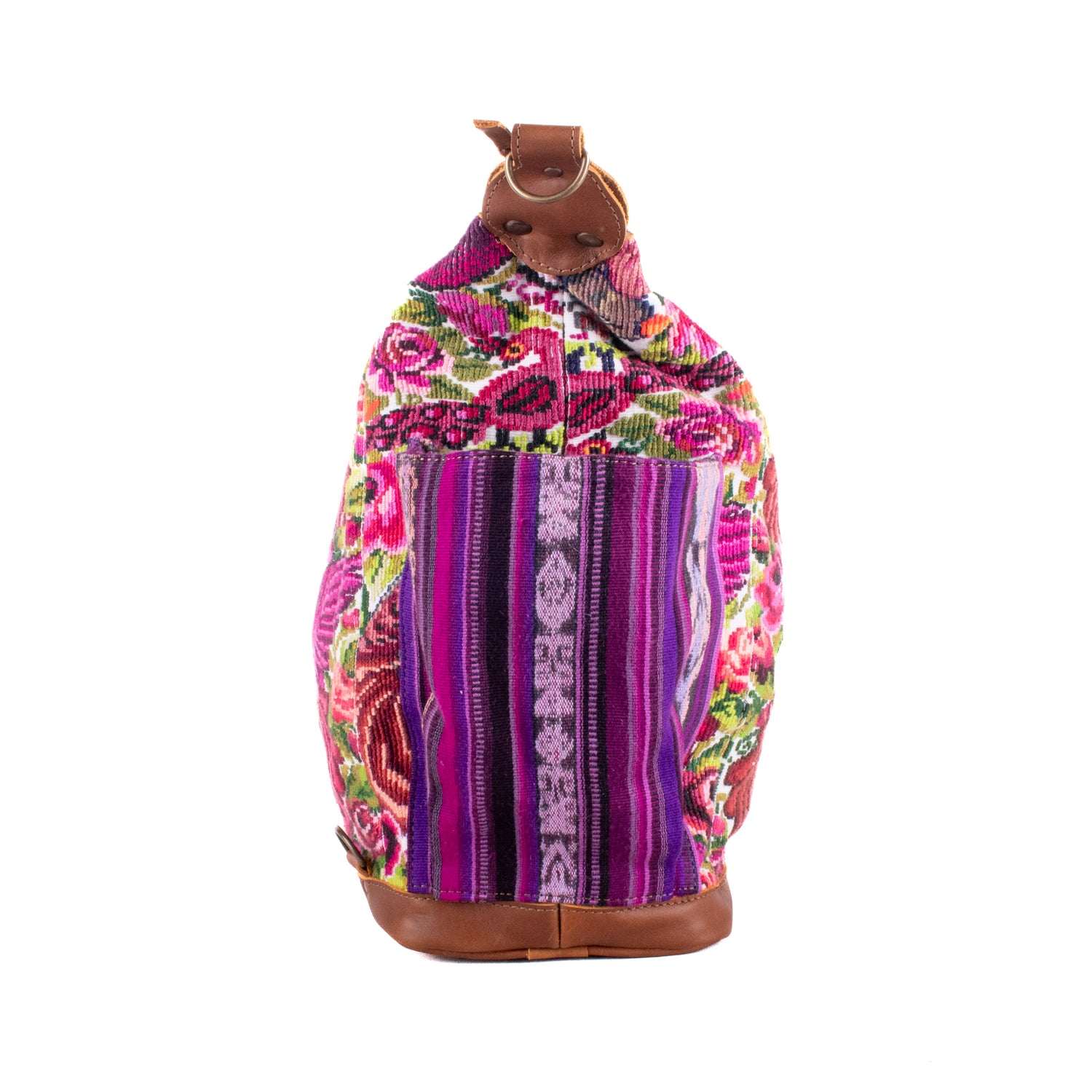 Many unique Maya symbols can be found in our One of a Kind Collection. The fabric we use for this collection is made from upcycled vintage huipiles (traditional attire worn by women in Guatemala) that were handwoven by Artisans up to 10 years ago, and they have lived a full life before being incorporated into your leather bag!