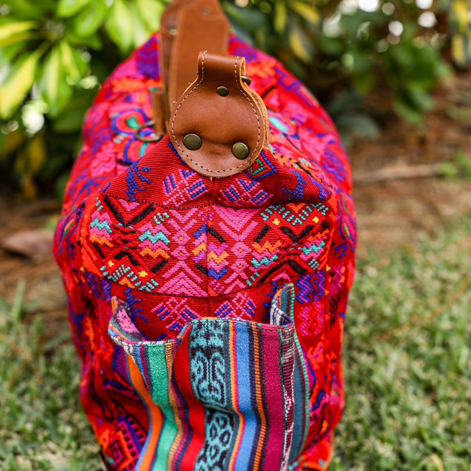 We make every effort to provide our customers with the best-handcrafted and high-quality bags. Please note that all our processes to make the bags are done by hand, from curing, cutting, and treating the leather to using up-cycled huipils. Our bags have natural characteristics and qualities that should not be considered as flaws or as damage because they do not interfere with the functionality of the bag. We up-cycle vintage Maya clothing to make beautiful one-of-a-kind products. Many times you will find snags in the pattern. This is normal. Should your patterned huipil snag you can snip the loose threads with scissors. Do not pull them.