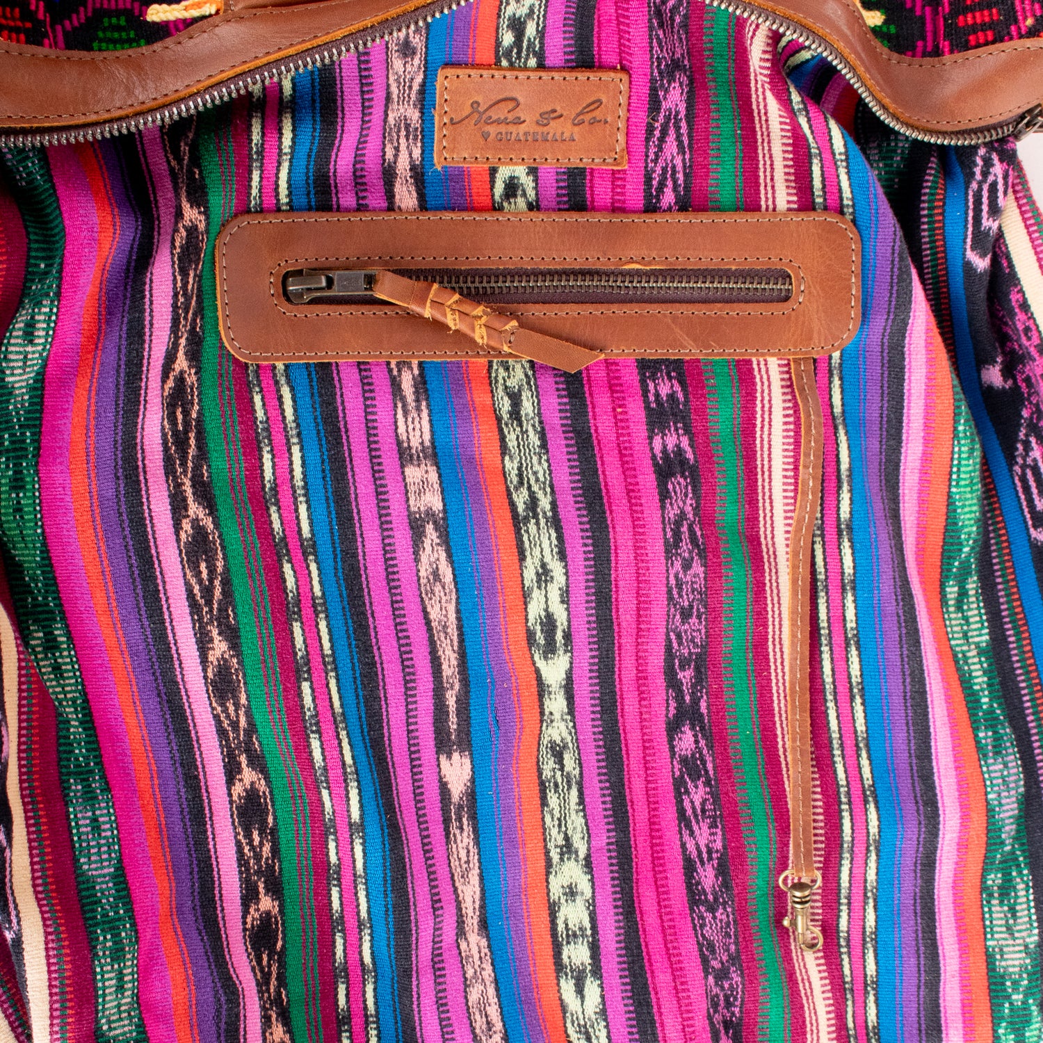 We make every effort to provide our customers with the best-handcrafted and high-quality bags. Please note that all our processes to make the bags are done by hand, from curing, cutting, and treating the leather to using up-cycled huipils. Our bags have natural characteristics and qualities that should not be considered as flaws or as damage because they do not interfere with the functionality of the bag. We up-cycle vintage Maya clothing to make beautiful one-of-a-kind products. Many times you will find snags in the pattern. This is normal. Should your patterned huipil snag you can snip the loose threads with scissors. Do not pull them.