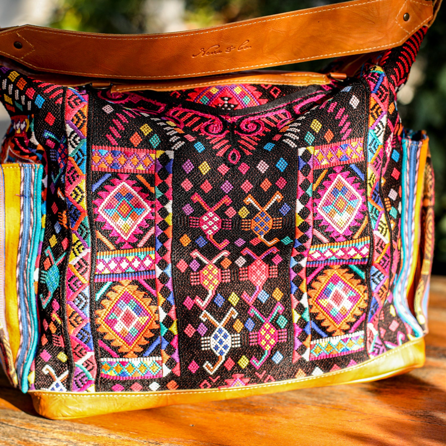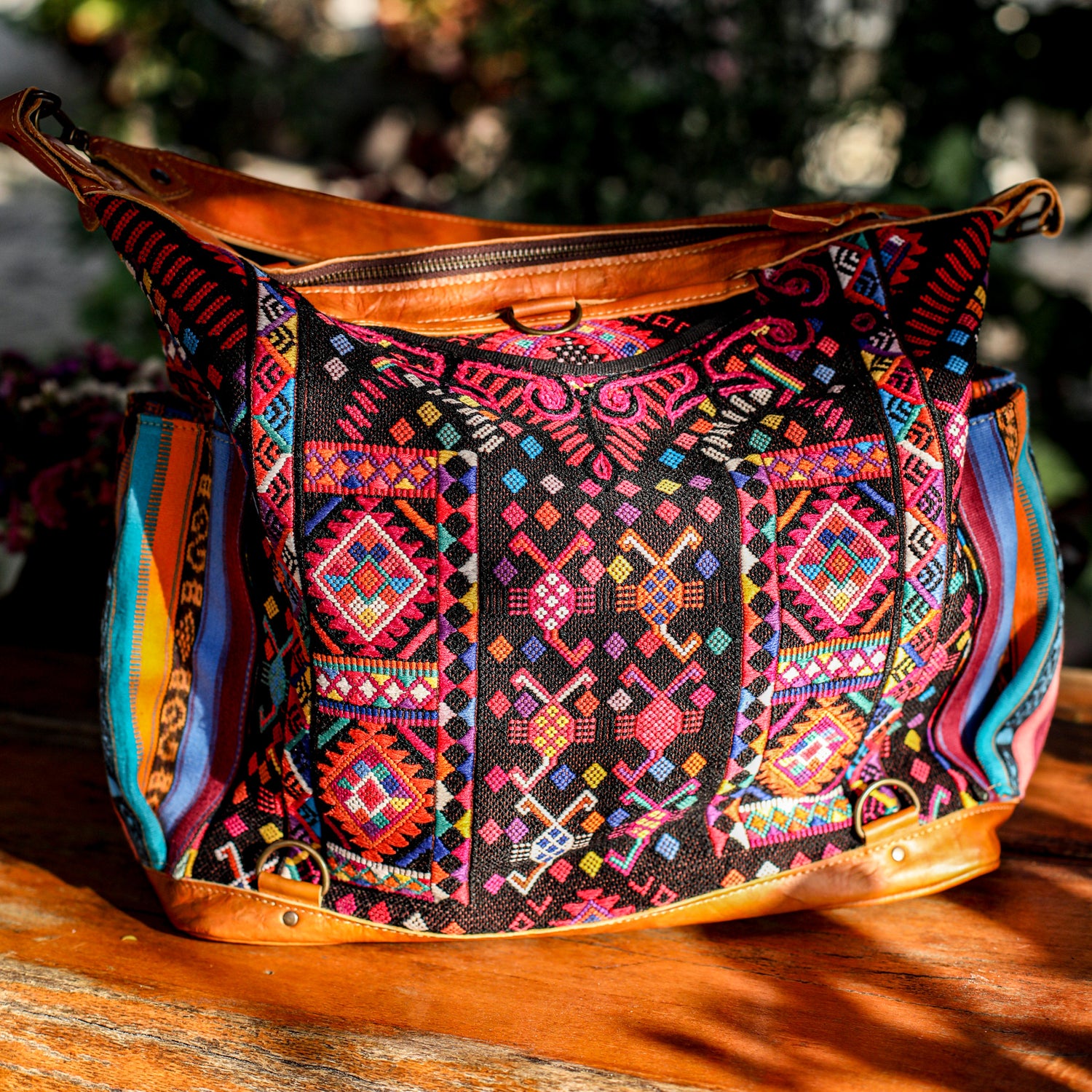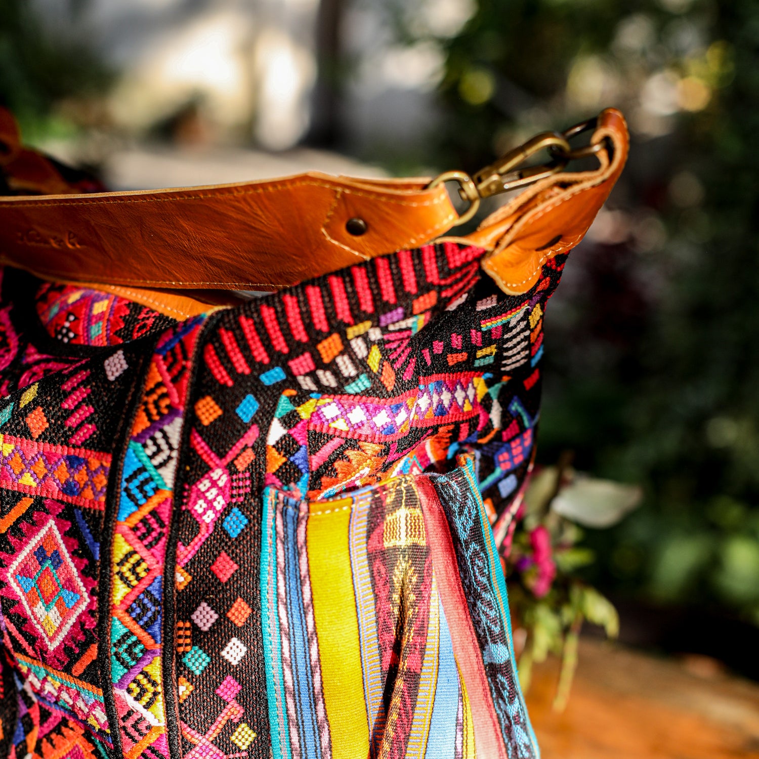 We make every effort to provide our customers with the best-handcrafted and high-quality bags. Please note that all our processes to make the bags are done by hand, from curing, cutting, and treating the leather to using up-cycled huipils. Our bags have natural characteristics and qualities that should not be considered as flaws or as damage because they do not interfere with the functionality of the bag. We up-cycle vintage Maya clothing to make beautiful one-of-a-kind products. Many times you will find snags in the pattern. This is normal. Should your patterned huipil snag you can snip the loose threads with scissors. Do not pull them.