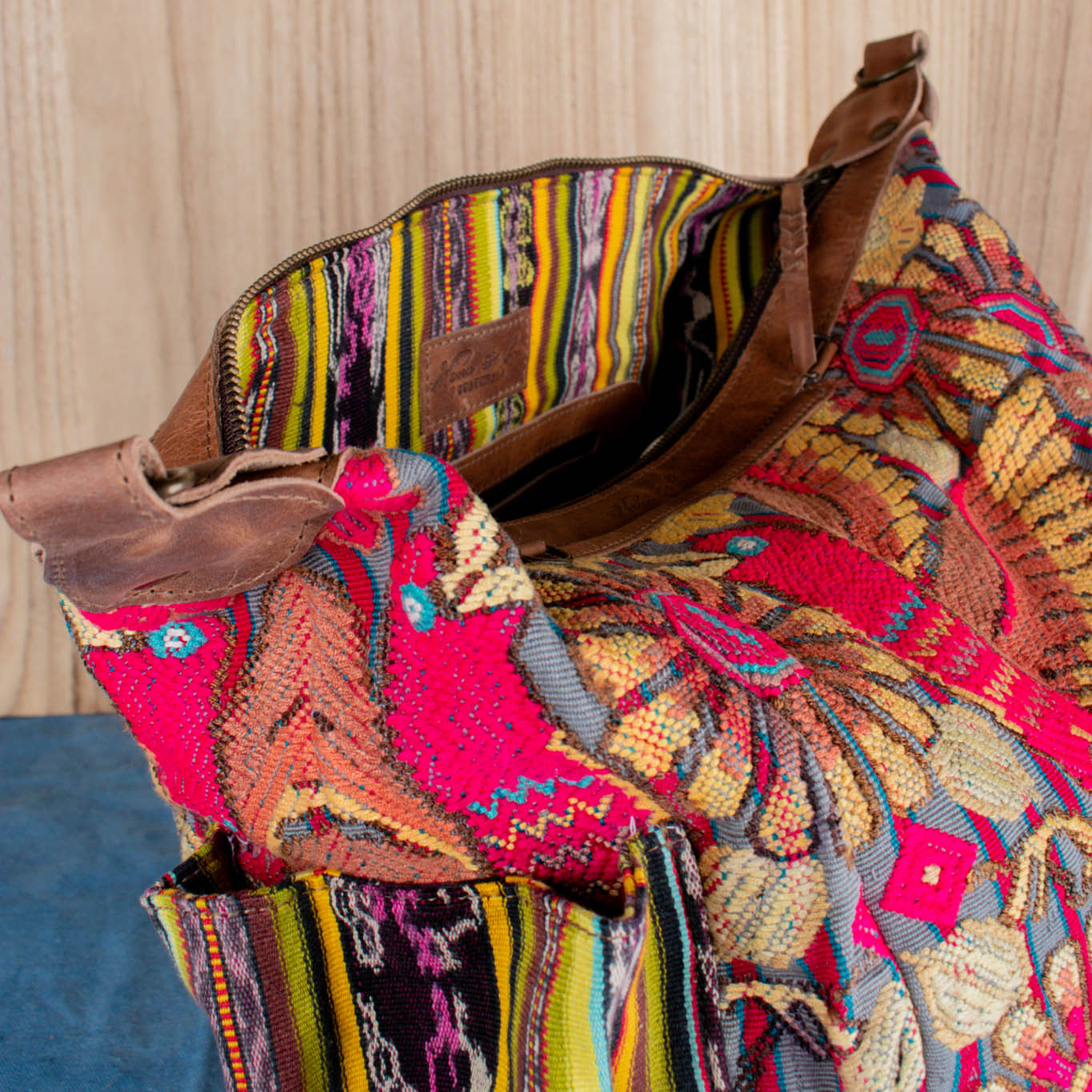 We make every effort to provide our customers with the best-handcrafted and high-quality bags. Please note that all our processes to make the bags are done by hand, from curing, cutting, and treating the leather to using up-cycled huipils. Our bags have natural characteristics and qualities that should not be considered as flaws or as damage because they do not interfere with the functionality of the bag. We up-cycle vintage Maya clothing to make beautiful one-of-a-kind products. Many times you will find snags in the pattern. This is normal. Should your patterned huipil snag you can snip the loose threads with scissors. Do not pull them.