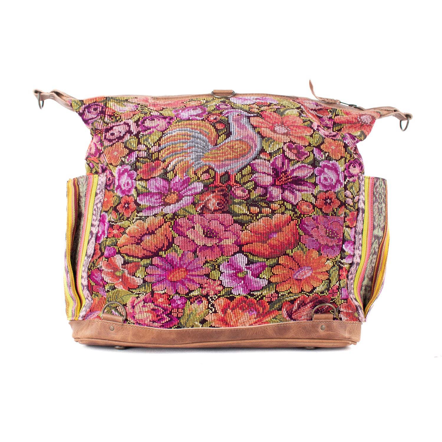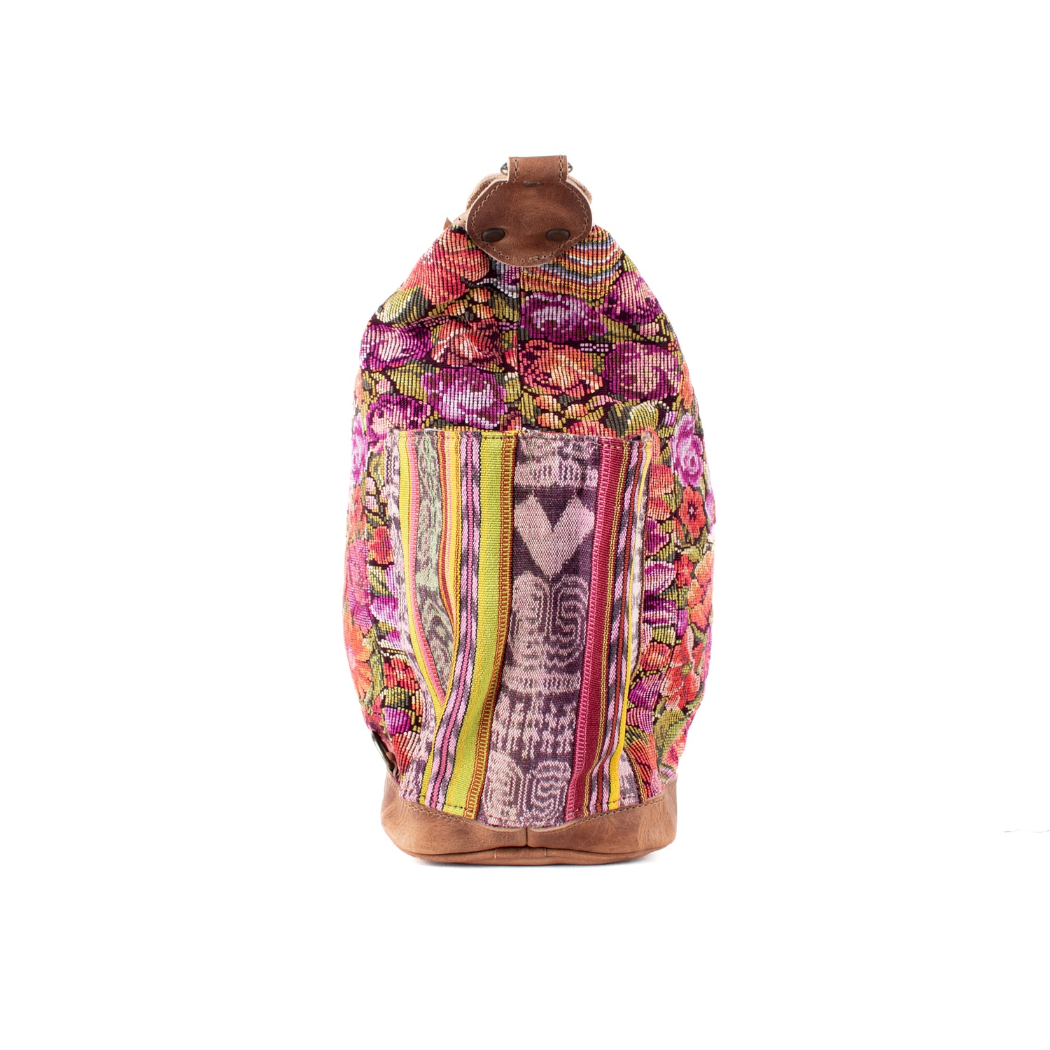 Many unique Maya symbols can be found in our One of a Kind Collection. The fabric we use for this collection is made from upcycled vintage huipiles (traditional attire worn by women in Guatemala) that were handwoven by Artisans up to 10 years ago, and they have lived a full life before being incorporated into your leather bag!