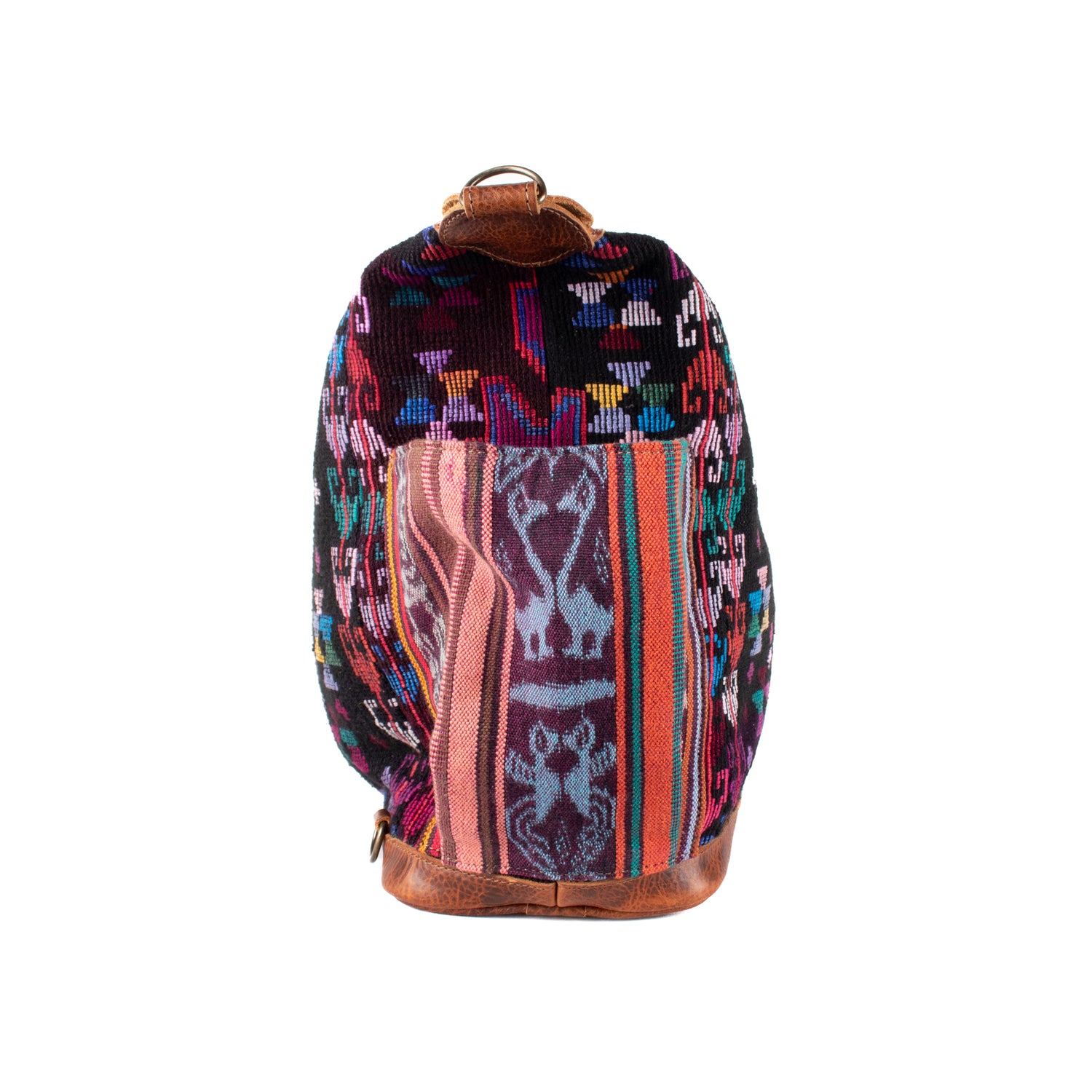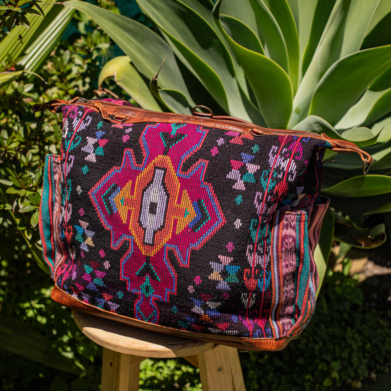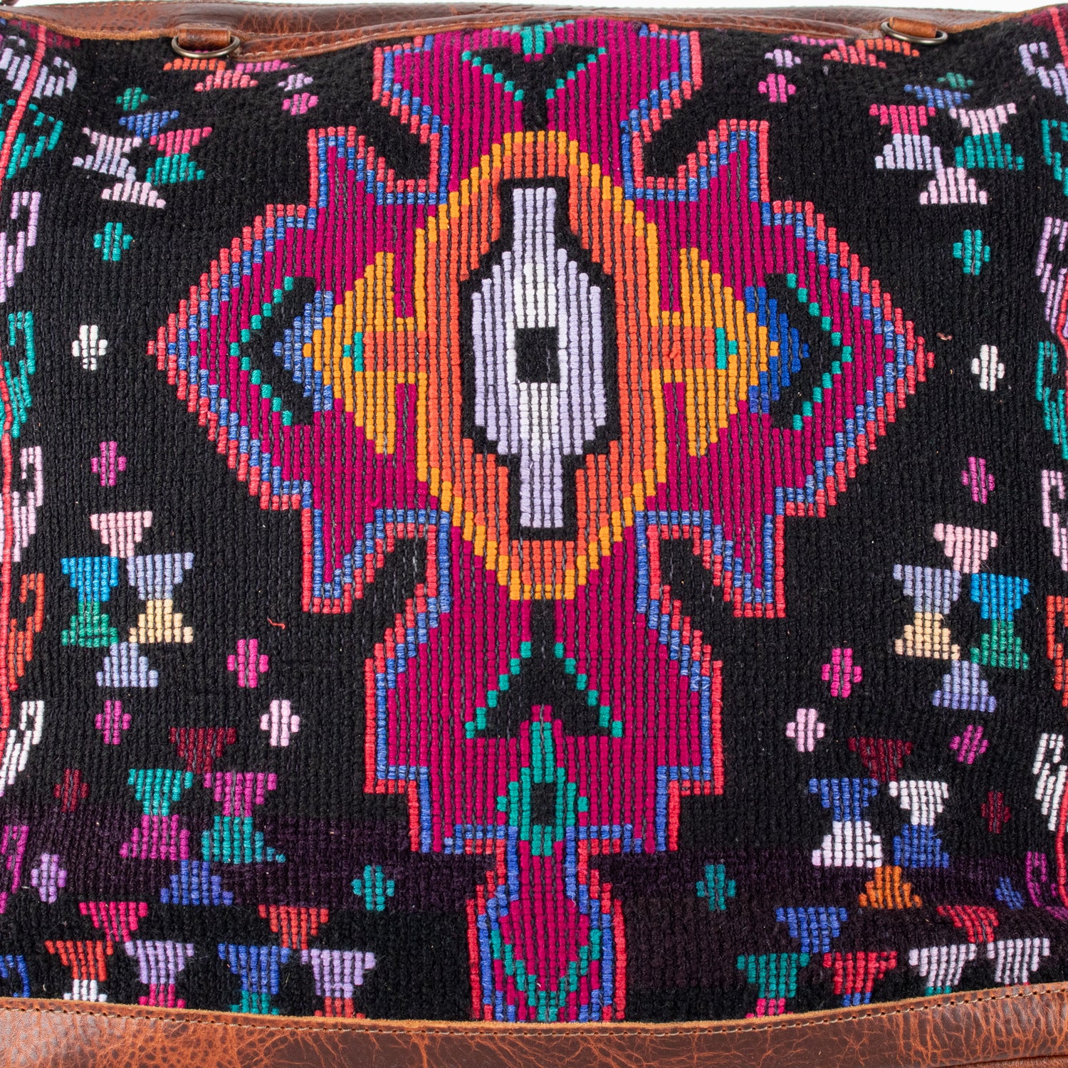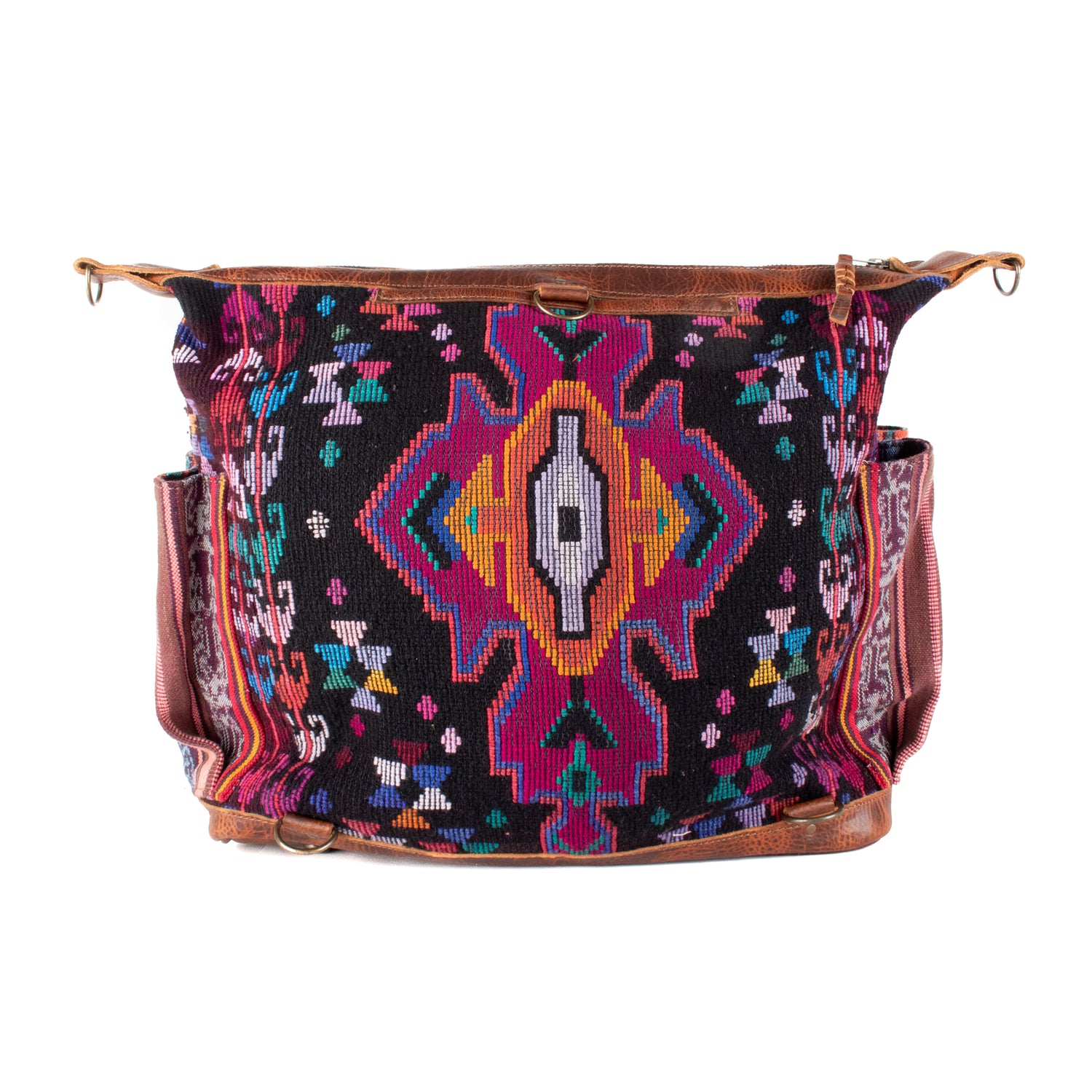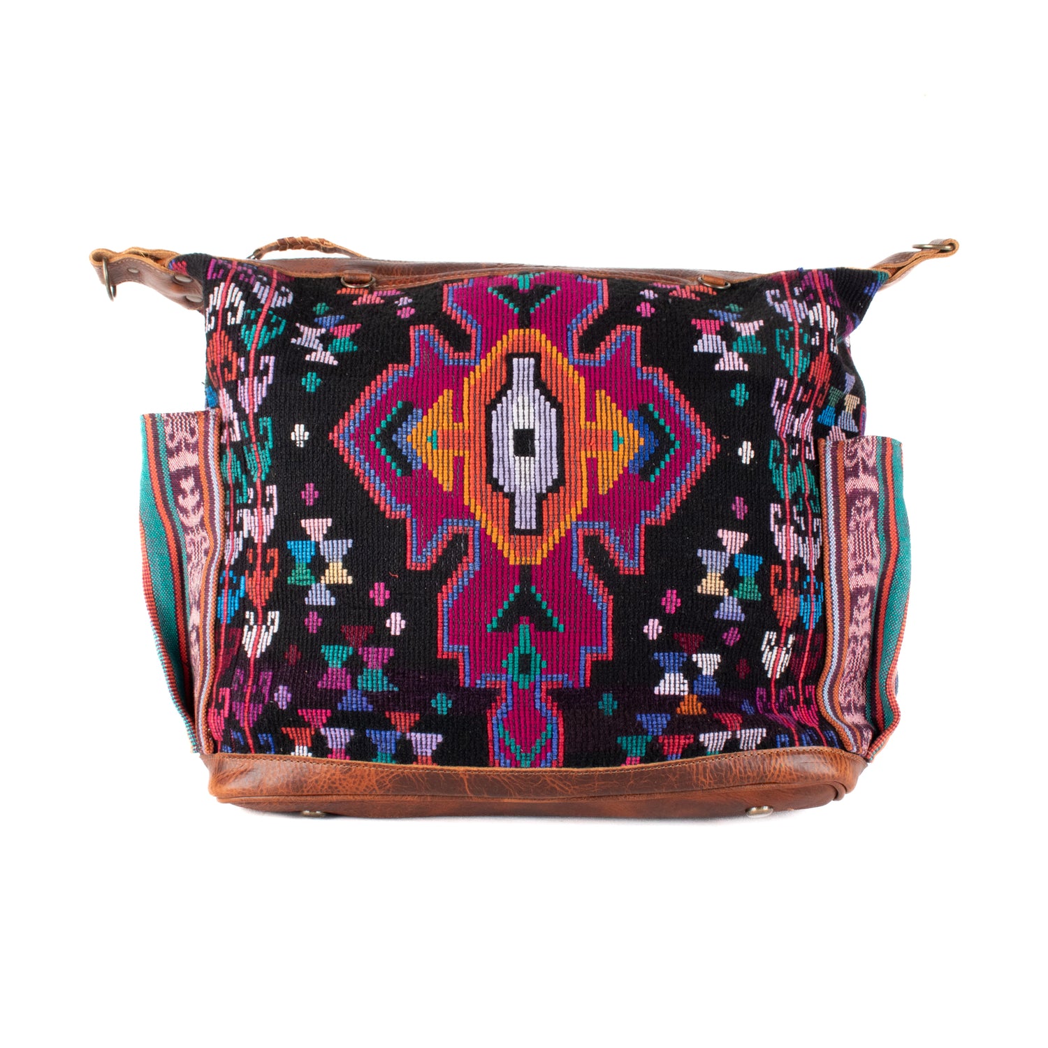 Many unique Maya symbols can be found in our One of a Kind Collection. The fabric we use for this collection is made from upcycled vintage huipiles (traditional attire worn by women in Guatemala) that were handwoven by Artisans up to 10 years ago, and they have lived a full life before being incorporated into your leather bag!