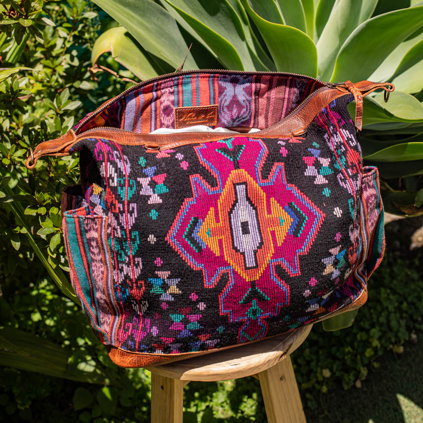 We make every effort to provide our customers with the best-handcrafted and high-quality bags. Please note that all our processes to make the bags are done by hand, from curing, cutting, and treating the leather to using up-cycled huipils. Our bags have natural characteristics and qualities that should not be considered as flaws or as damage because they do not interfere with the functionality of the bag. We up-cycle vintage Maya clothing to make beautiful one-of-a-kind products. Many times you will find snags in the pattern. This is normal. Should your patterned huipil snag you can snip the loose threads with scissors. Do not pull them.