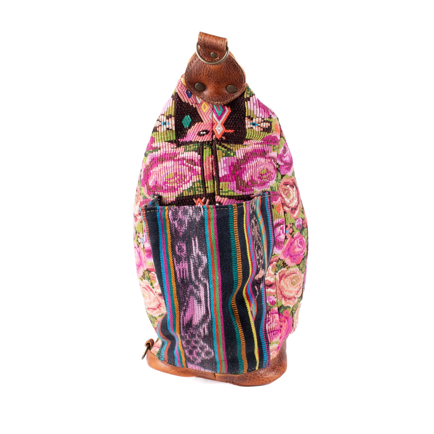 Many unique Maya symbols can be found in our One of a Kind Collection. The fabric we use for this collection is made from upcycled vintage huipiles (traditional attire worn by women in Guatemala) that were handwoven by Artisans up to 10 years ago, and they have lived a full life before being incorporated into your leather bag!