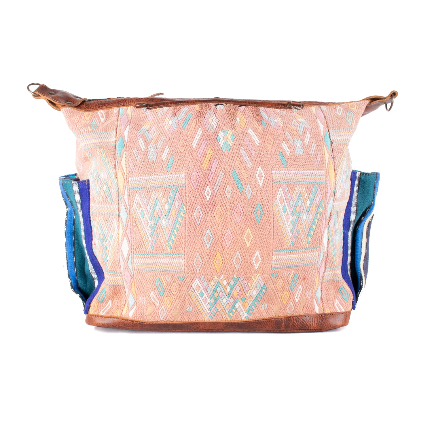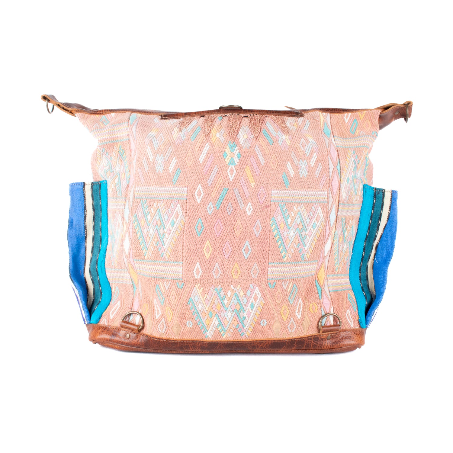 Many unique Maya symbols can be found in our One of a Kind Collection. The fabric we use for this collection is made from upcycled vintage huipiles (traditional attire worn by women in Guatemala) that were handwoven by Artisans up to 10 years ago, and they have lived a full life before being incorporated into your leather bag!