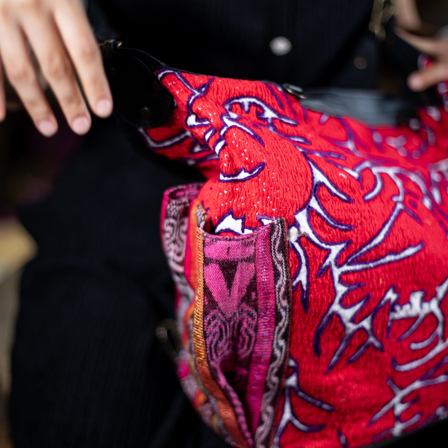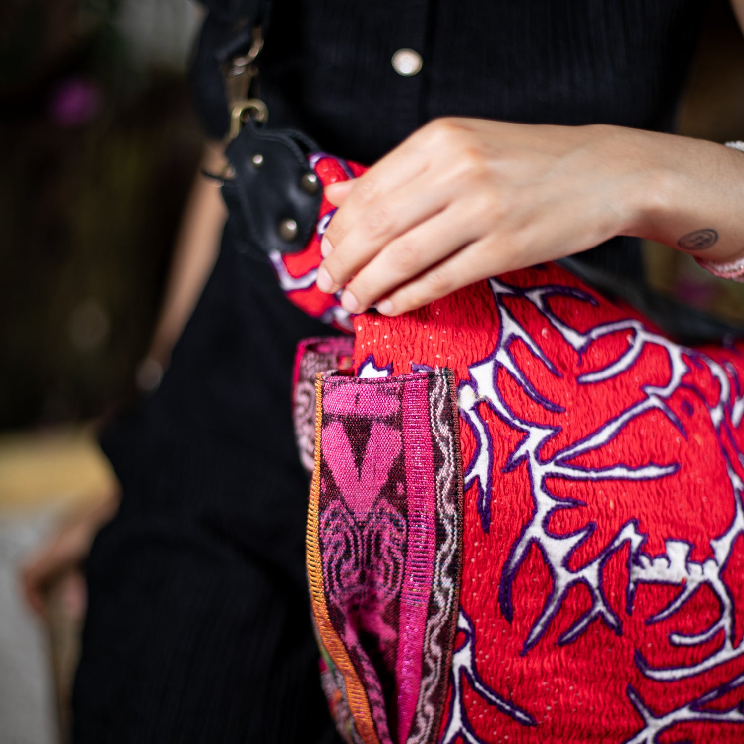 We make every effort to provide our customers with the best-handcrafted and high-quality bags. Please note that all our processes to make the bags are done by hand, from curing, cutting, and treating the leather to using up-cycled huipils. Our bags have natural characteristics and qualities that should not be considered as flaws or as damage because they do not interfere with the functionality of the bag. We up-cycle vintage Maya clothing to make beautiful one-of-a-kind products. Many times you will find snags in the pattern. This is normal. Should your patterned huipil snag you can snip the loose threads with scissors. Do not pull them.