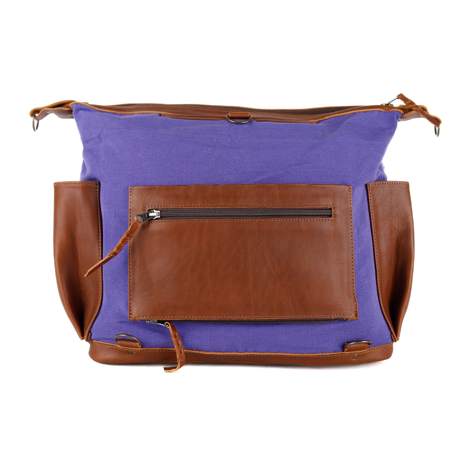 - Artisan woven fabric back with leather trolley sleeve