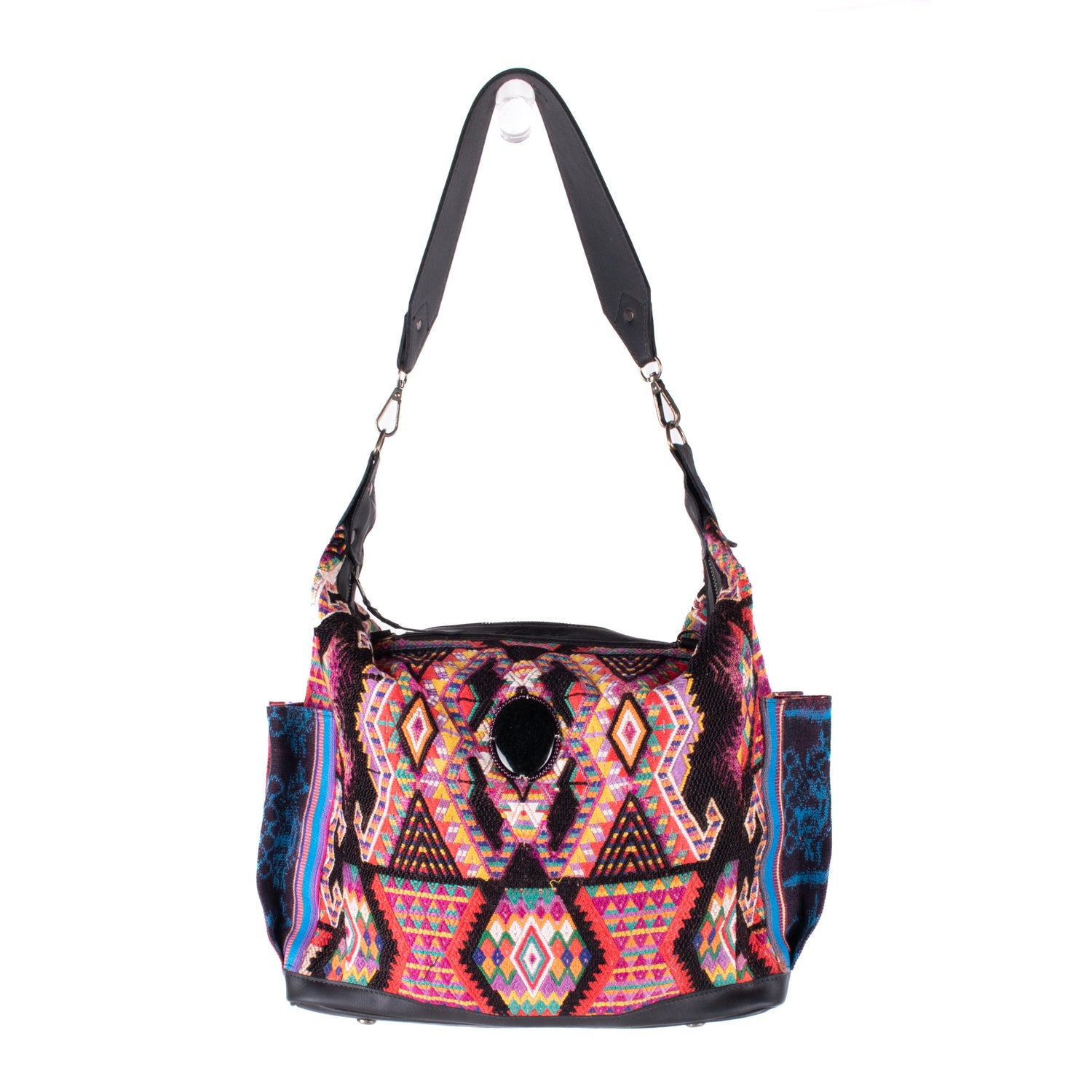 In Maya tradition, the Moon goddess Ixchel is the goddess of Womanhood. The Moon represents many aspects of womanhood, including the cycles of life, fertility, healing, and the textile arts. Appearing on a bag, the Moon means something different to every wearer, because no two women experience Womanhood the same way.