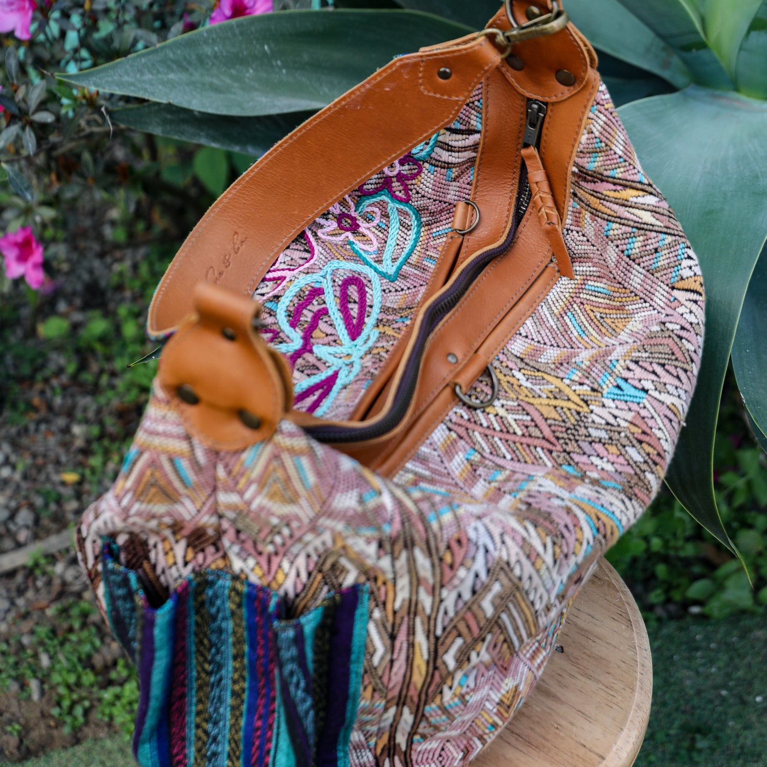 We make every effort to provide our customers with the best-handcrafted and high-quality bags. Please note that all our processes to make the bags are done by hand, from curing, cutting, and treating the leather to using up-cycled huipils. Our bags have natural characteristics and qualities that should not be considered as flaws or as damage because they do not interfere with the functionality of the bag. We up-cycle vintage Maya clothing to make beautiful one-of-a-kind products. Many times you will find snags in the pattern. This is normal. Should your patterned huipil snag you can snip the loose threads with scissors. Do not pull them.