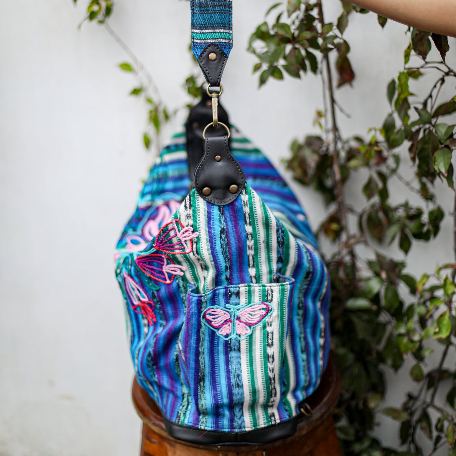 We make every effort to provide our customers with the best-handcrafted and high-quality bags. Please note that all our processes to make the bags are done by hand, from curing, cutting, and treating the leather to using up-cycled huipils. Our bags have natural characteristics and qualities that should not be considered as flaws or as damage because they do not interfere with the functionality of the bag. We up-cycle vintage Maya clothing to make beautiful one-of-a-kind products. Many times you will find snags in the pattern. This is normal. Should your patterned huipil snag you can snip the loose threads with scissors. Do not pull them.